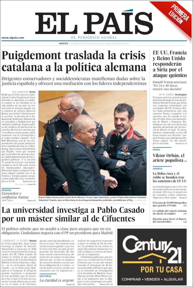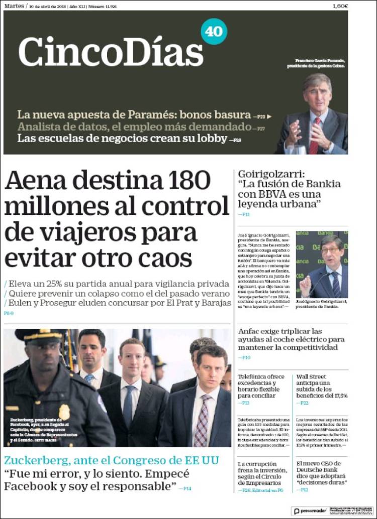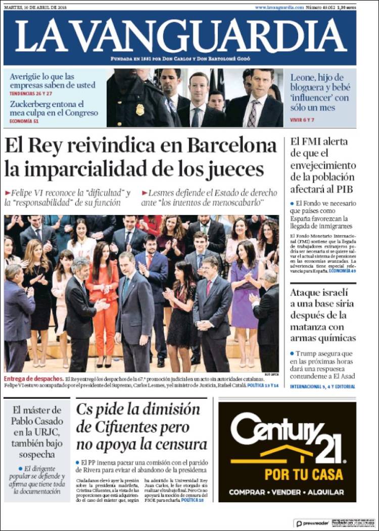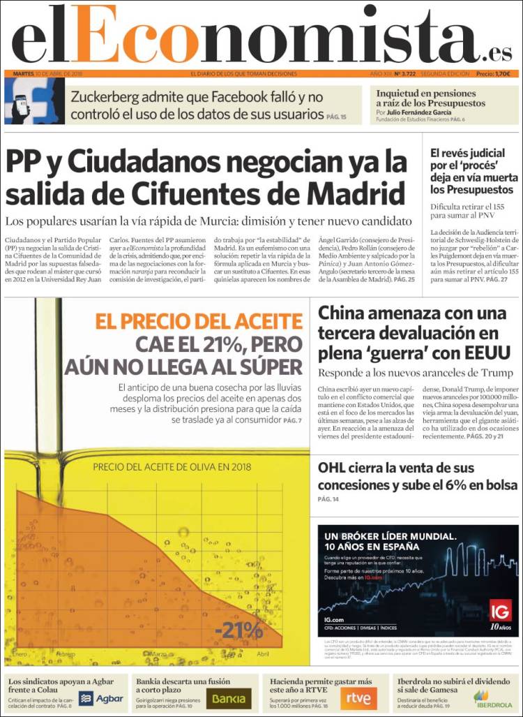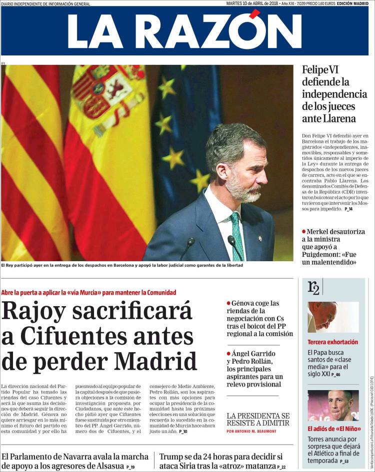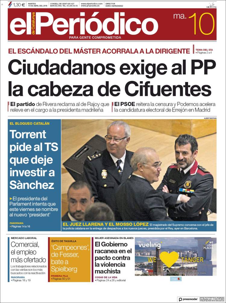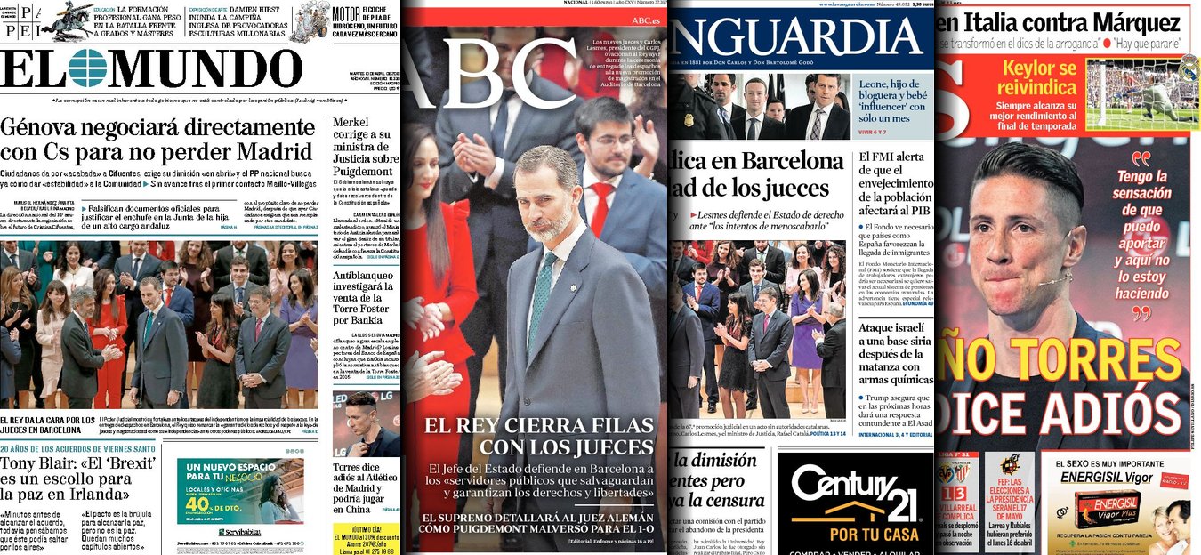 Portadas de los diarios El Mundo, El País, ABC, La Razón, La Vanguardia, El Periódico, Cinco Días, El Economista, Marca, As, Mundo Deportivo y Sport.