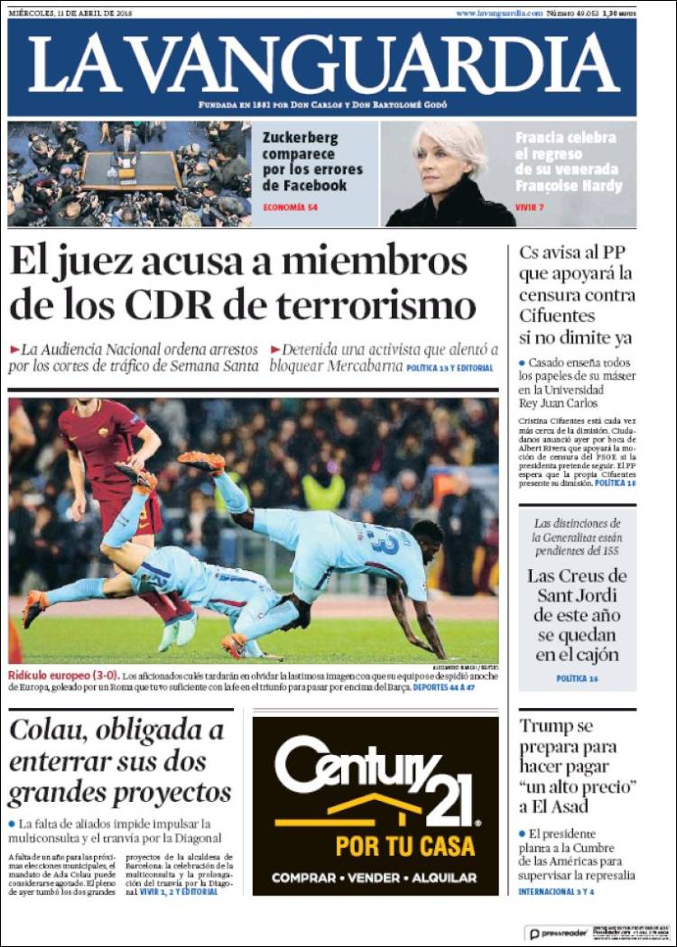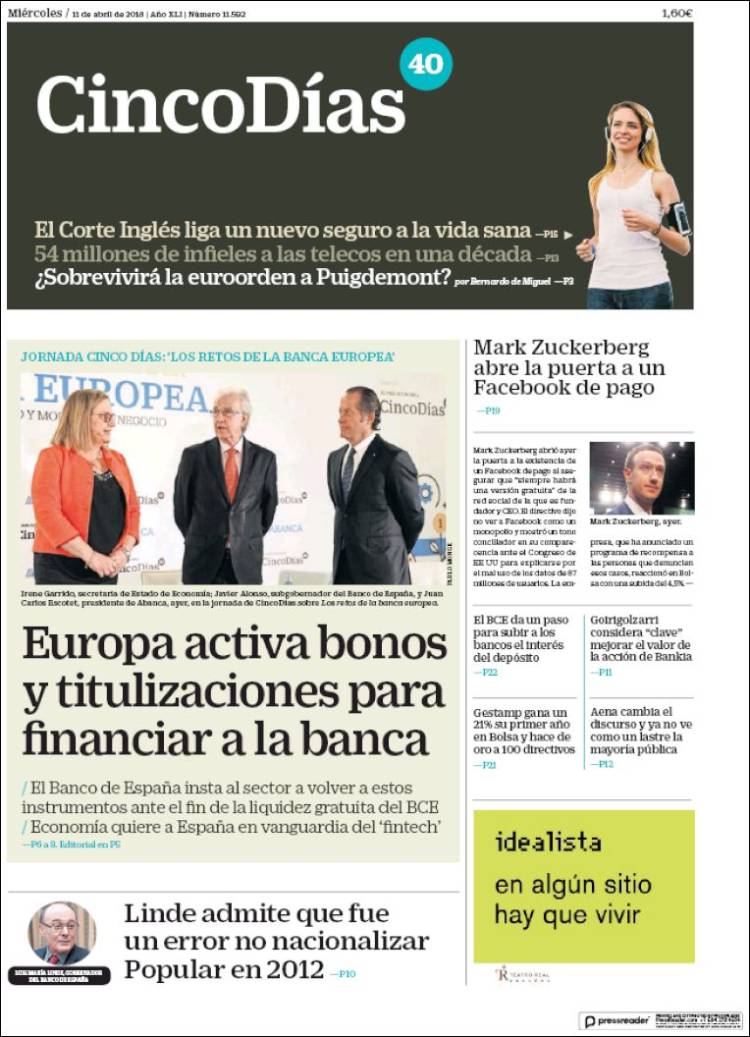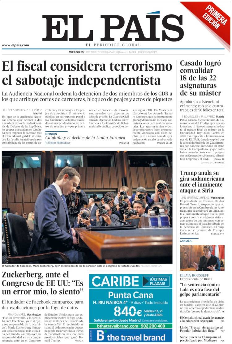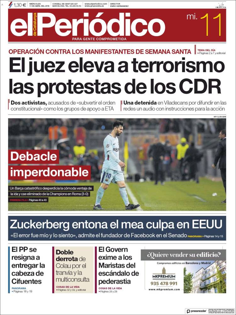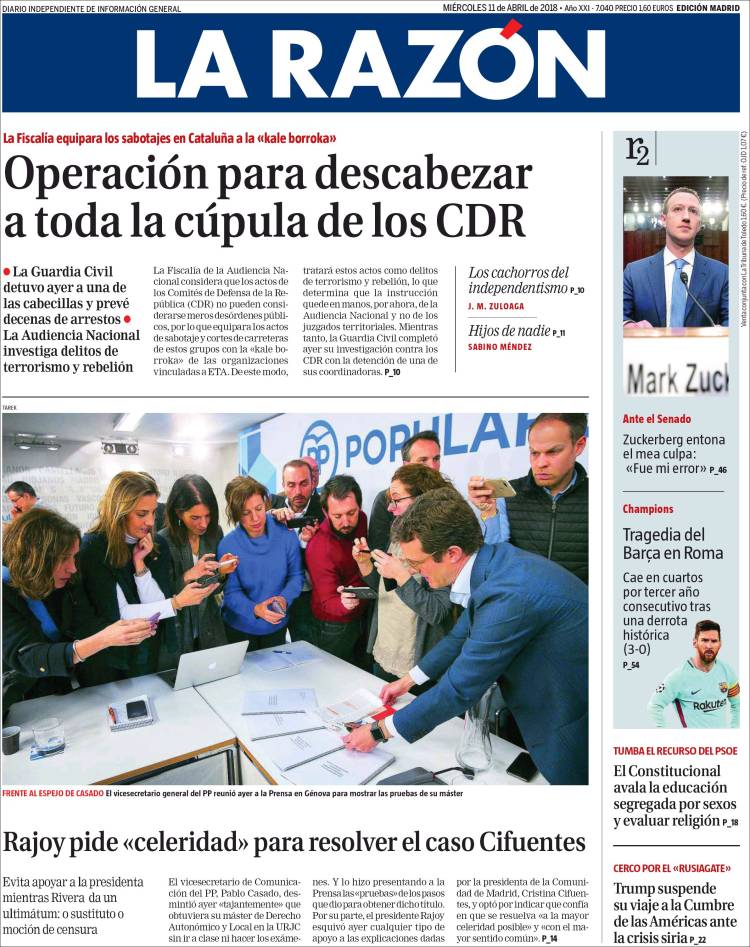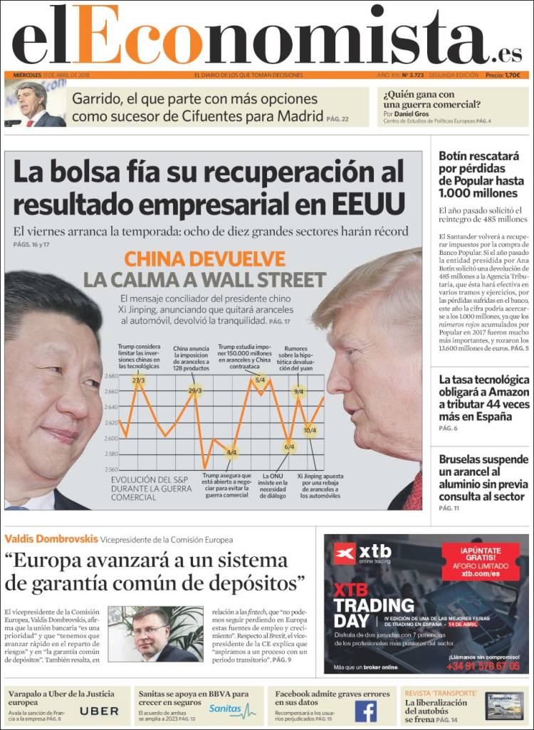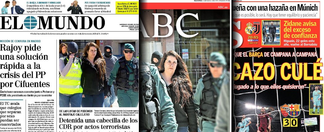 Portadas de los diarios El Mundo, El País, ABC, La Razón, La Vanguardia, El Periódico, Cinco Días, El Economista, Marca, As, Mundo Deportivo y Sport.
