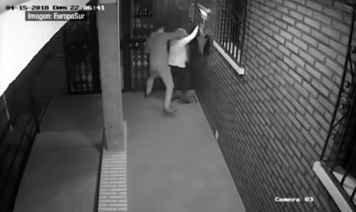 En la grabación se ve como la señora llega tranquila al portal y llama al telefonillo. Un joven se acerca por detrás. Cuando llega a su altura comienza la paliza: dos puñetazos en la cabeza, la tira al suelo, entonces comienza con las patadas en la cara. Golpes fortísimos a una mujer mayor e indefensa.