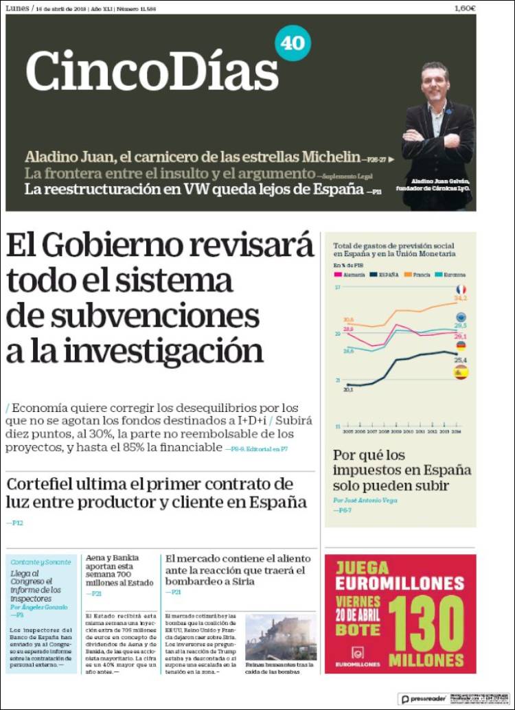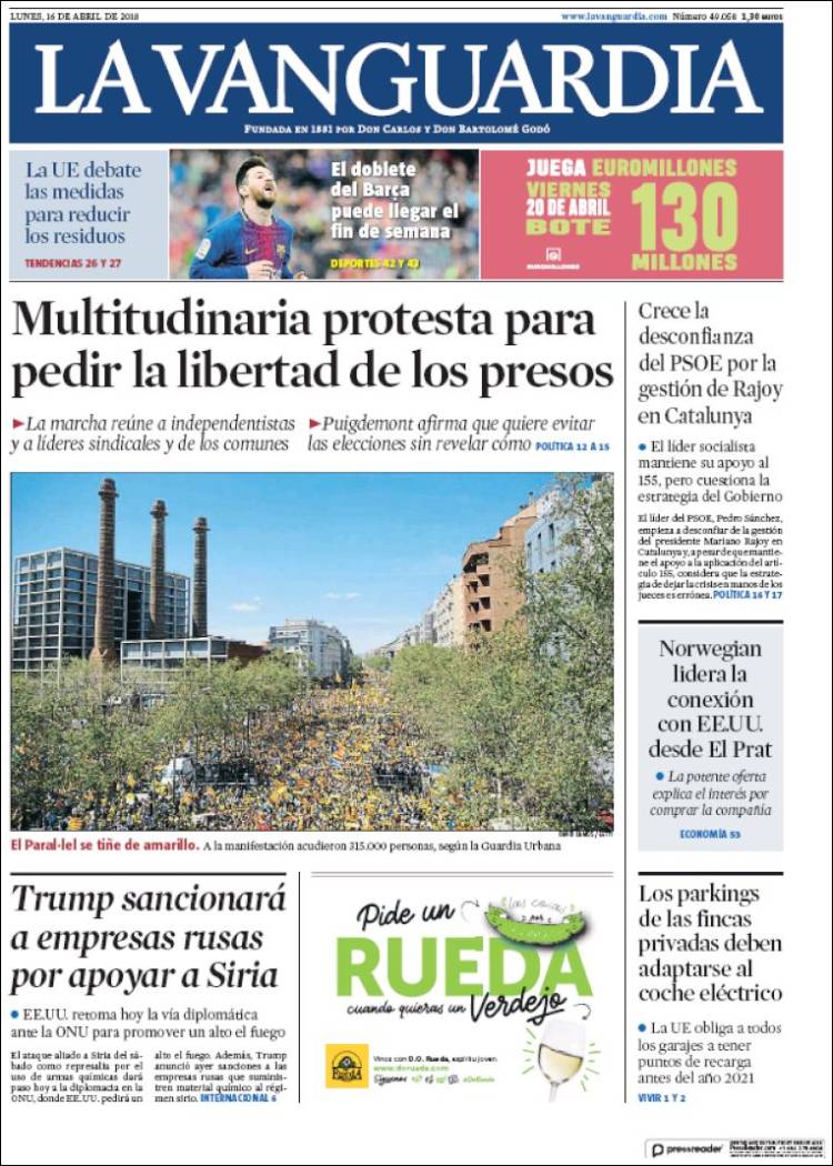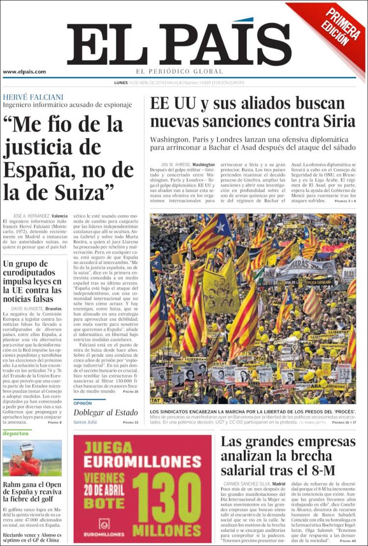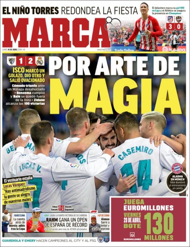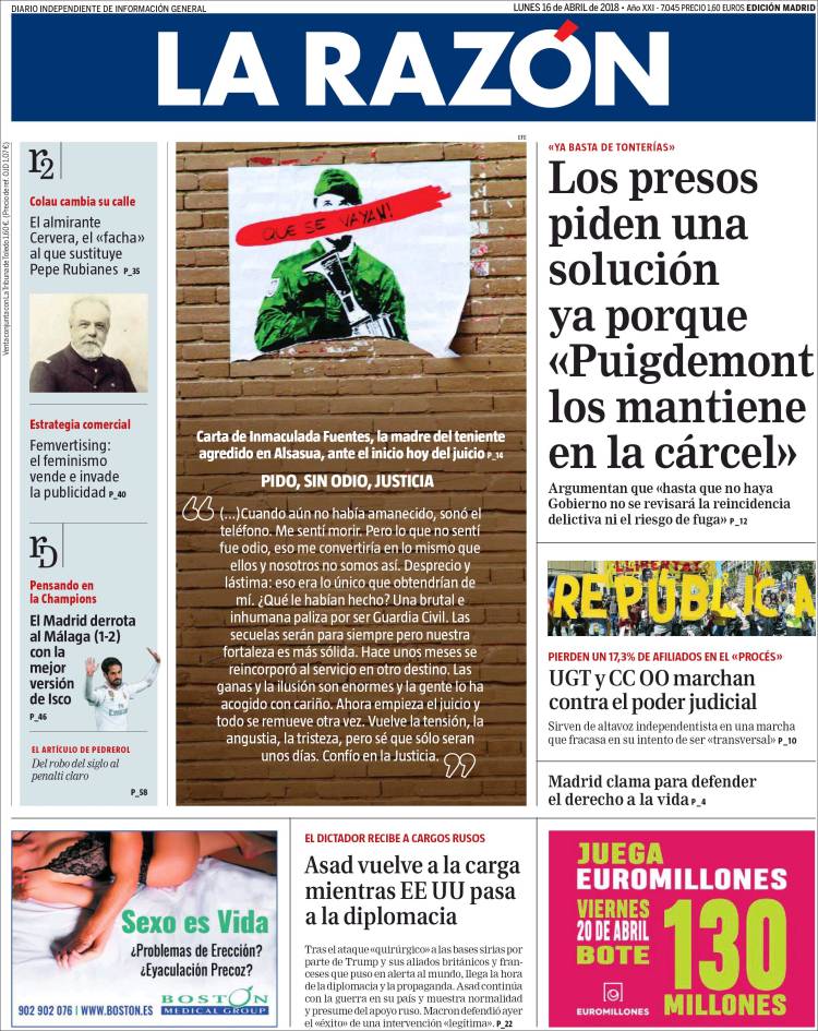 Portadas de los diarios El Mundo, El País, ABC, La Razón, La Vanguardia, El Periódico, Cinco Días, El Economista, Marca, As, Mundo Deportivo y Sport.