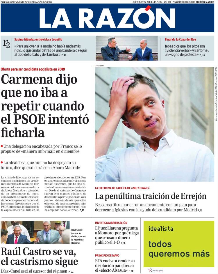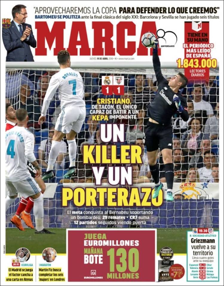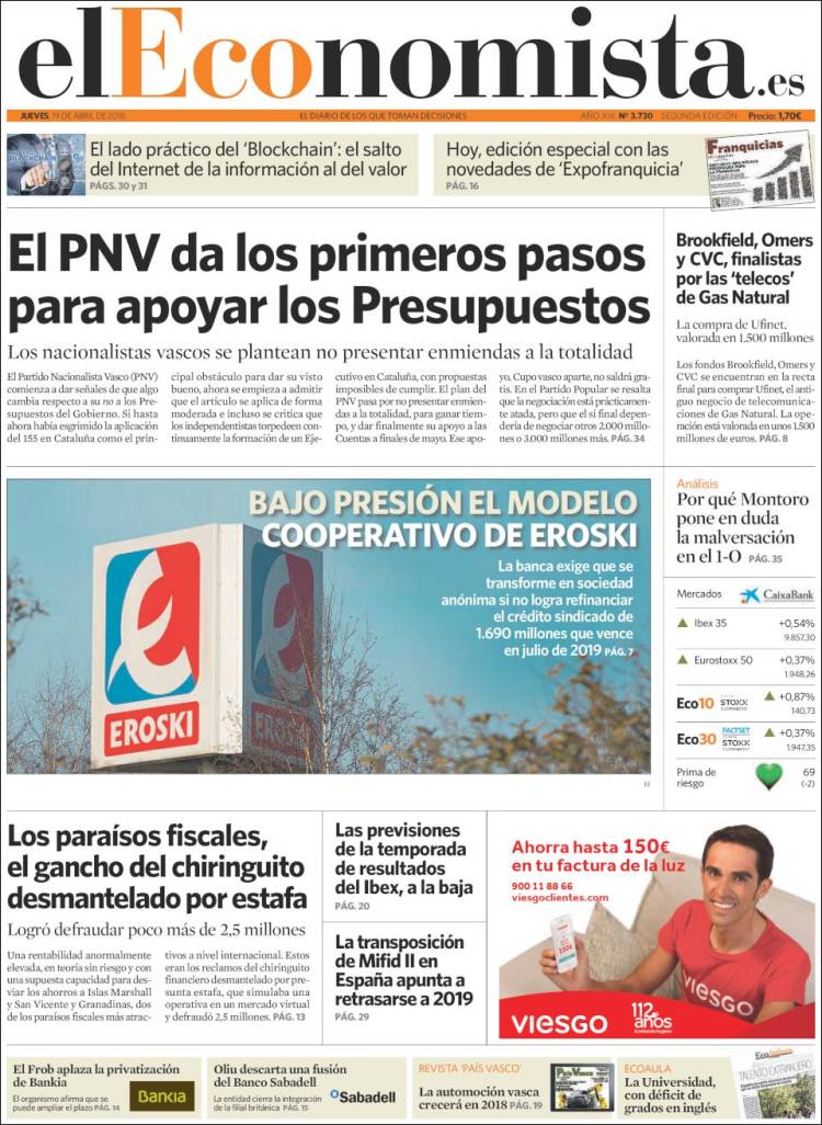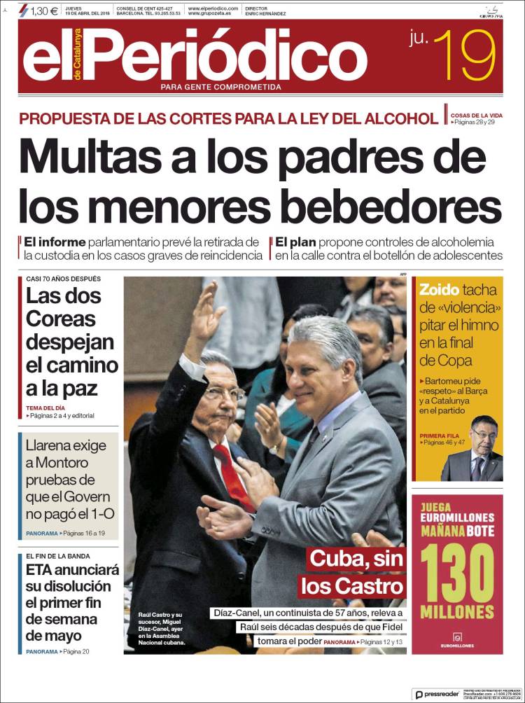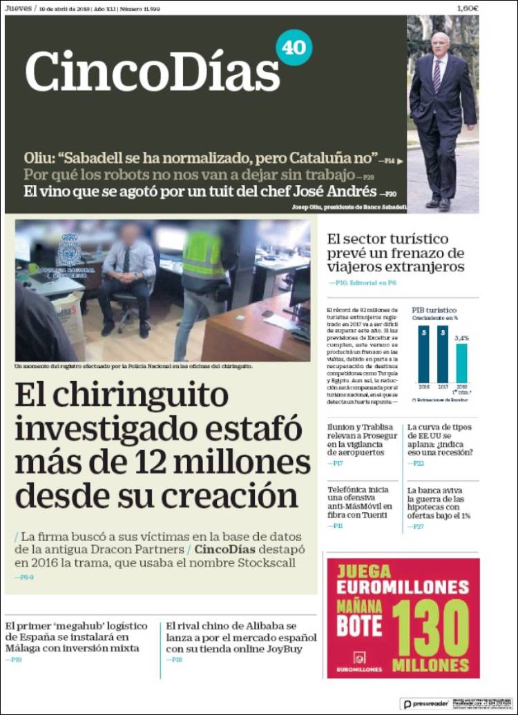 Portadas de los diarios El Mundo, El País, ABC, La Razón, La Vanguardia, El Periódico, Cinco Días, El Economista, Marca, As, Mundo Deportivo y Sport.