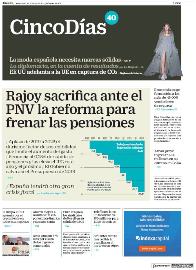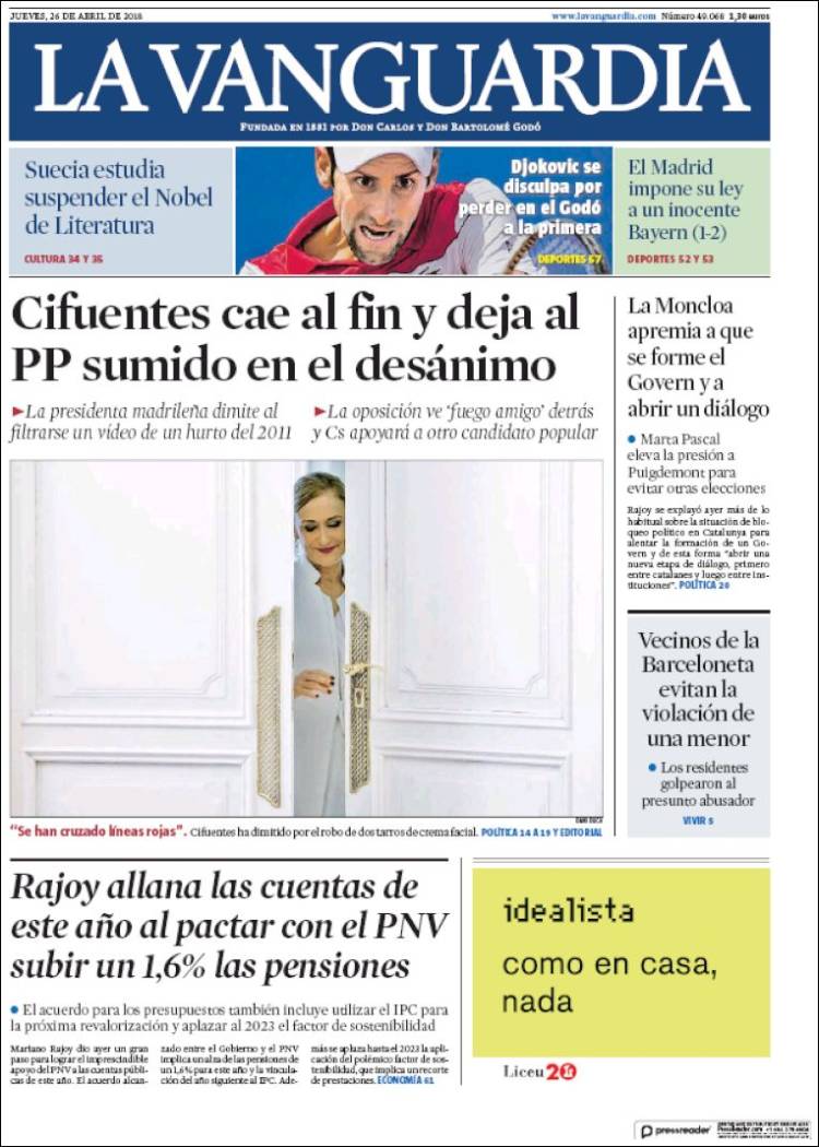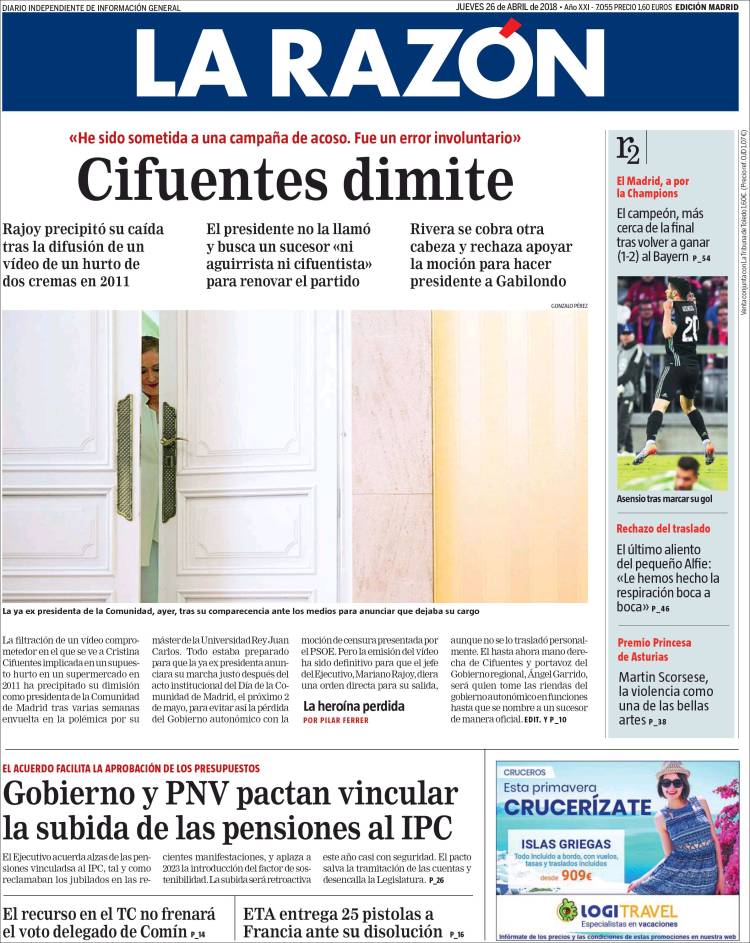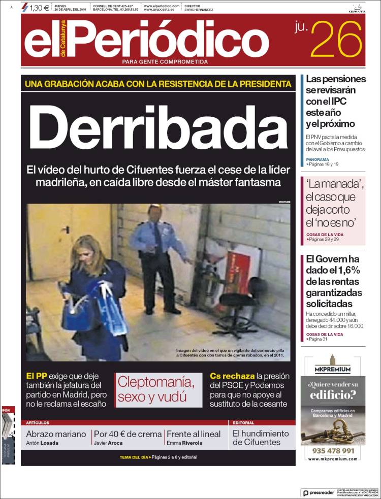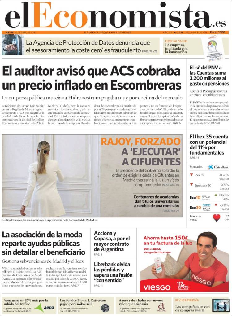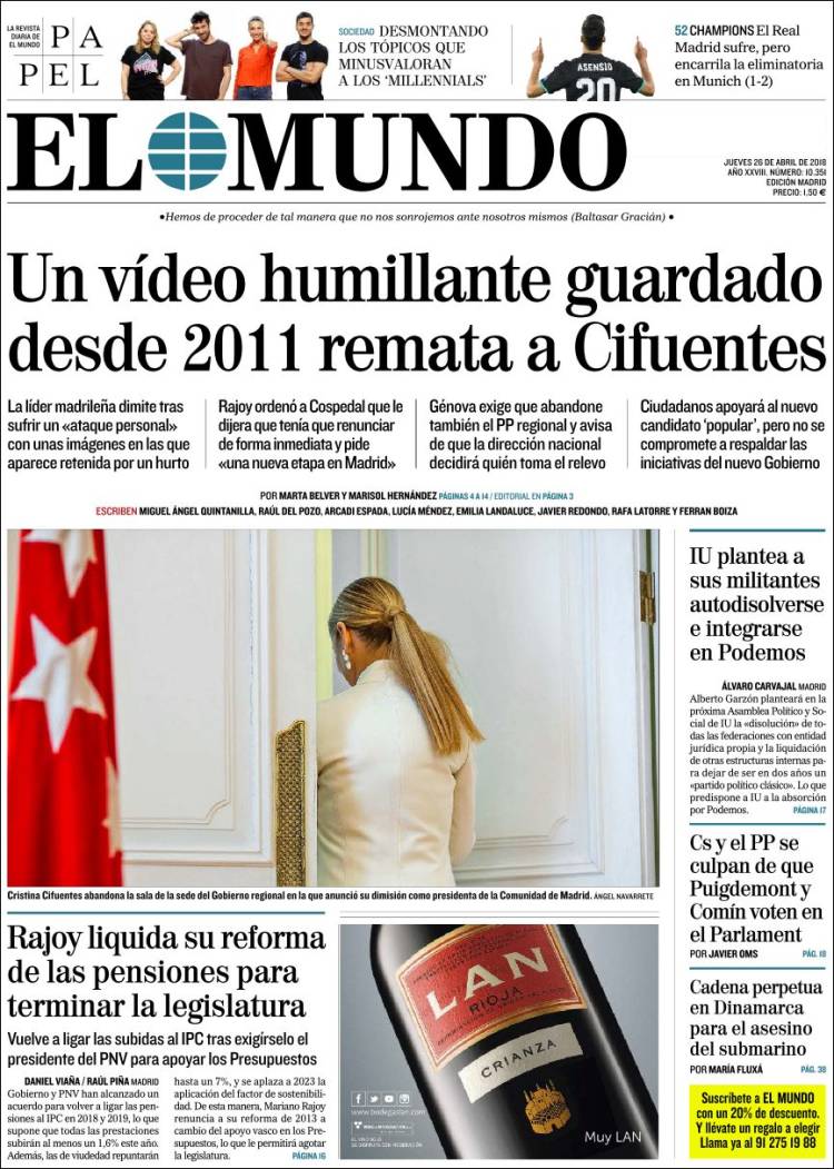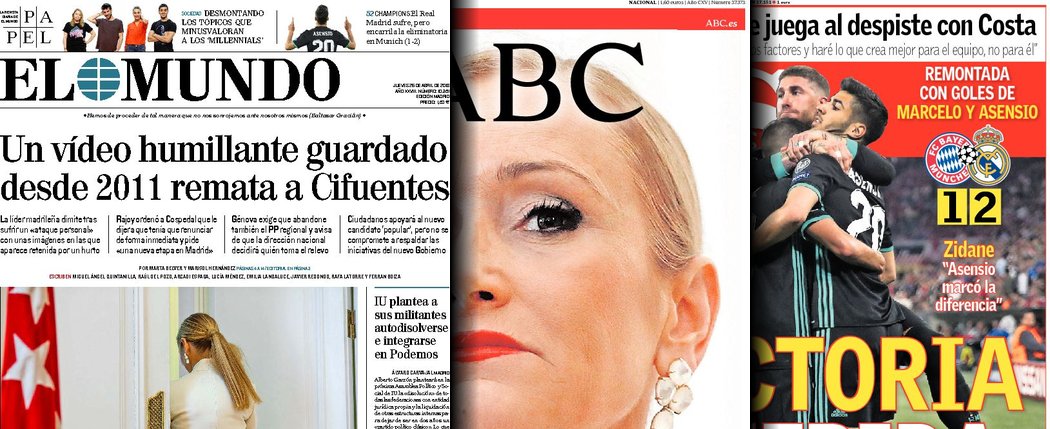 Portadas de los diarios El Mundo, El País, ABC, La Razón, La Vanguardia, El Periódico, Cinco Días, El Economista, Marca, As, Mundo Deportivo y Sport.