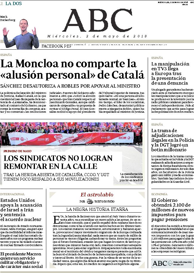 Portadas de los diarios ABC y La Vanguardia.