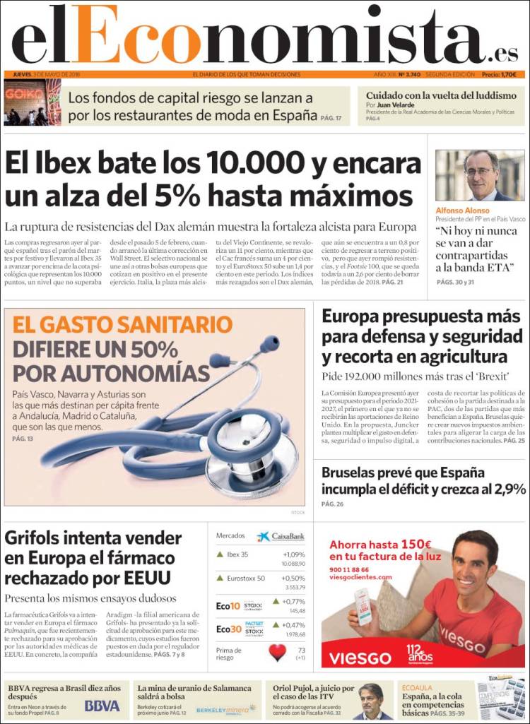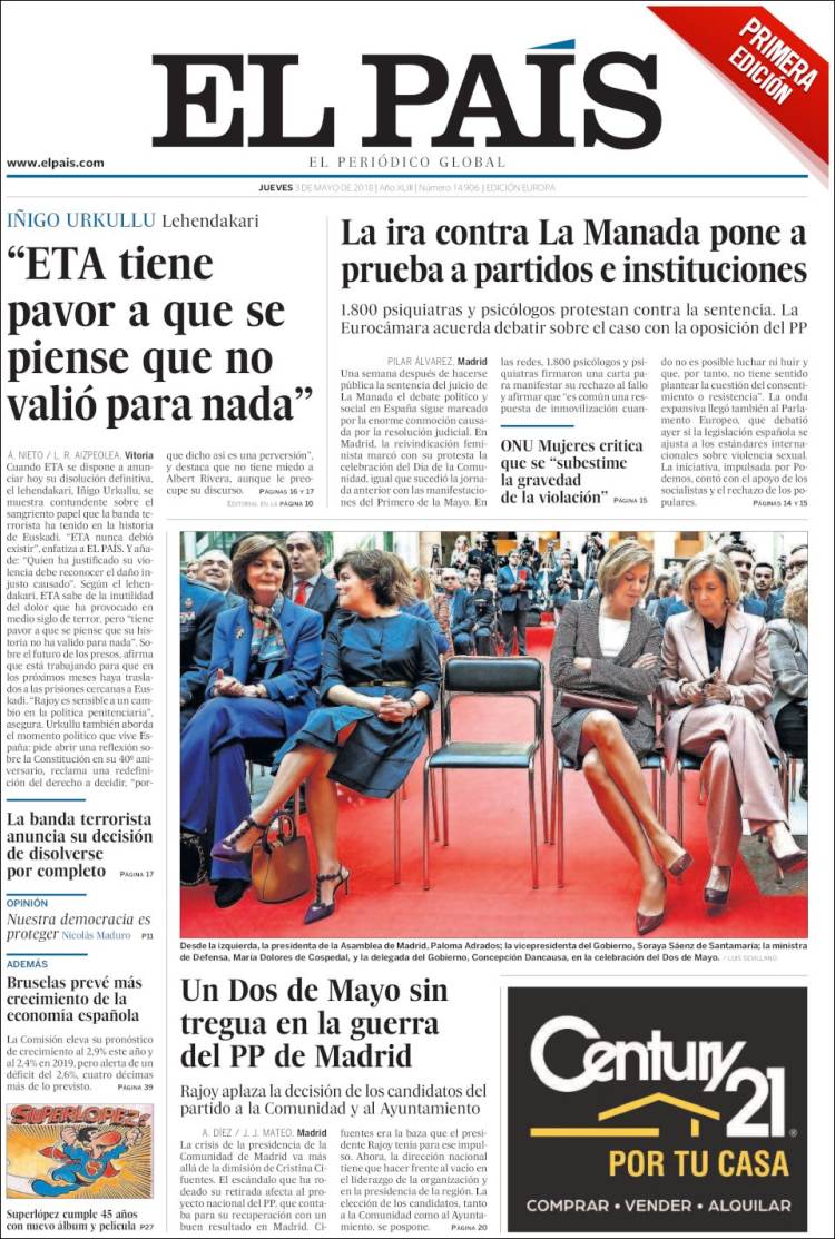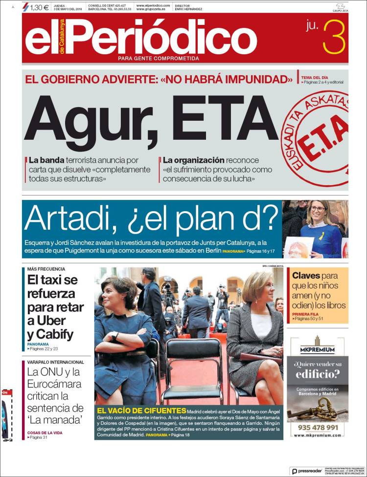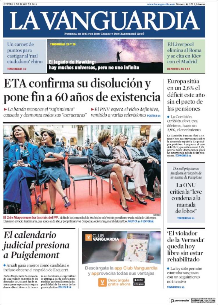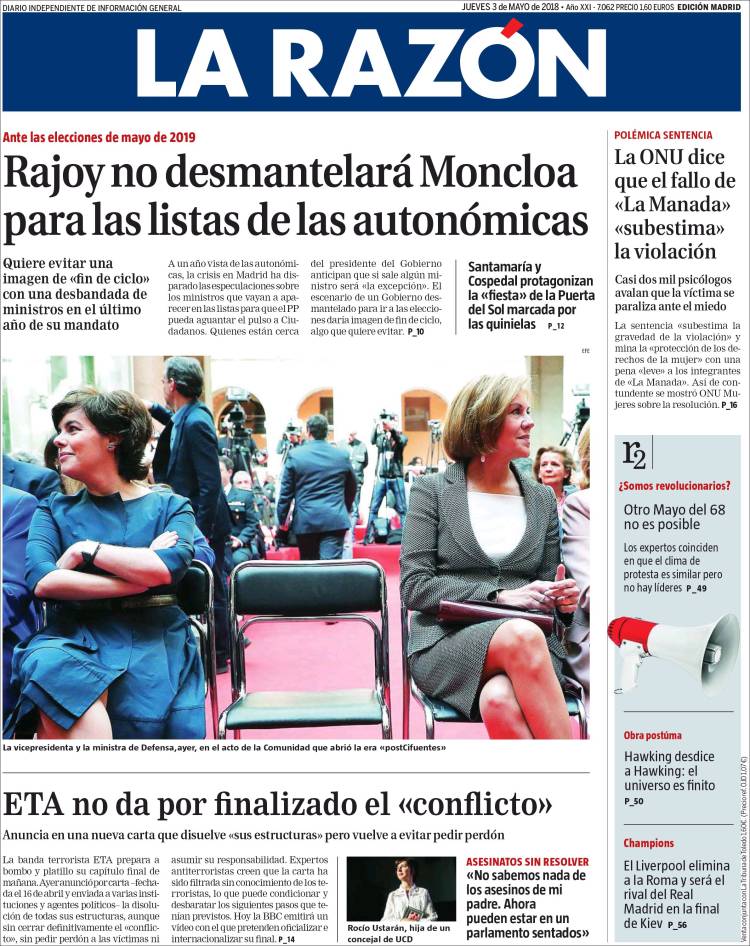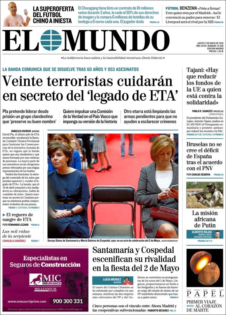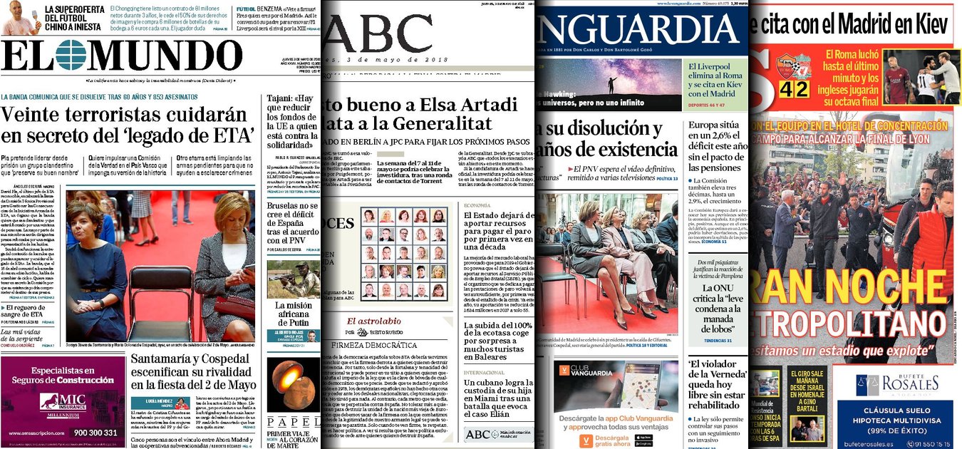 Portadas de los diarios El Mundo, El País, ABC, La Razón, La Vanguardia, El Periódico, Cinco Días, El Economista, Marca, As, Mundo Deportivo y Sport.