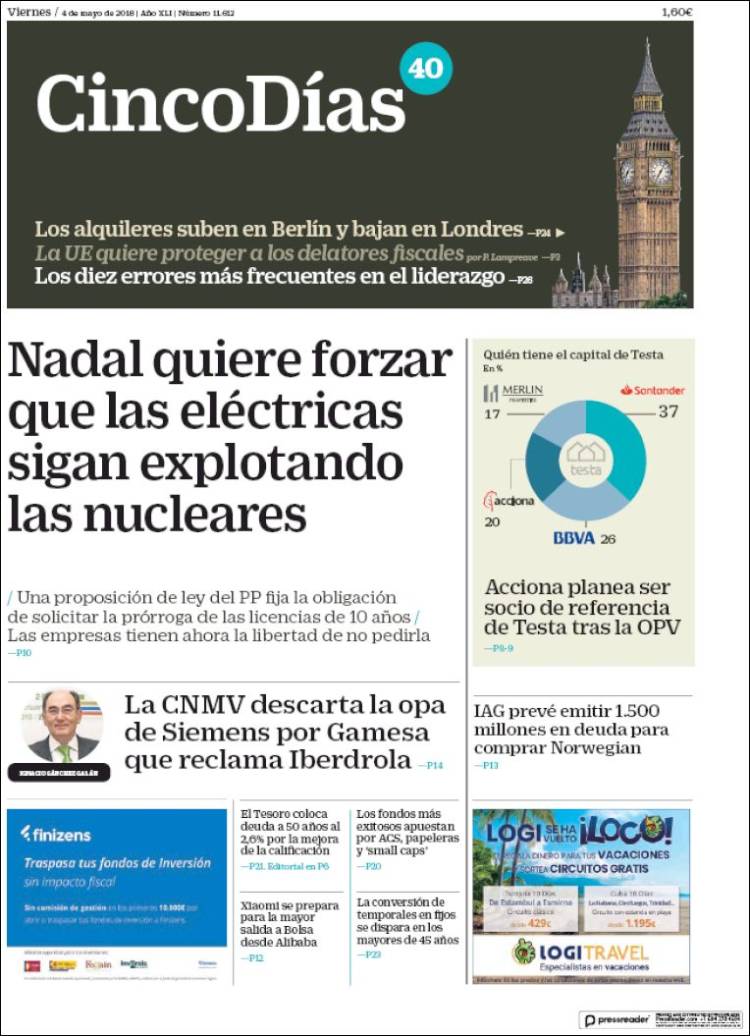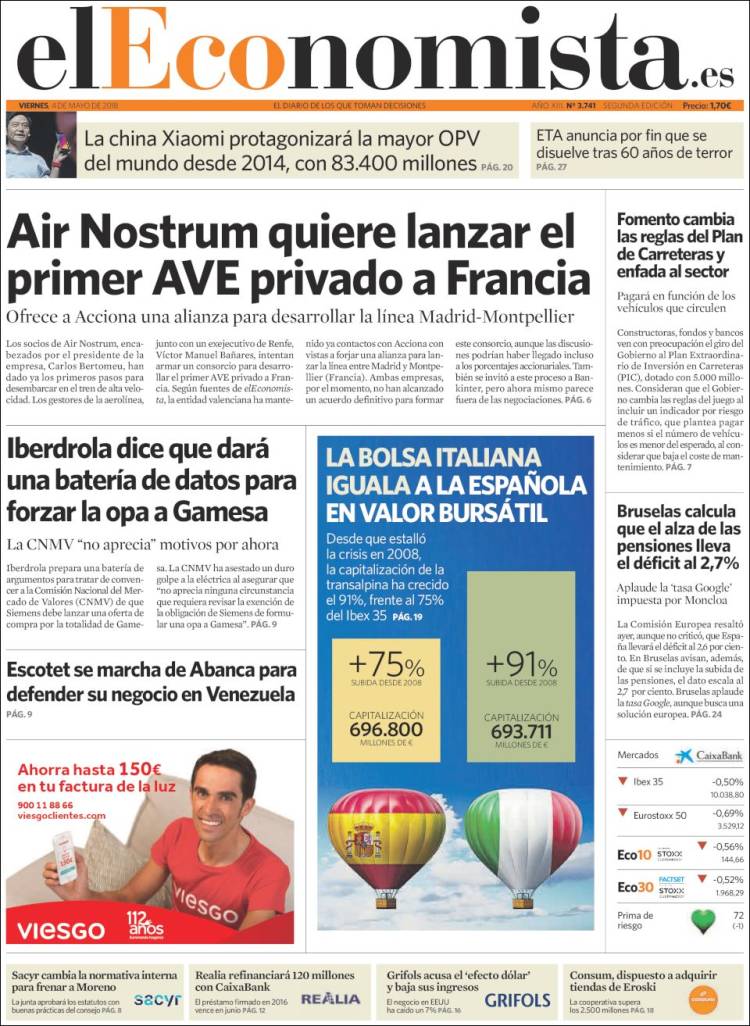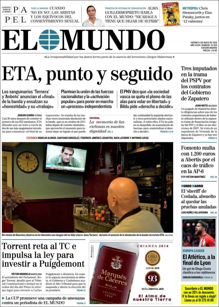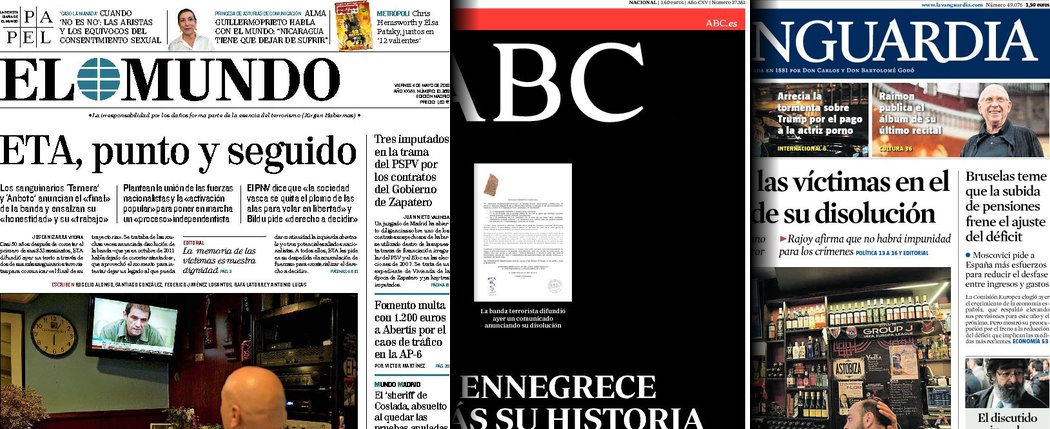 Portadas de los diarios El Mundo, El País, ABC, La Razón, La Vanguardia, El Periódico, Cinco Días, El Economista, Marca, As y Mundo Deportivo.