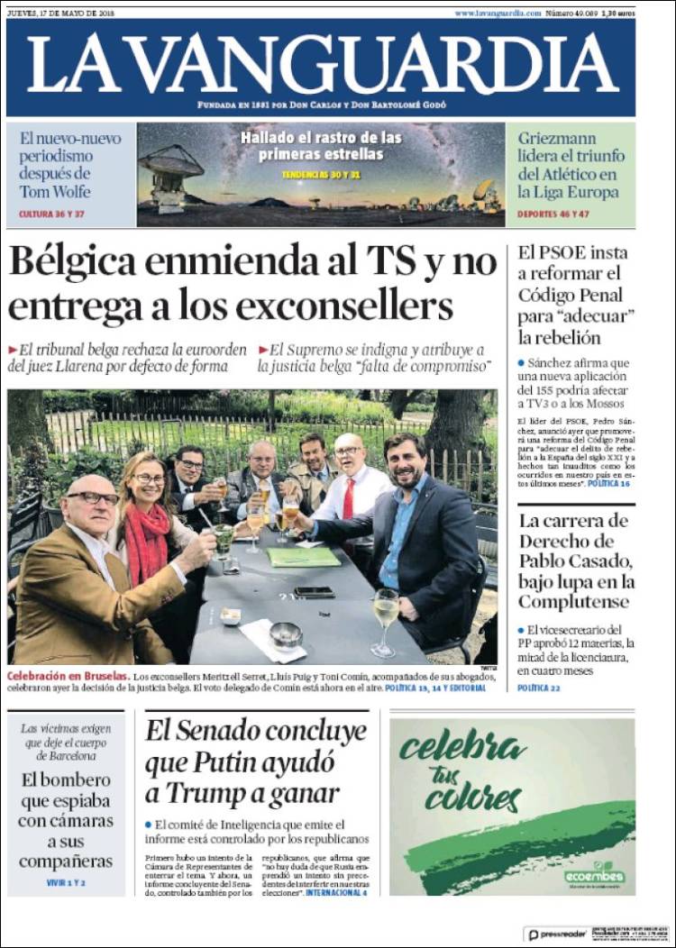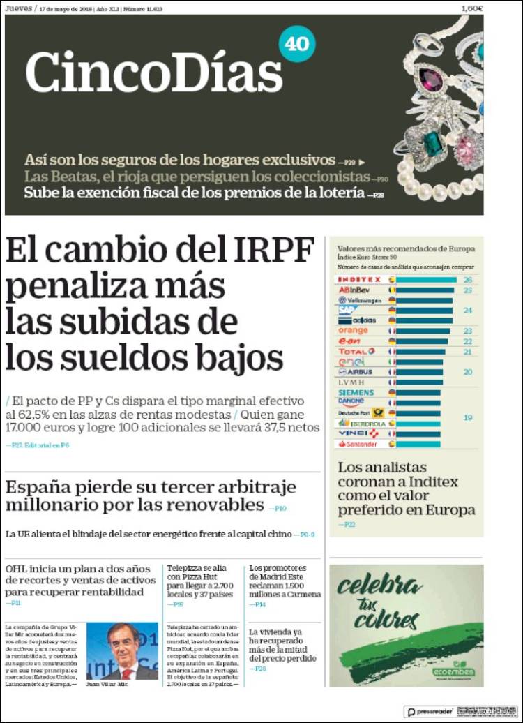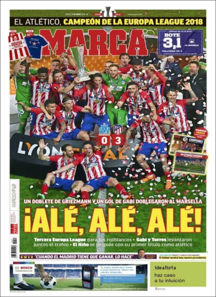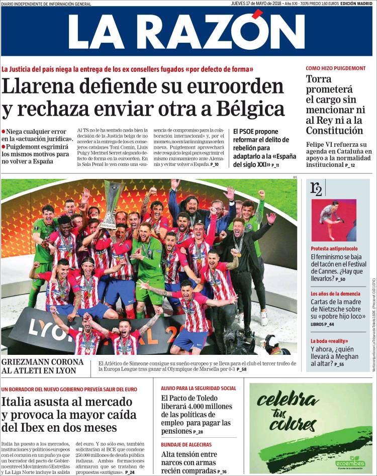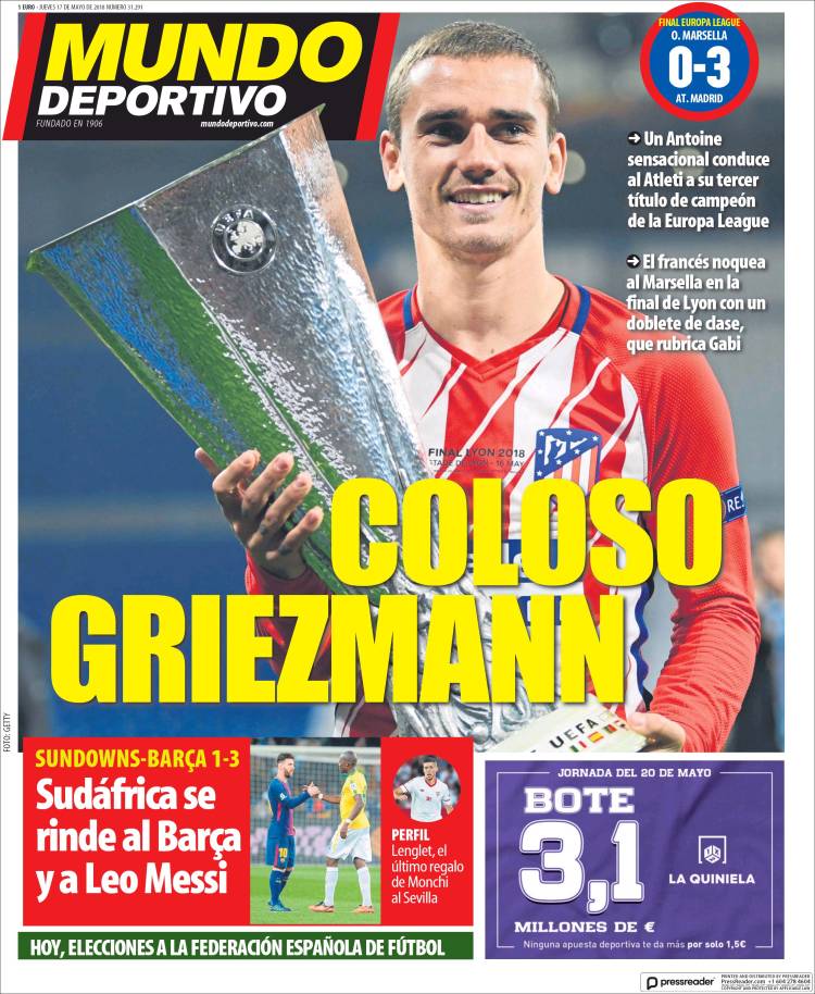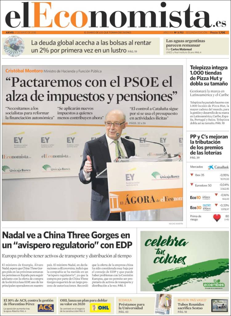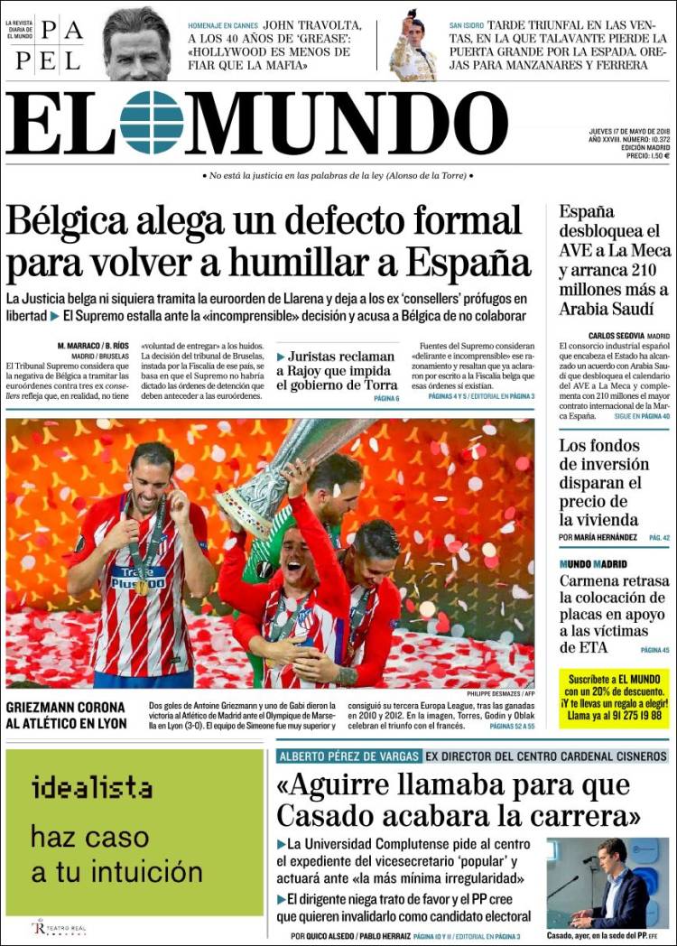 Portadas de los diarios El Mundo, El País, ABC, La Razón, La Vanguardia, El Periódico, Cinco Días, El Economista, Marca, As, Mundo Deportivo y Sport.