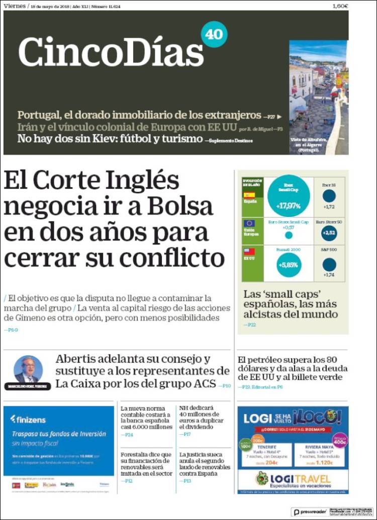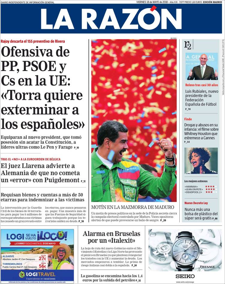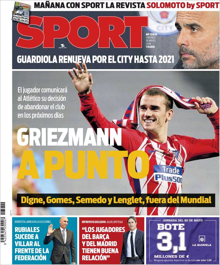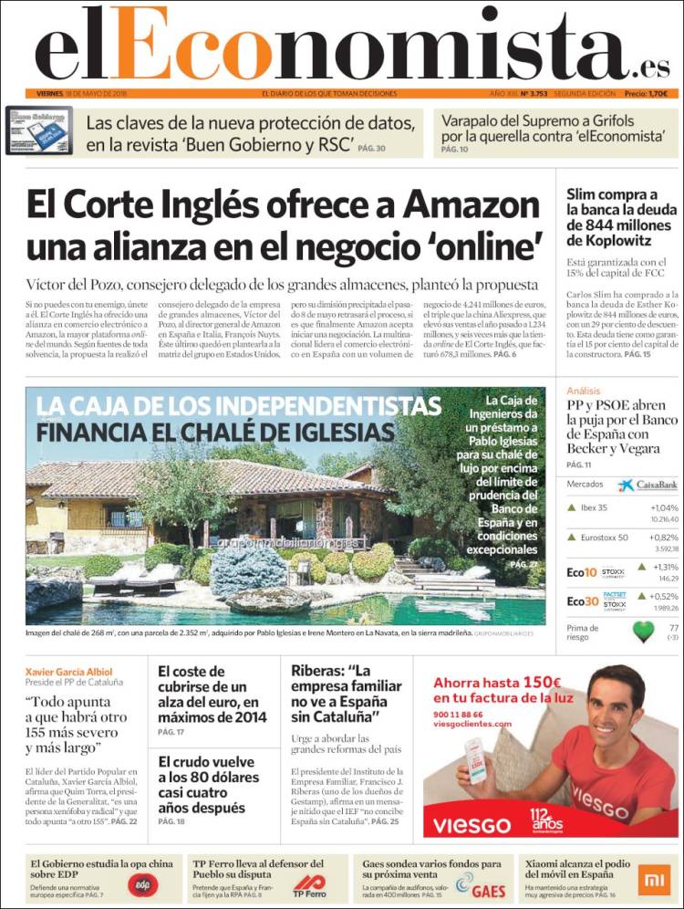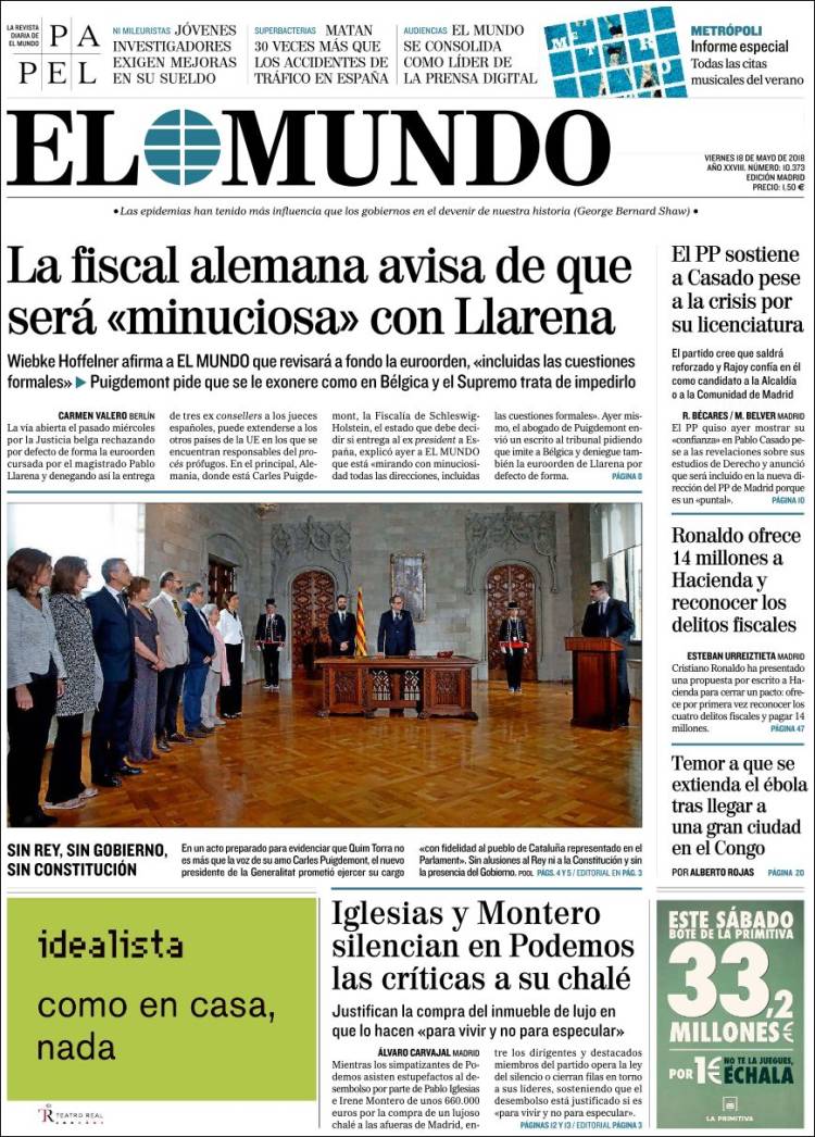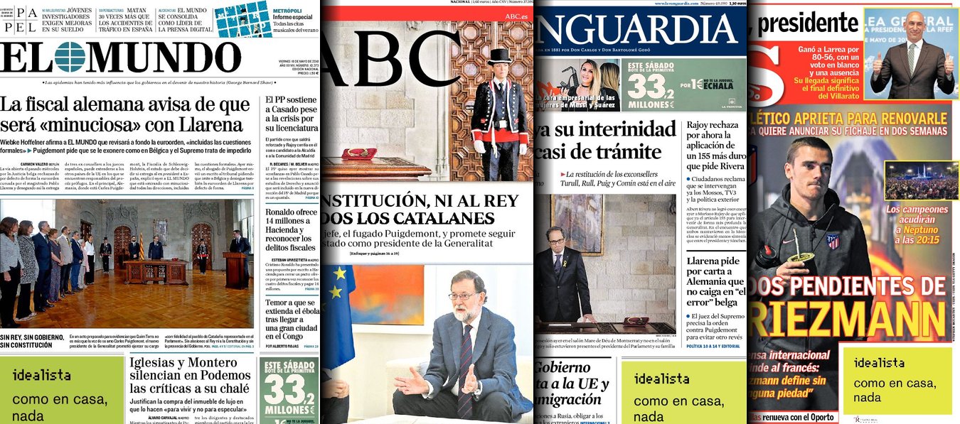Portadas de los diarios El Mundo, El País, ABC, La Razón, La Vanguardia, El Periódico, Cinco Días, El Economista, Marca, As, Mundo Deportivo y Sport.