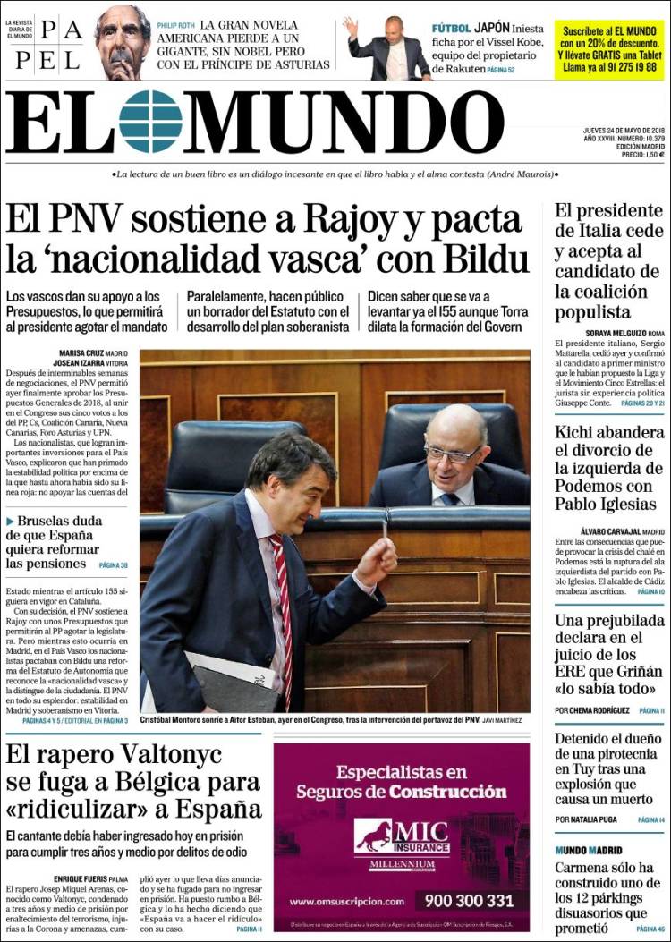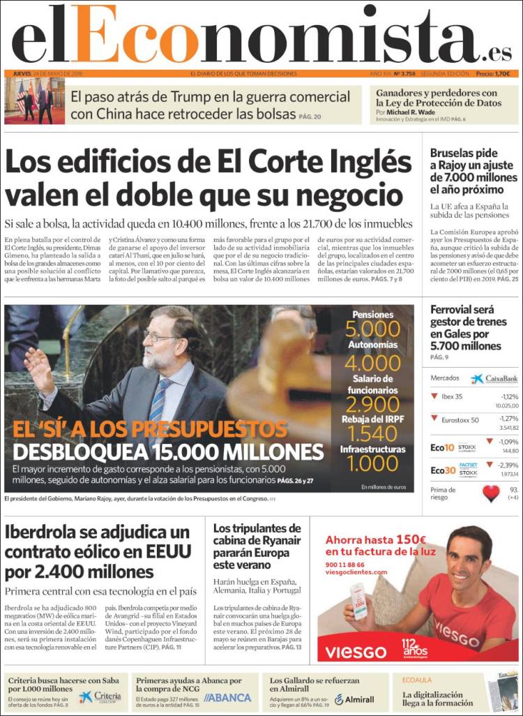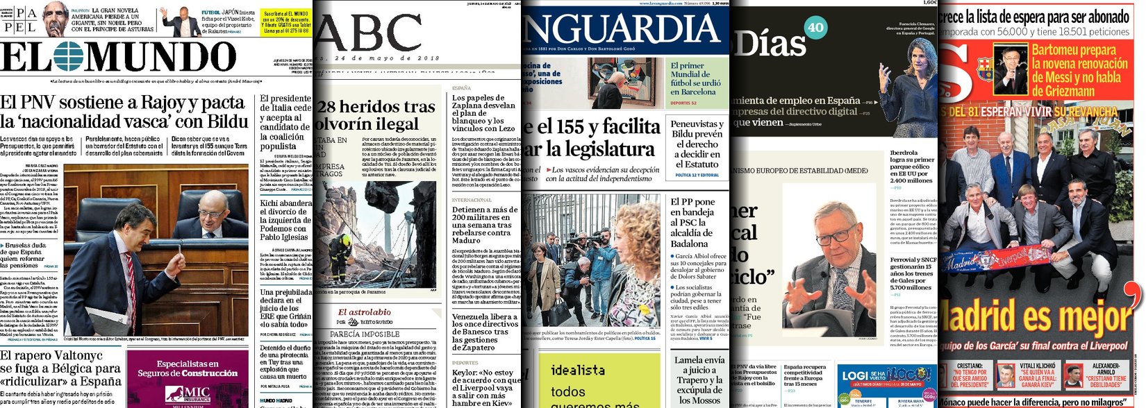 Portadas de los diarios El Mundo, El País, ABC, La Razón, La Vanguardia, Cinco Días, El Economista, Marca, As, Mundo Deportivo y Sport.