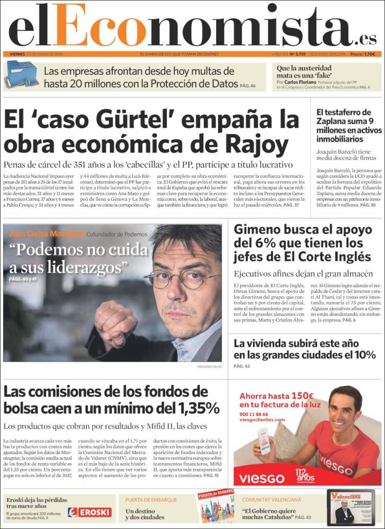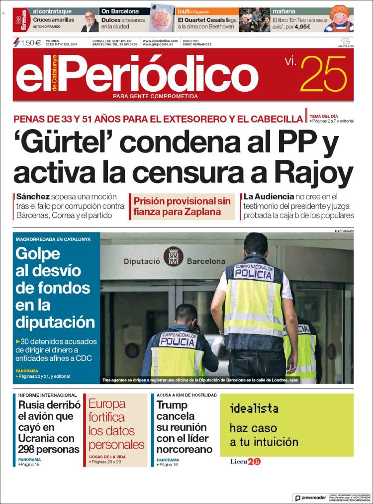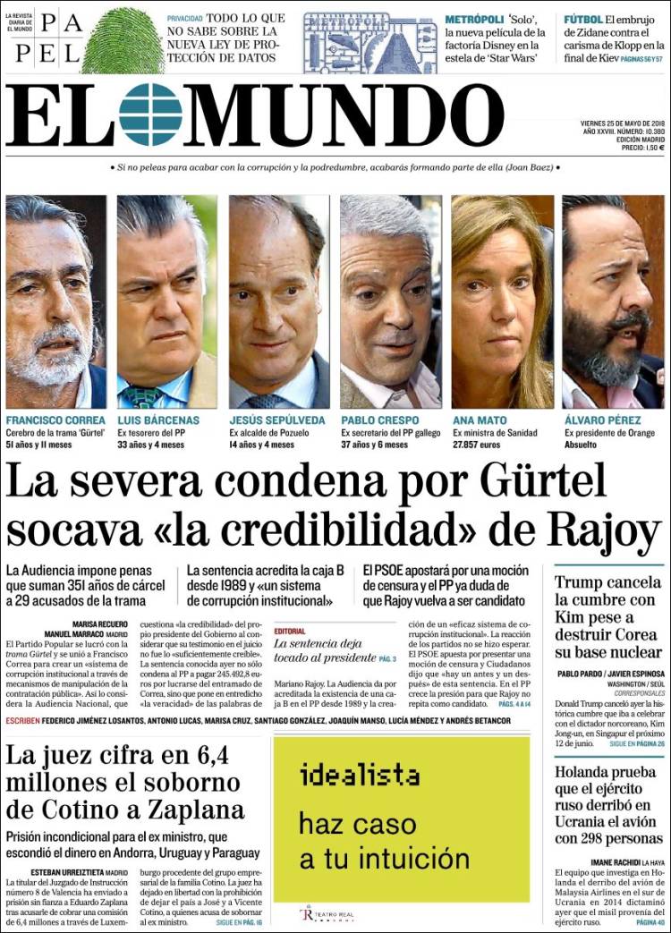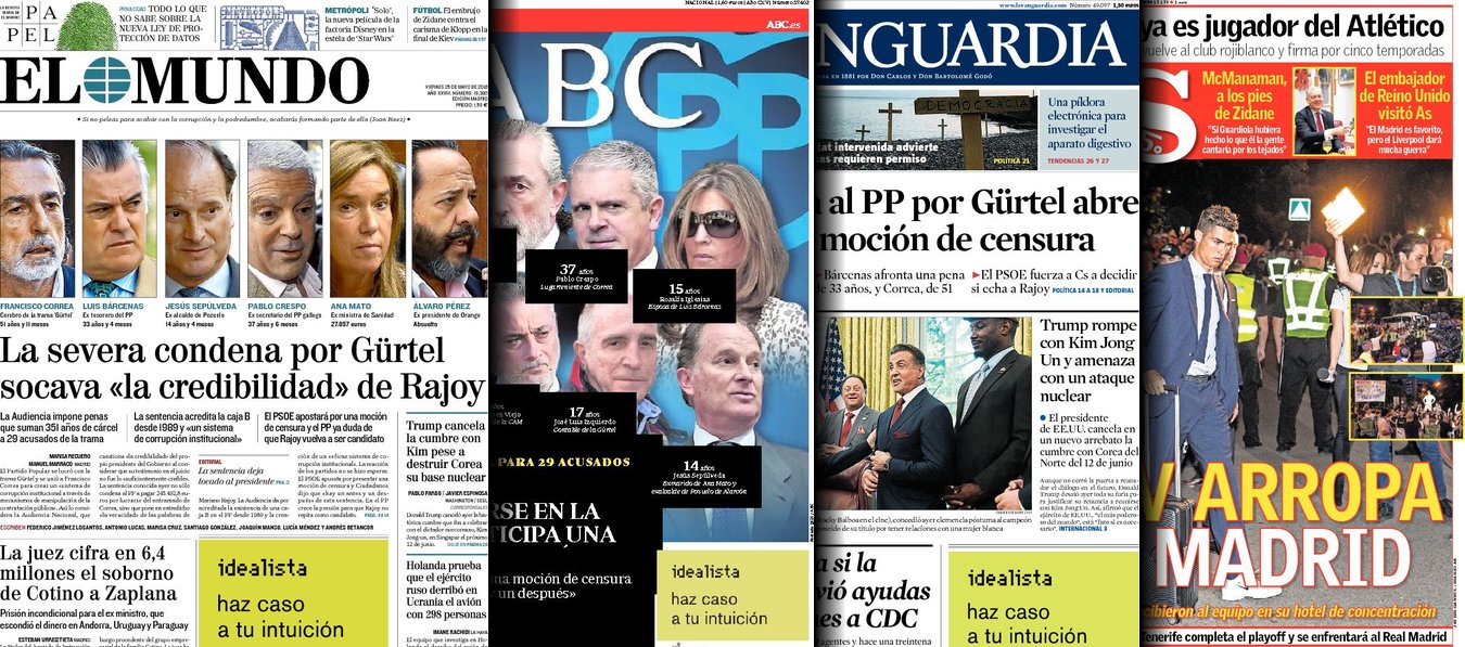 Portadas de los diarios El Mundo, El País, ABC, La Razón, La Vanguardia, El Periódico, Cinco Días, El Economista, Marca, As, Mundo Deportivo y Sport.