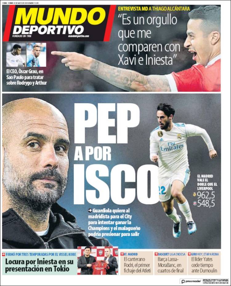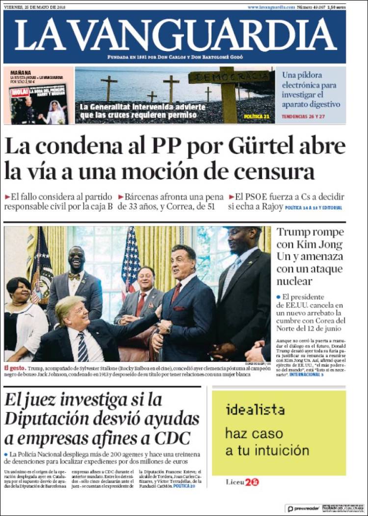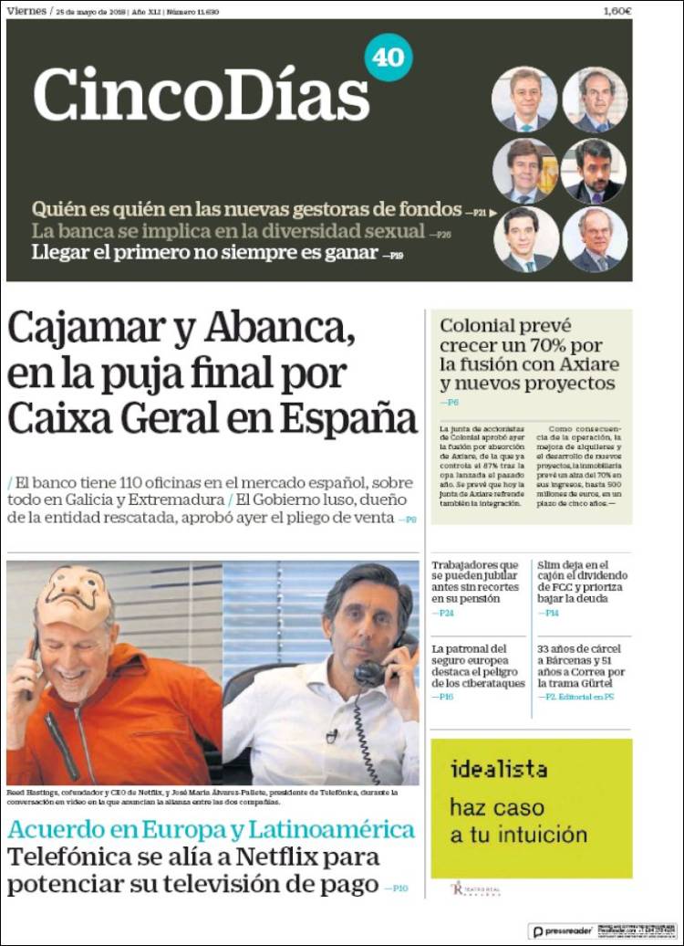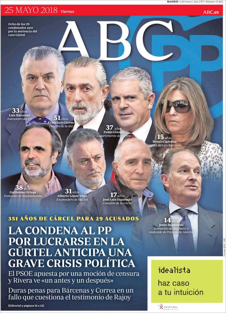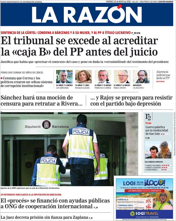 Portadas de los diarios El Mundo, El País, ABC, La Razón, La Vanguardia, El Periódico, Cinco Días, El Economista, Marca, As, Mundo Deportivo y Sport.