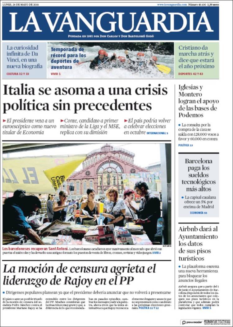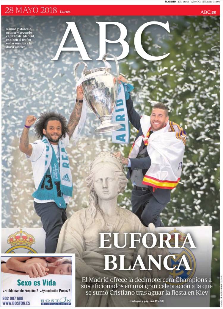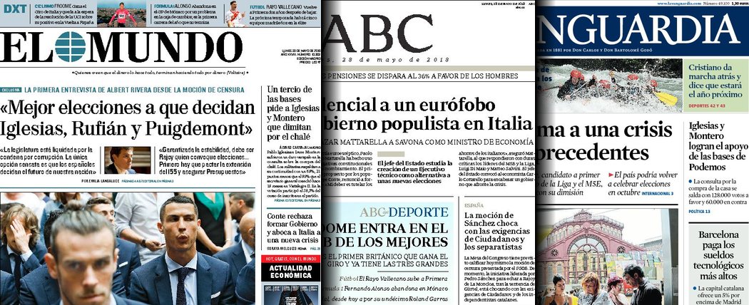Portadas de los diarios El Mundo, El País, ABC, La Razón, La Vanguardia, El Periódico, Cinco Días, El Economista, Marca, As, Mundo Deportivo y Sport.