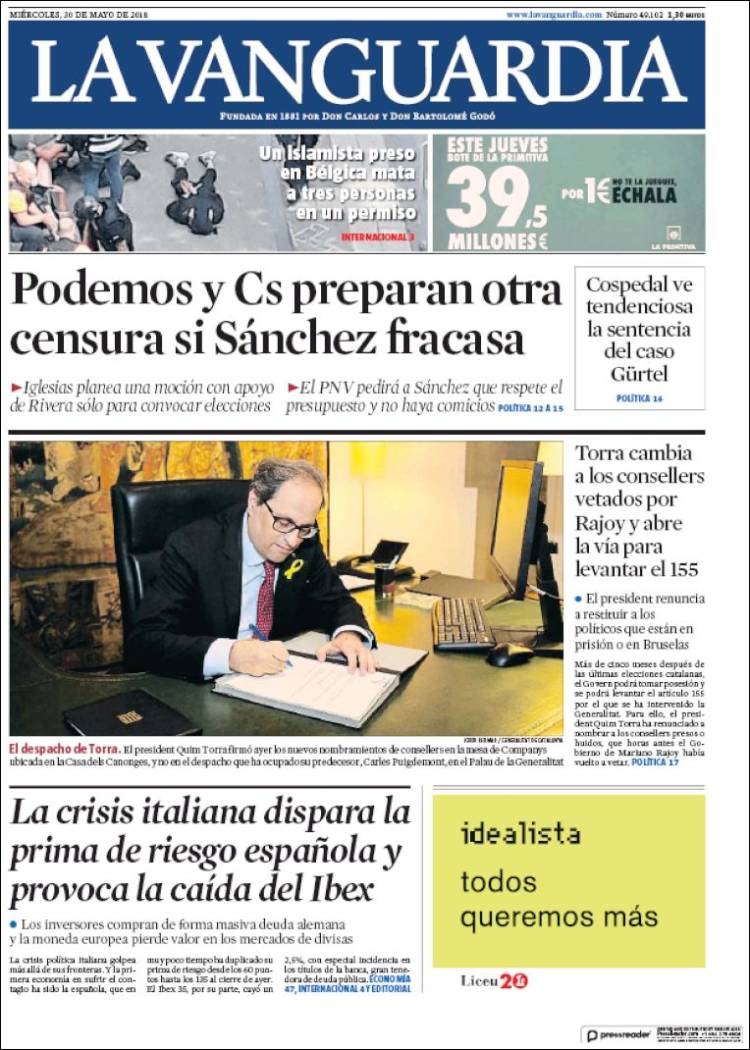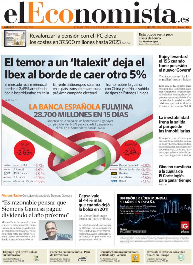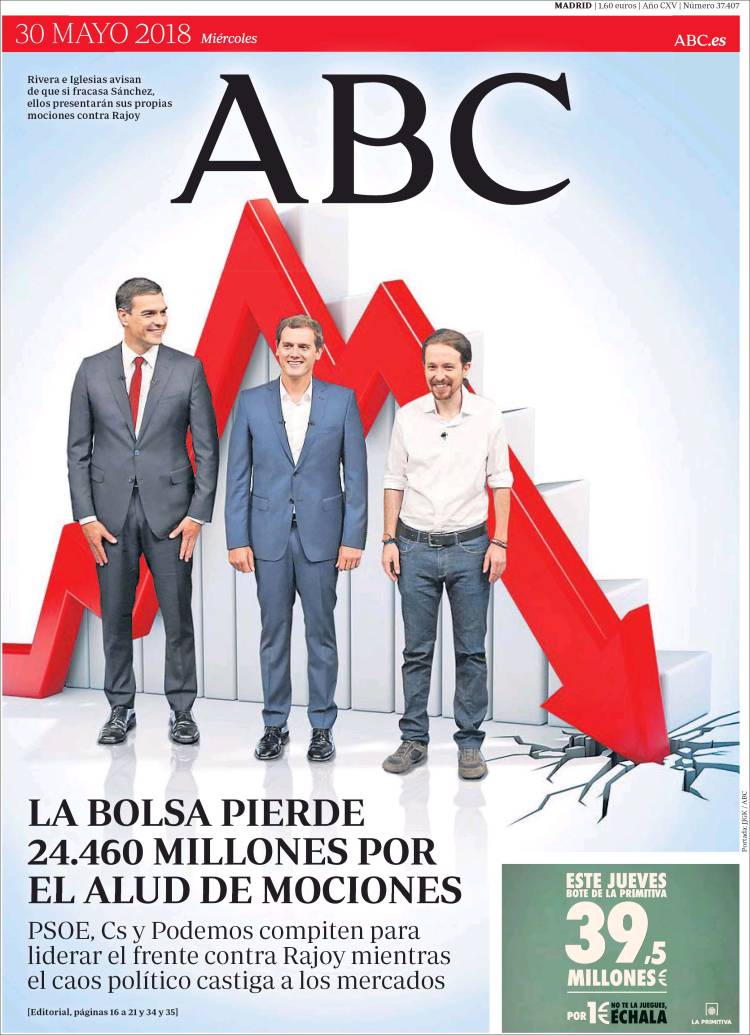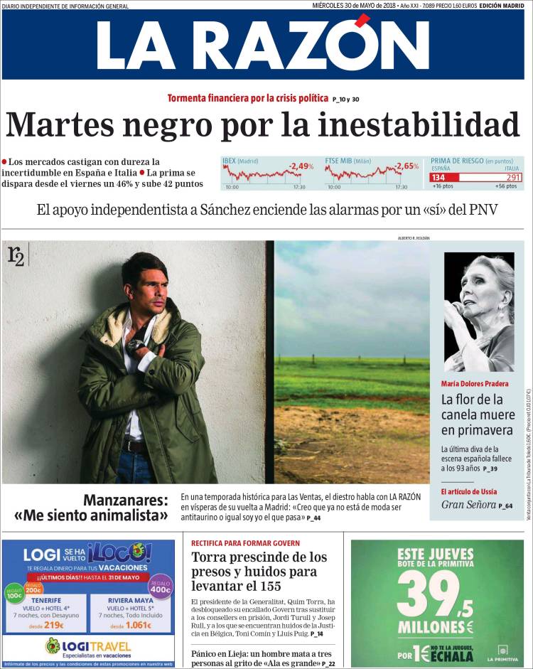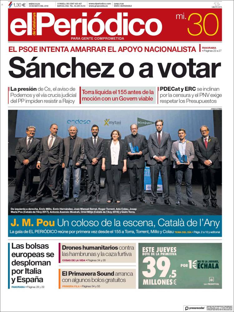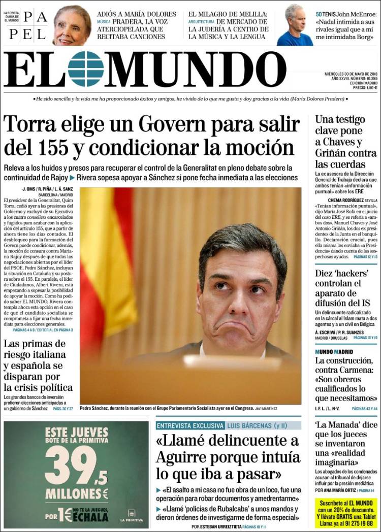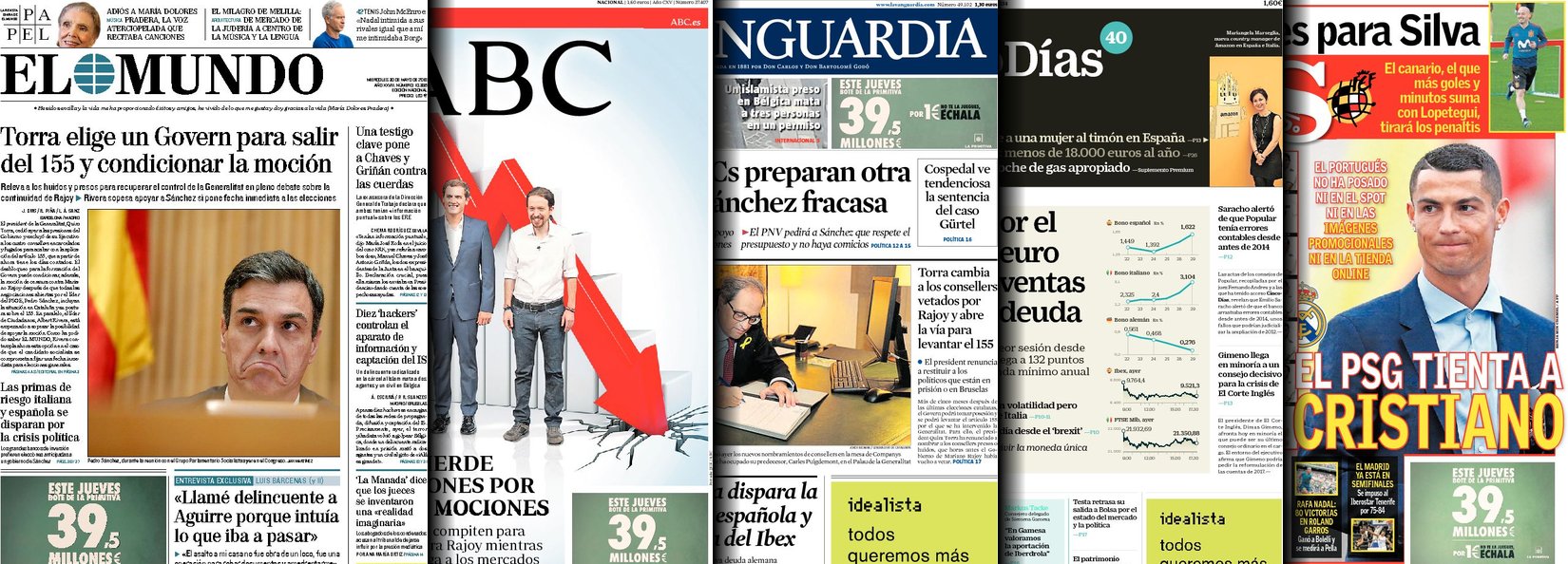 Portadas de los diarios El Mundo, El País, ABC, La Razón, La Vanguardia, El Periódico, Cinco Días, El Economista, Marca, As, Mundo Deportivo y Sport.