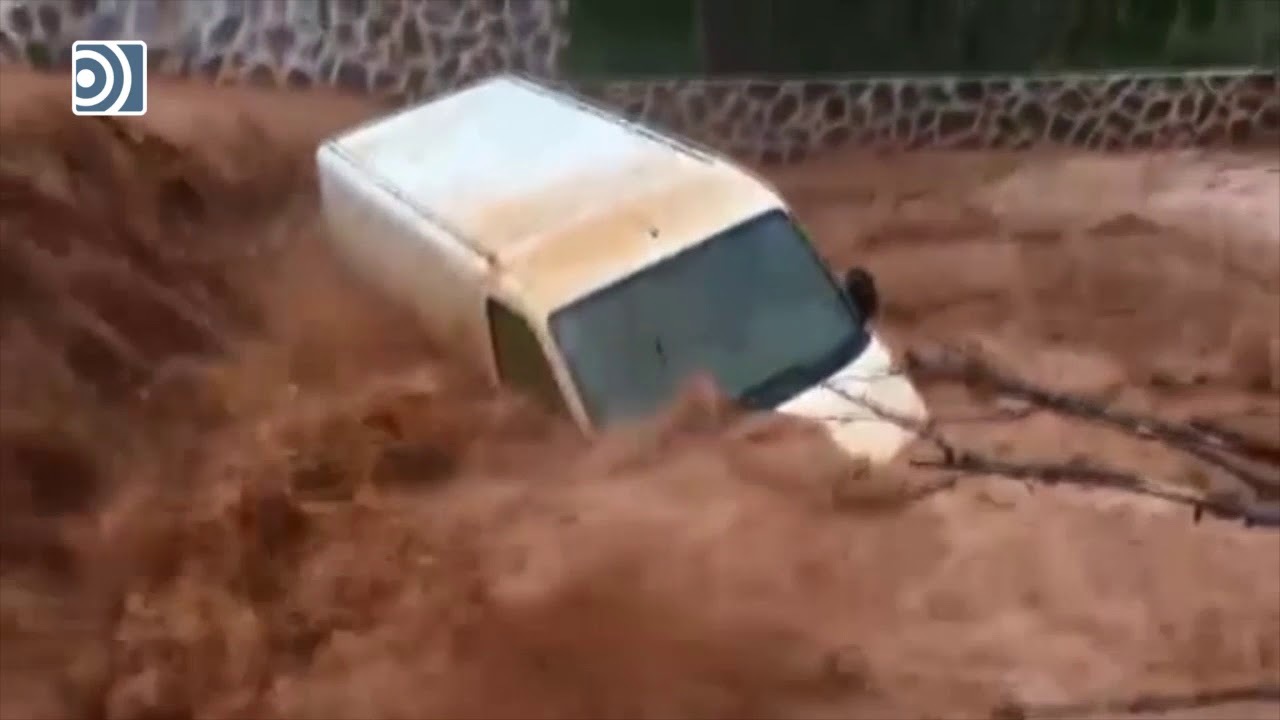 Así arrastra una riada a una furgoneta en el municipio de Liétor (Albacete). Las lluvias torrenciales han provocado hasta 15 incidencias en la provincia
