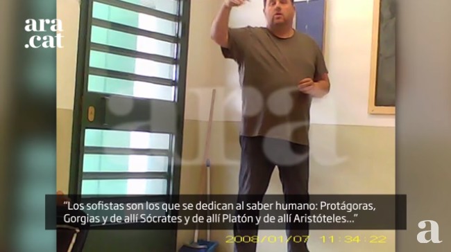 El periódico Ara ha publicado imágenes de los exconsejeros Oriol Junqueras, Joaquim Forn y Raül Romeva en su día a día en la cárcel de Estremera (Madrid). Bajo el epígrafe "Las imágenes de la injusticia de Estremera", la web ha difundido fragmentos de vídeos en las que se ve a Junqueras impartiendo clase de filosofía griega a otros presos, entre ellos Romeva. También aparece barriendo salas comunes y dentro de su celda.