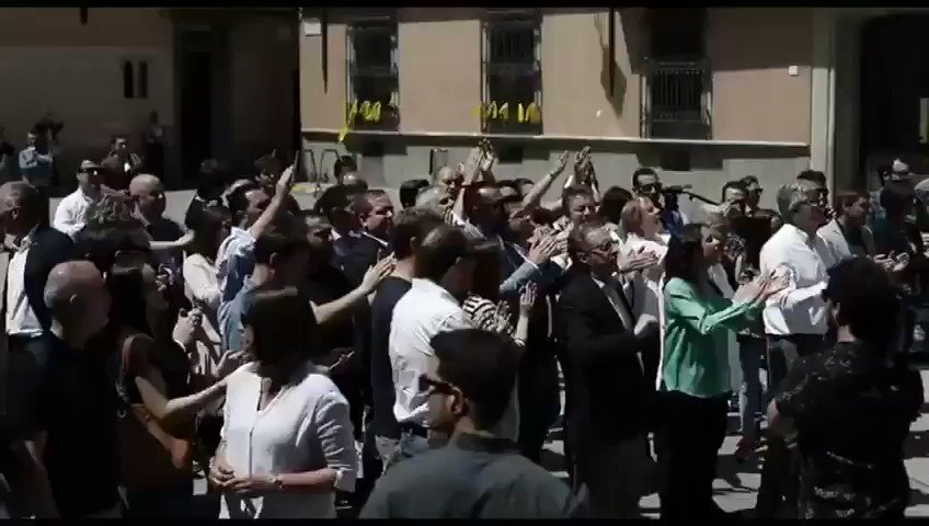 La líder de Ciudadanos en Cataluña, Inés Arrimadas, y varios diputados en el Parlamento han acudido a Vich para "defender la libertad y la dignidad ante el acoso de unos separatistas totalitarios".