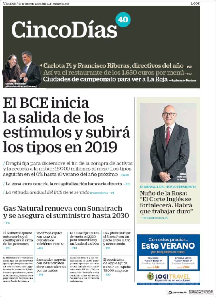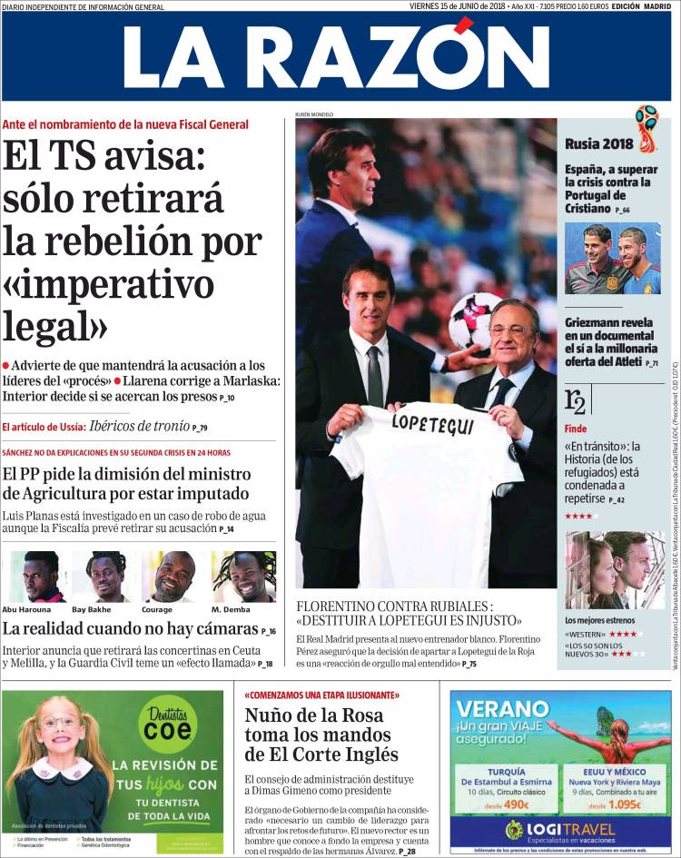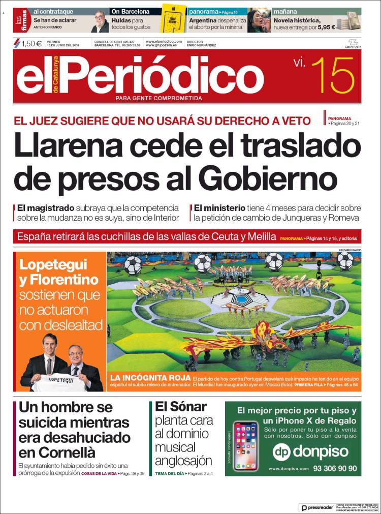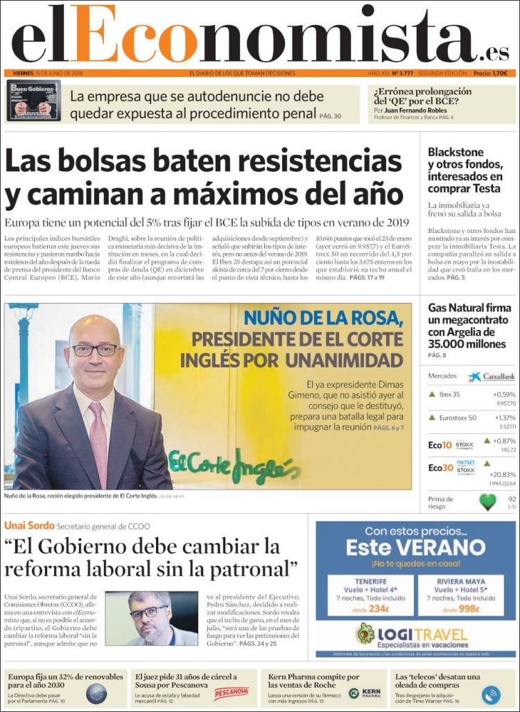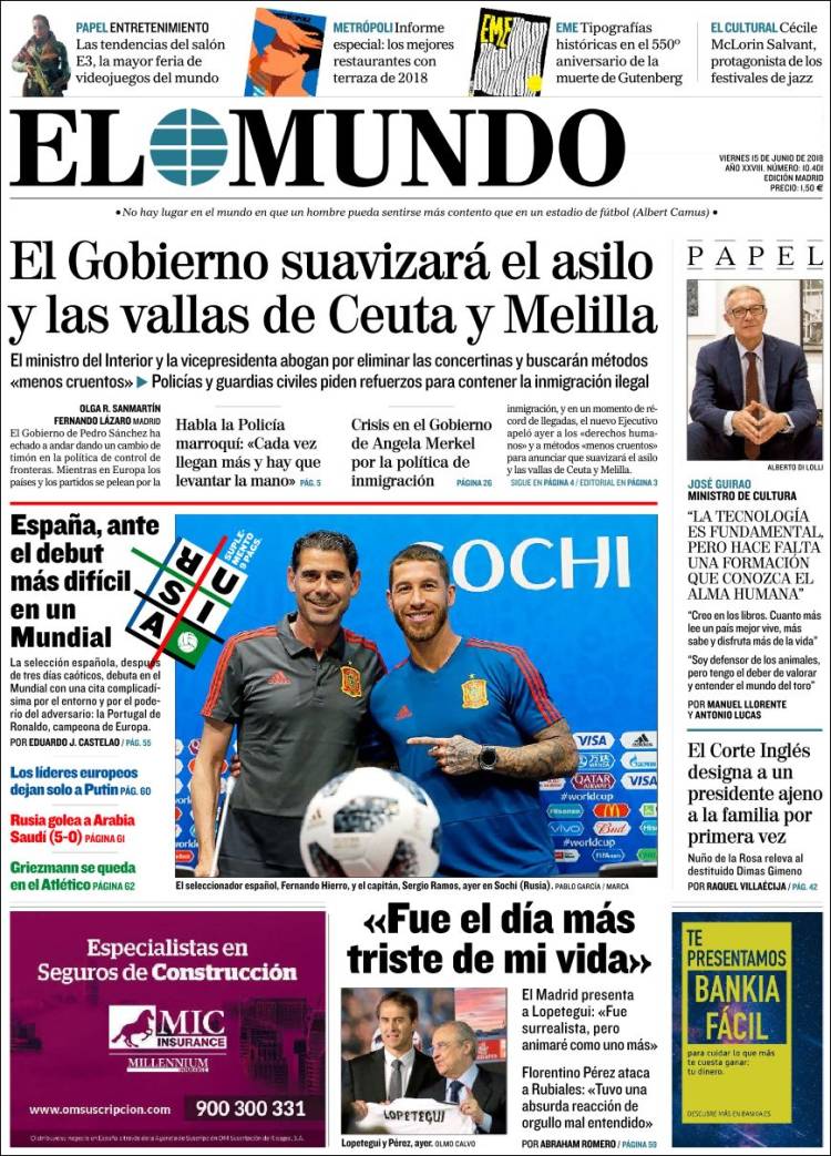 Portadas de los diarios El Mundo, El País, ABC, La Razón, La Vanguardia, El Periódico, Cinco Días, El Economista, Marca, As, Mundo Deportivo y Sport.