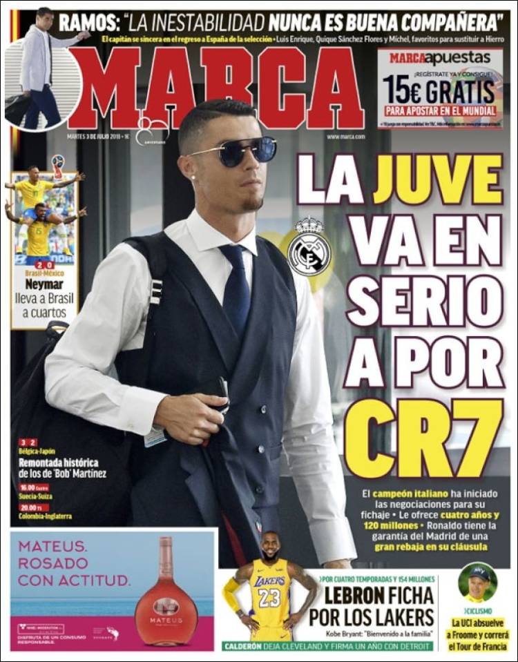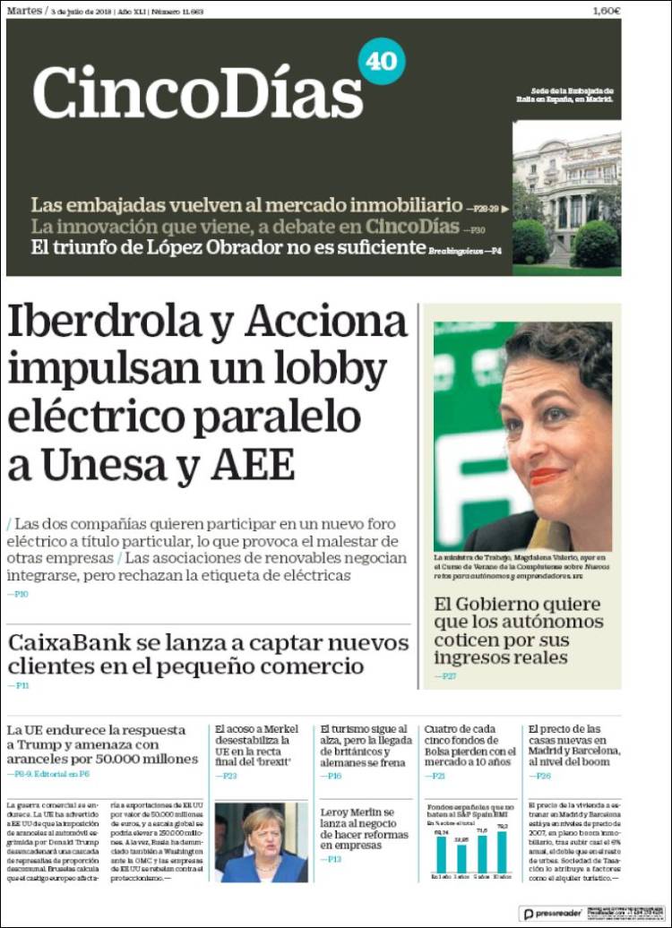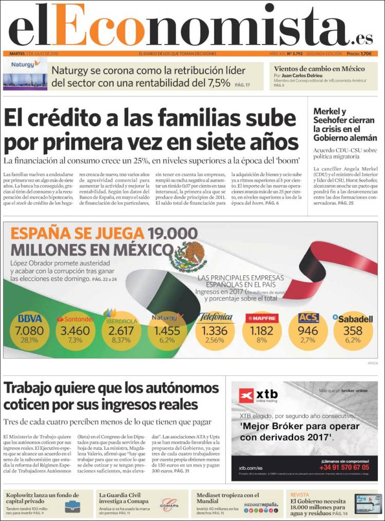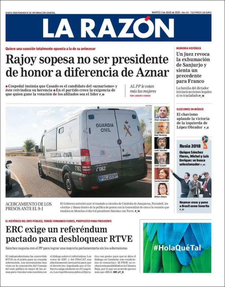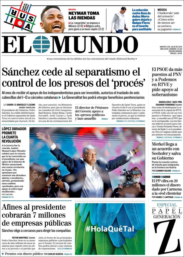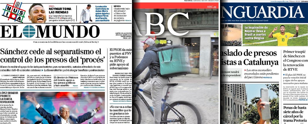 Portadas de los diarios El Mundo, El País, ABC, La Razón, La Vanguardia, El Periódico, Cinco Días, El Economista, Marca, As, Mundo Deportivo y Sport.