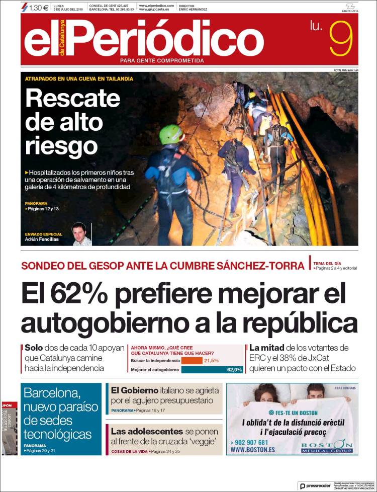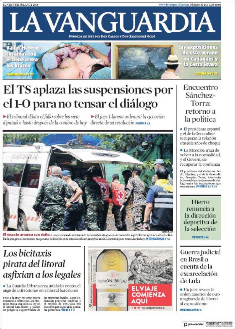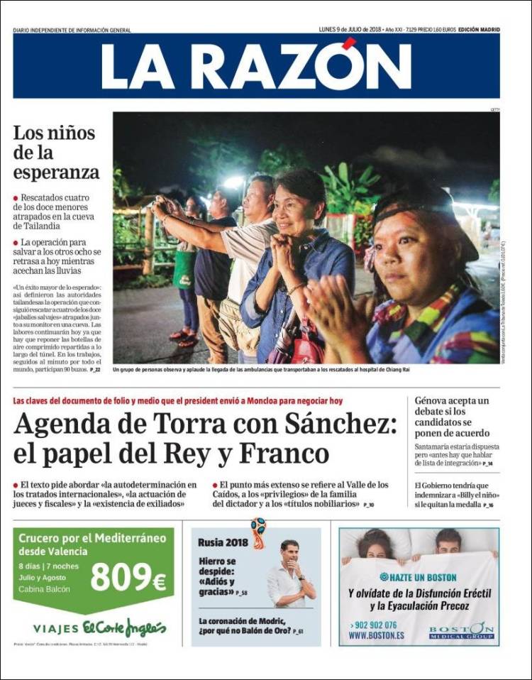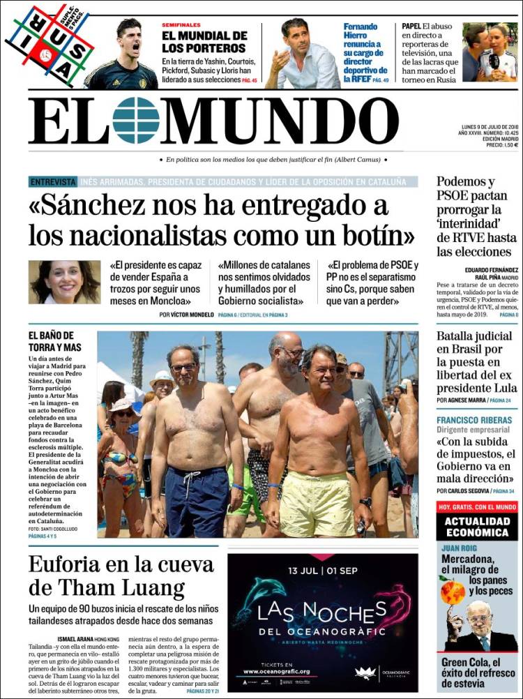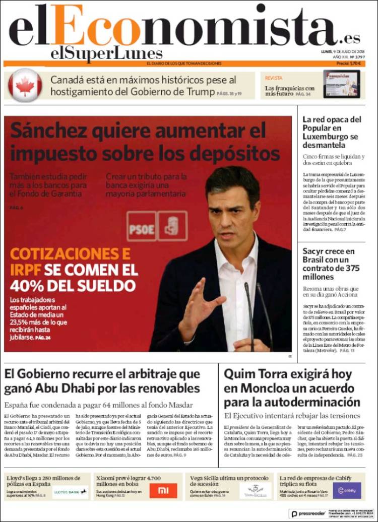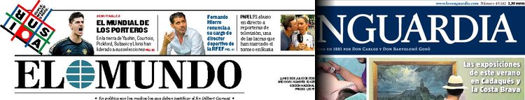 Portadas de los diarios El Mundo, El País, ABC, La Razón, La Vanguardia, El Periódico, Cinco Días, El Economista, Marca, As, Mundo Deportivo y Sport.