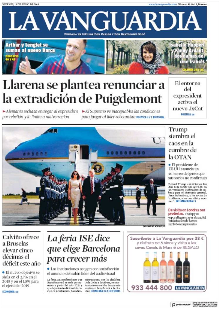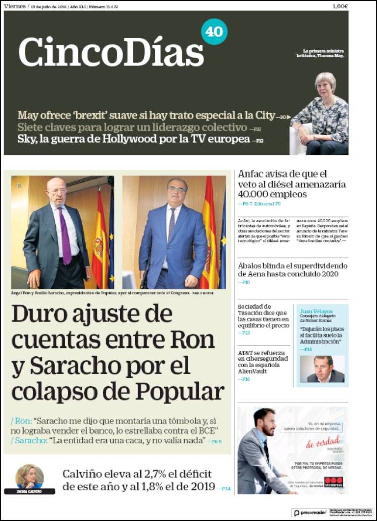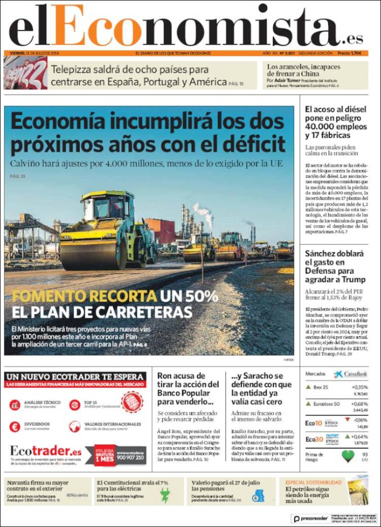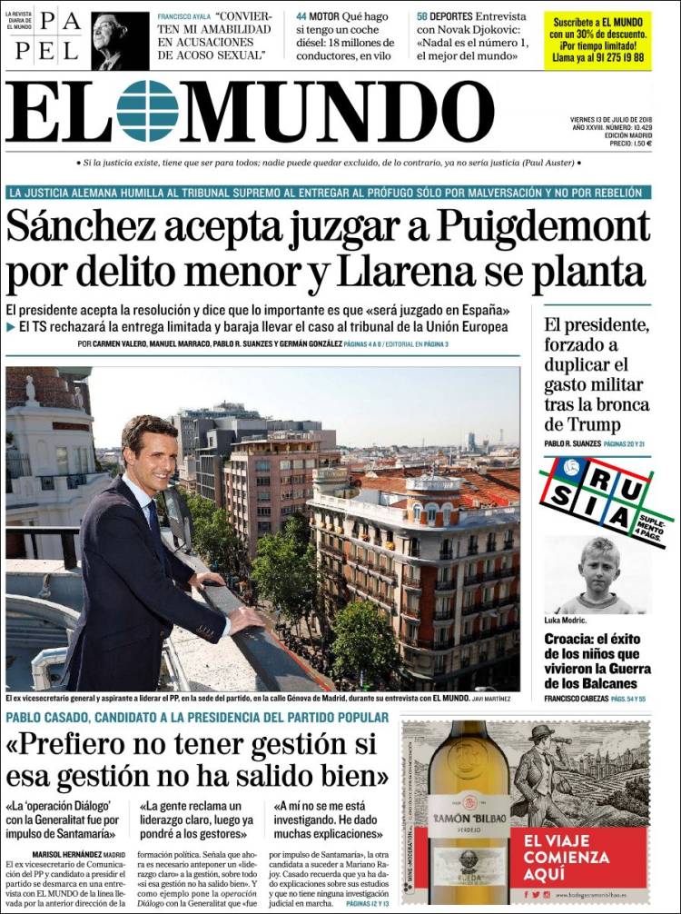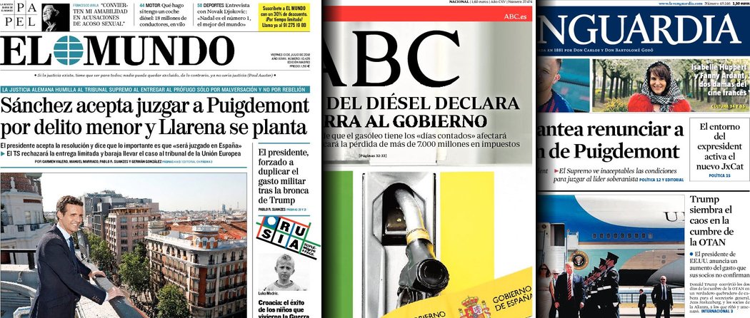 Portadas de los diarios El Mundo, El País, ABC, La Razón, La Vanguardia, El Periódico, Cinco Días, El Economista, Marca, Mundo Deportivo y Sport.