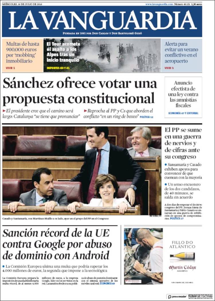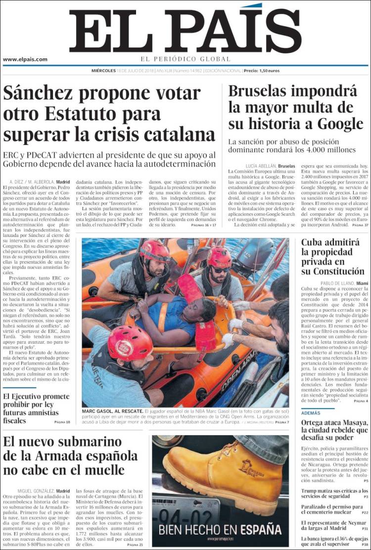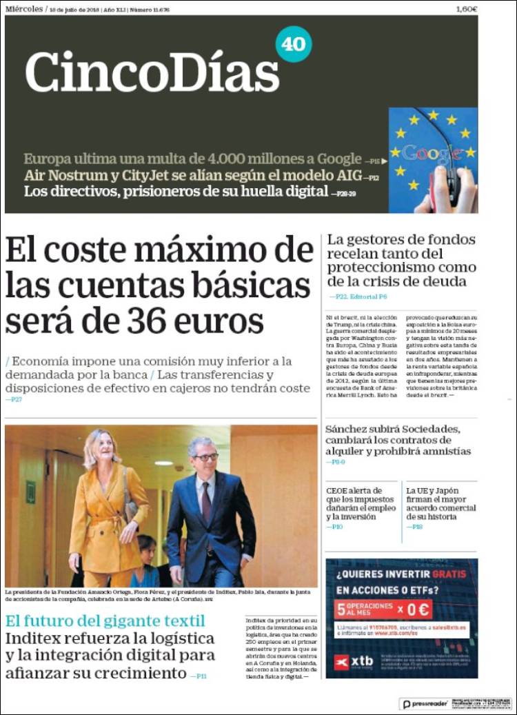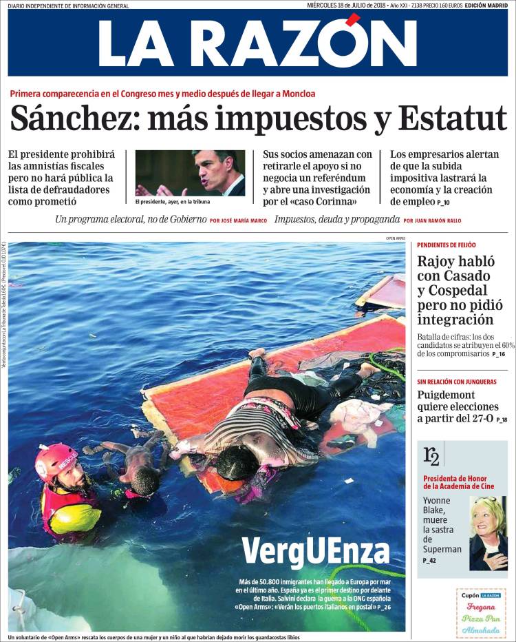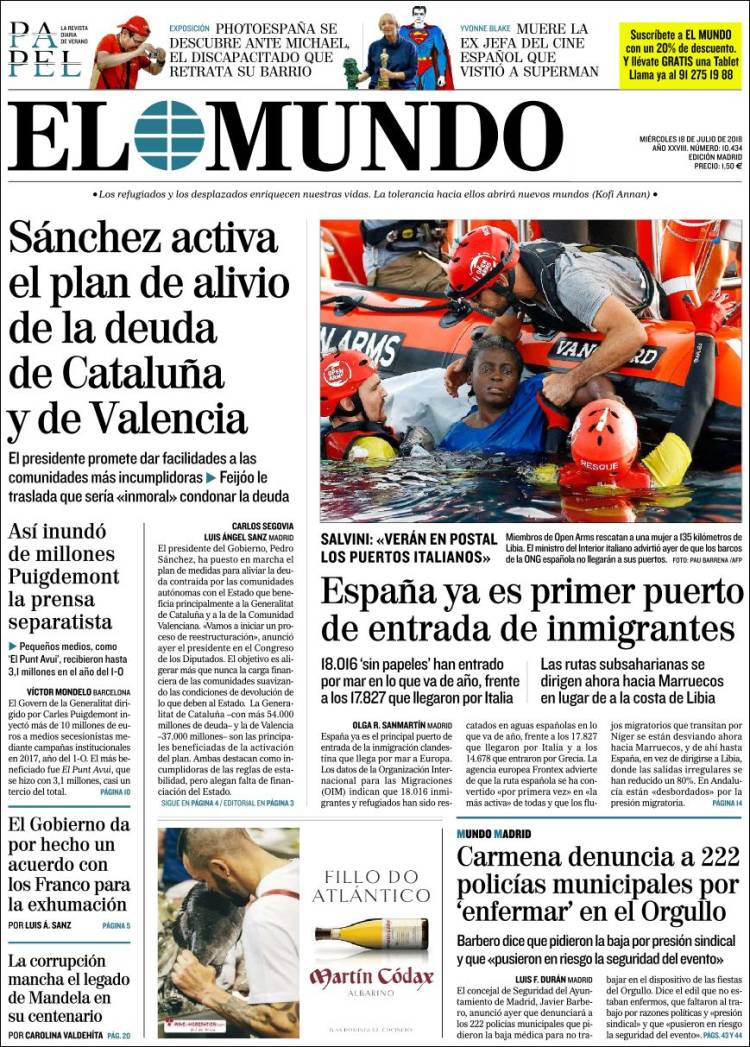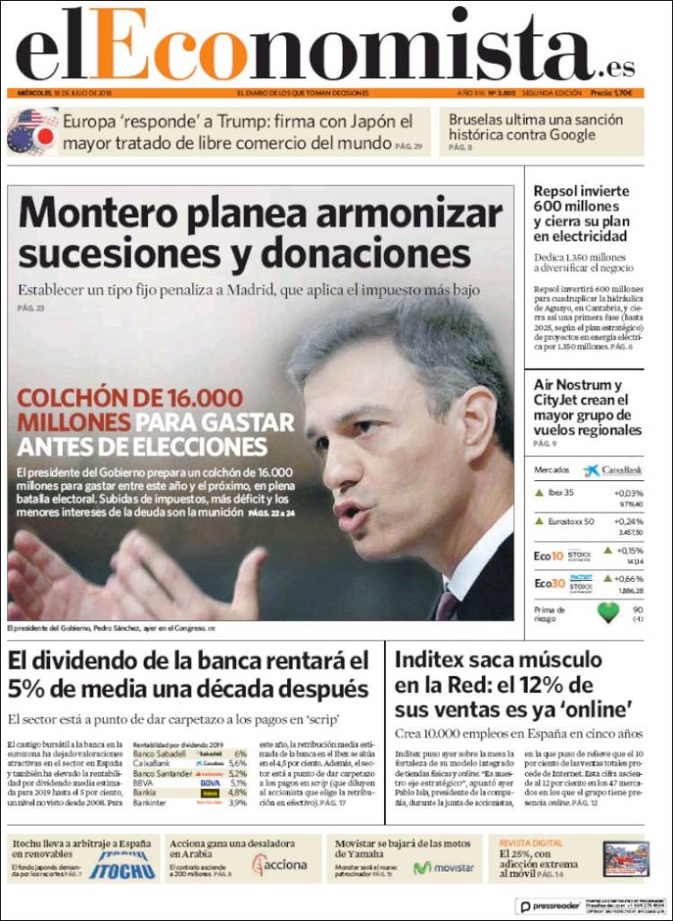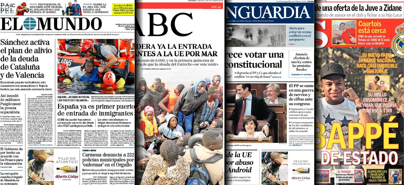 Portadas de los diarios El Mundo, El País, ABC, La Razón, La Vanguardia, El Periódico, Cinco Días, El Economista, Marca, Mundo Deportivo y Sport.