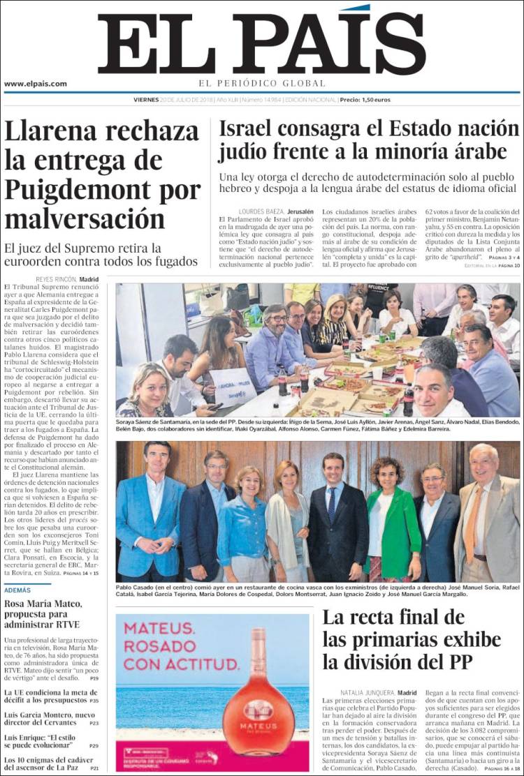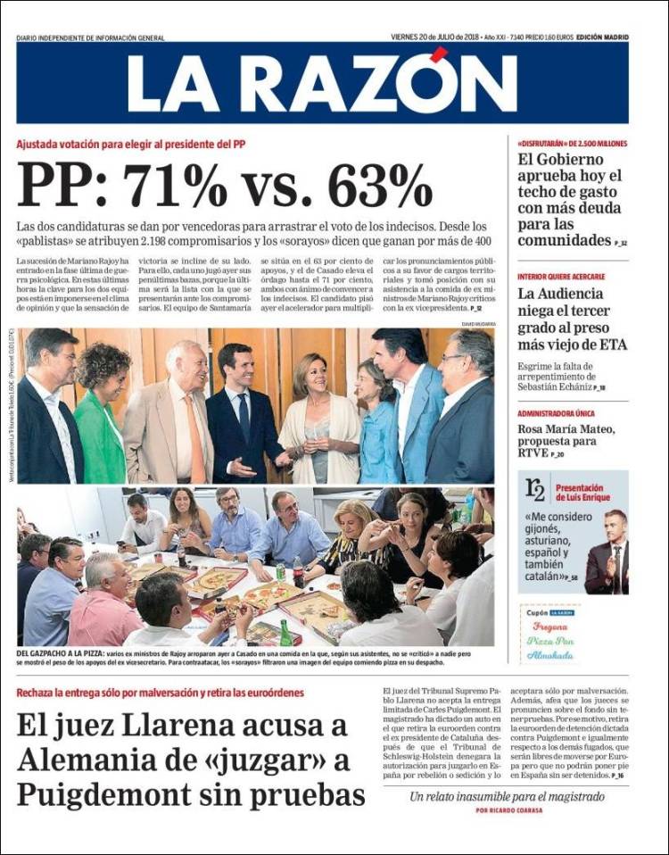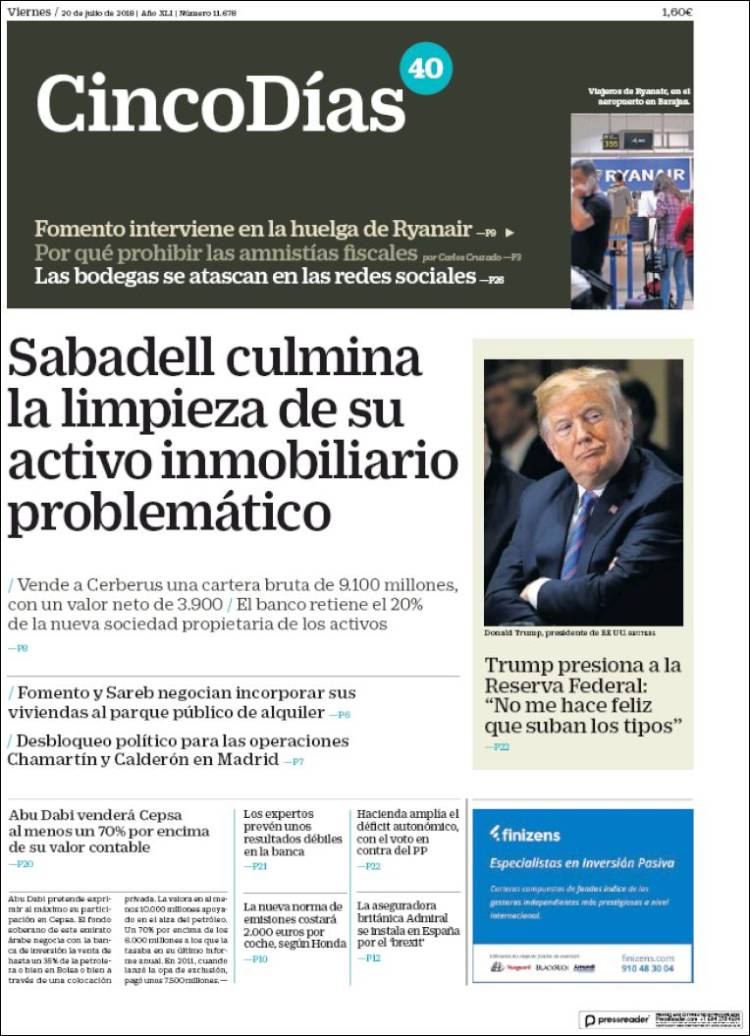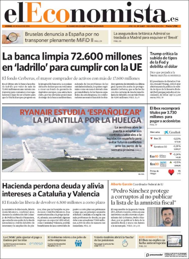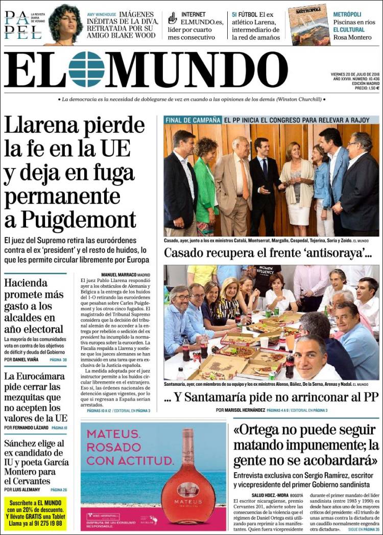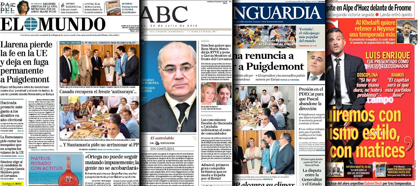 Portadas de los diarios El Mundo, El País, ABC, La Razón, La Vanguardia, El Periódico, Cinco Días, El Economista, Marca, Mundo Deportivo y Sport.