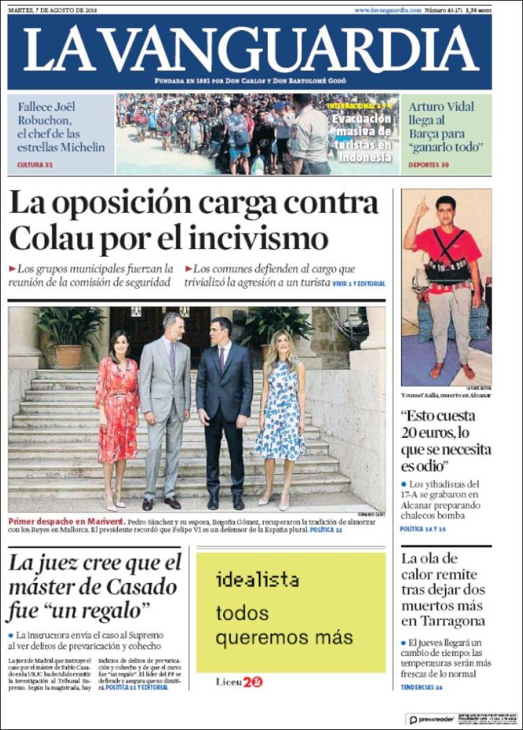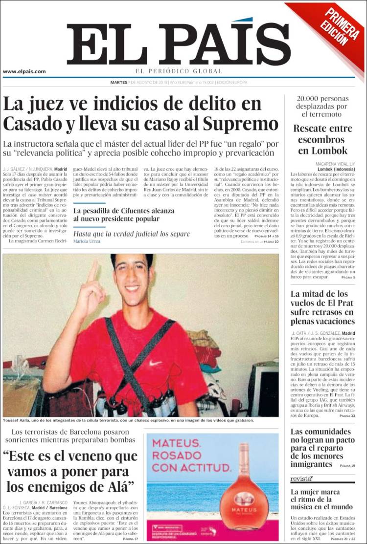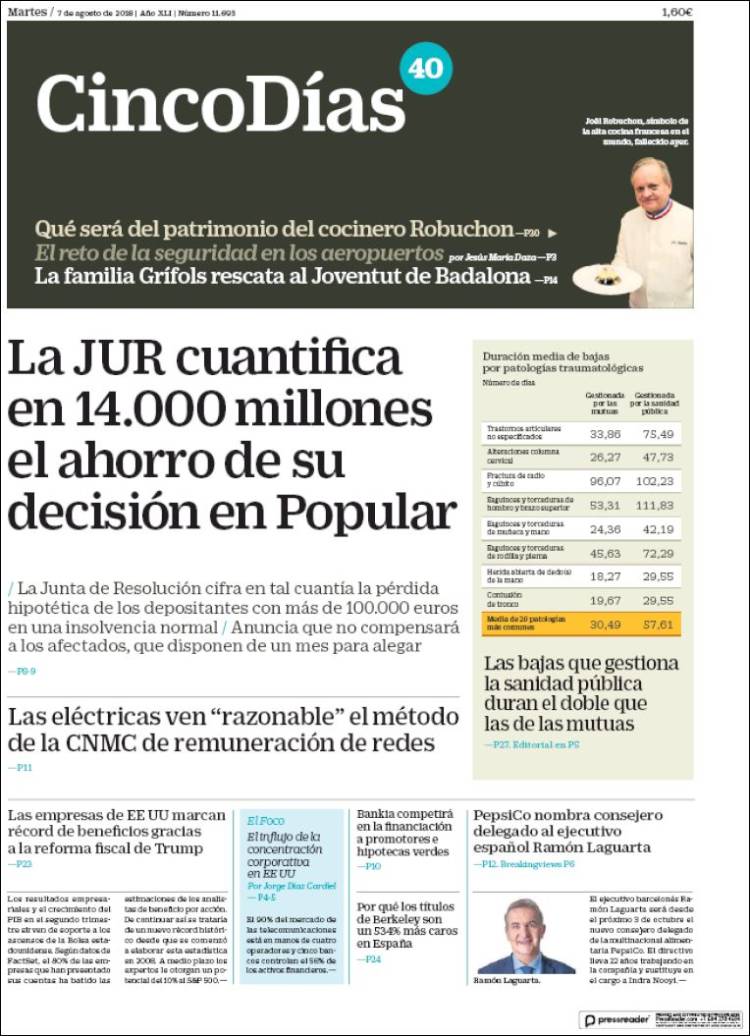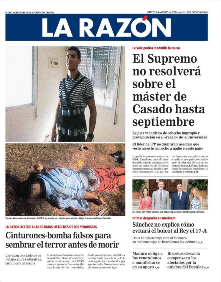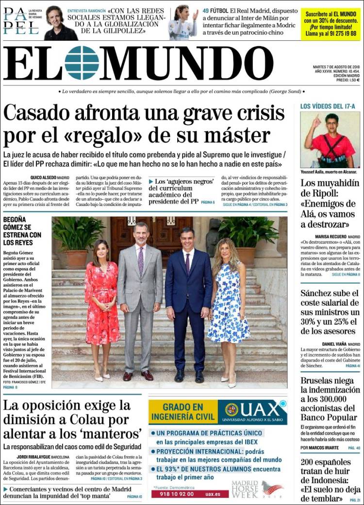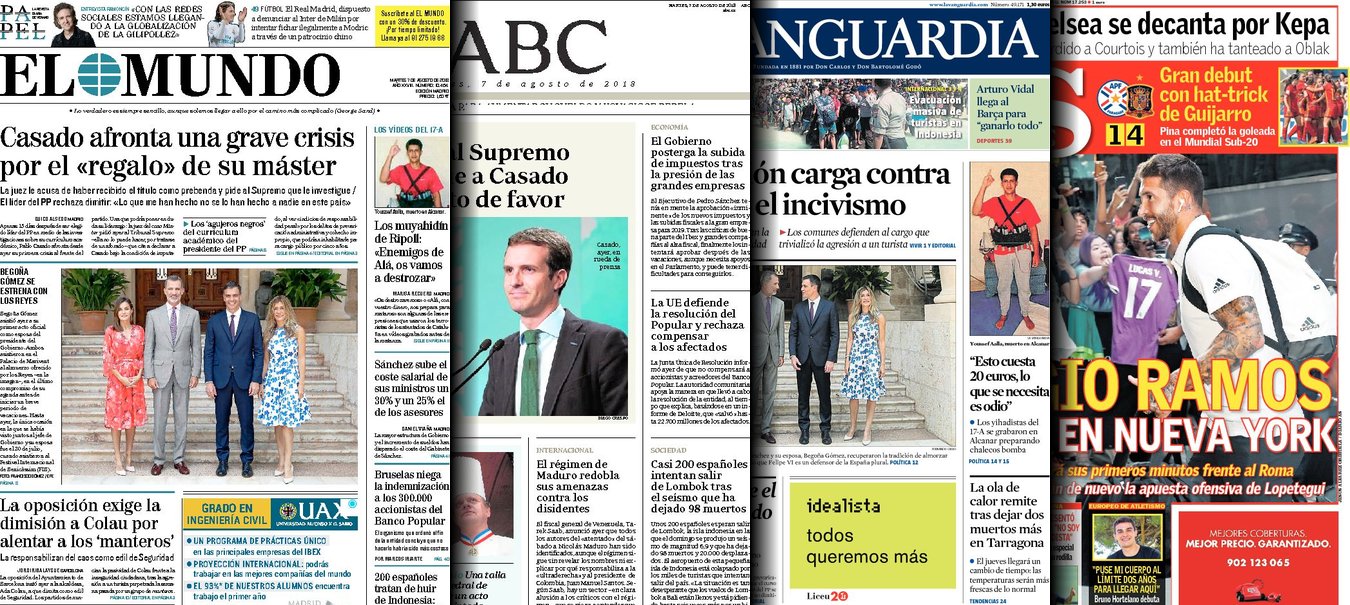 Portadas de los diarios El Mundo, El País, ABC, La Razón, La Vanguardia, El Periódico, Cinco Días, El Economista, Marca, As, Mundo Deportivo y Sport.