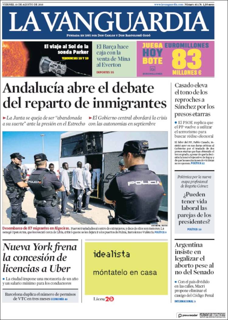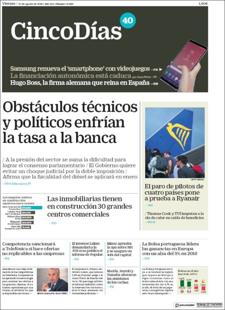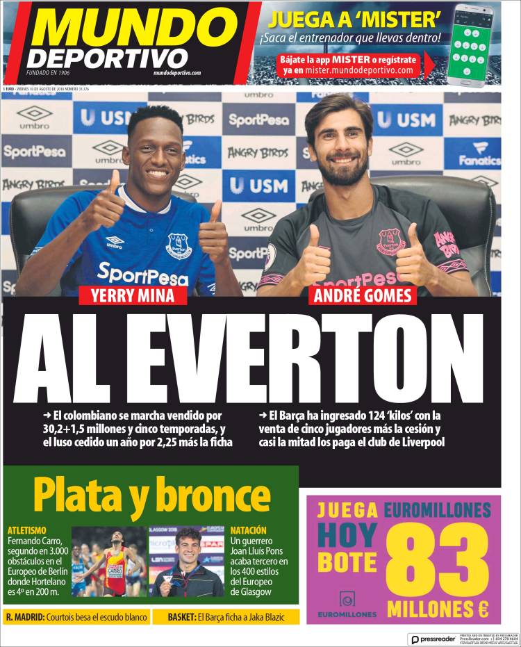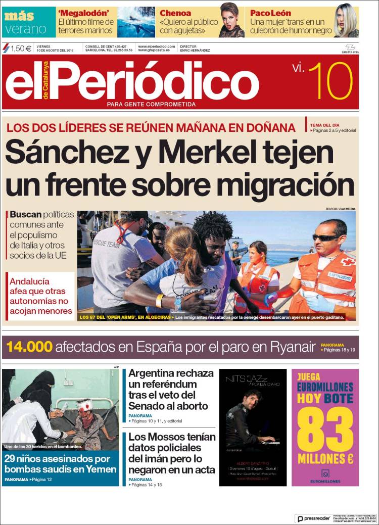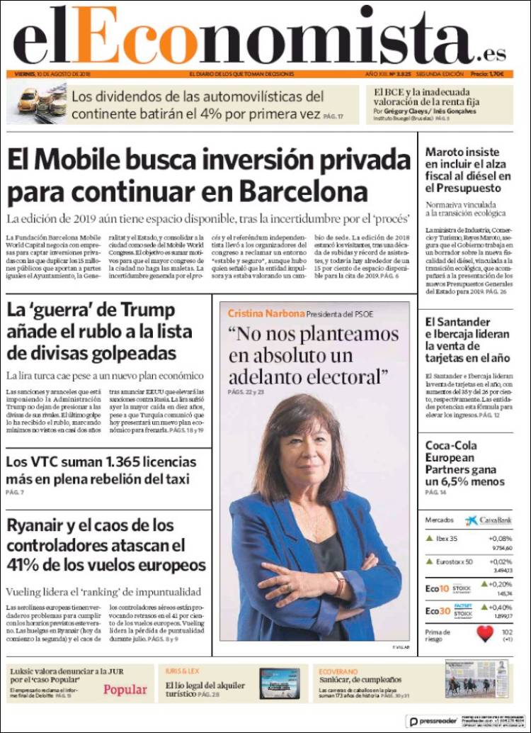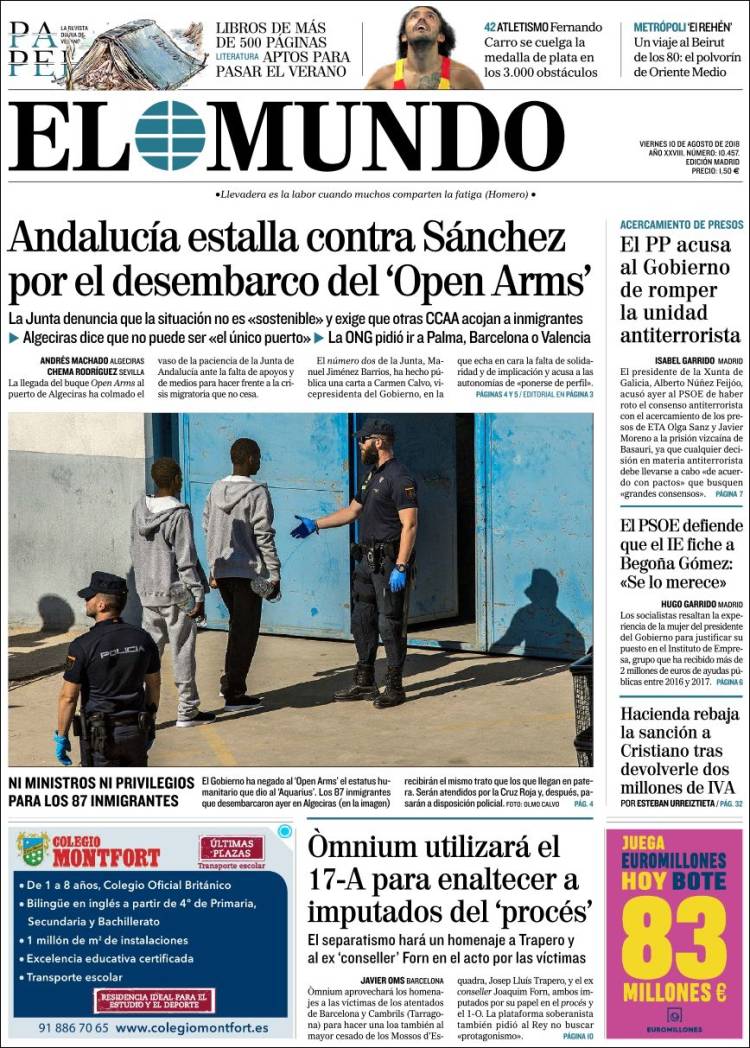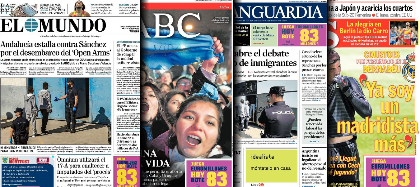 Portadas de los diarios El Mundo, El País, ABC, La Razón, La Vanguardia, El Periódico, Cinco Días, El Economista, Marca, As, Mundo Deportivo y Sport.