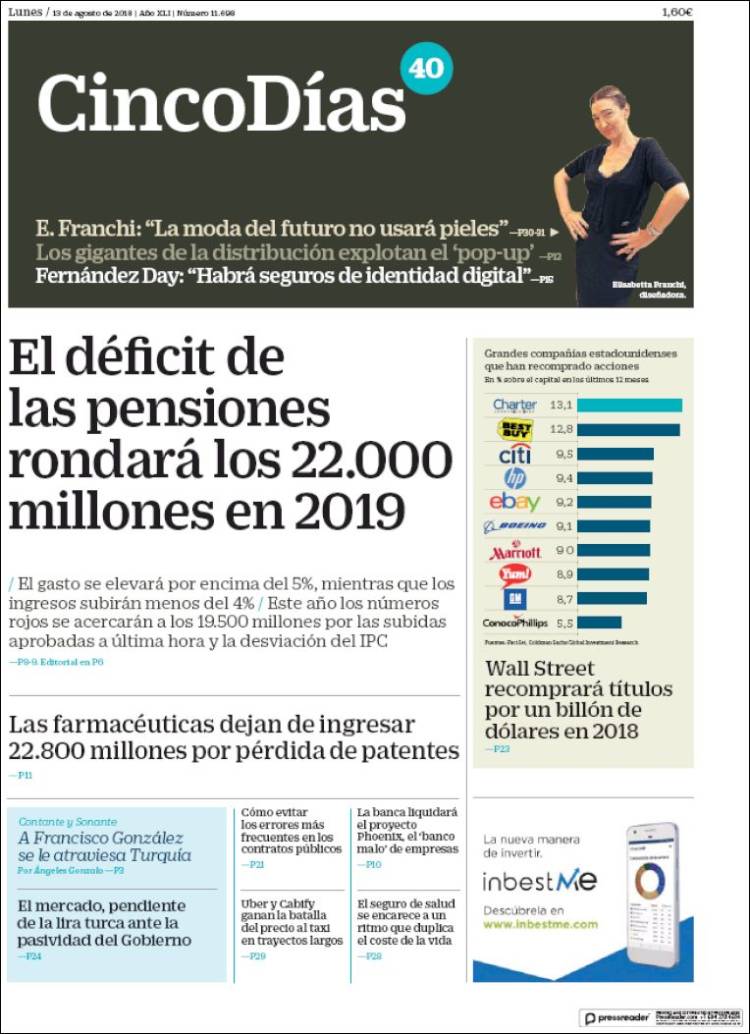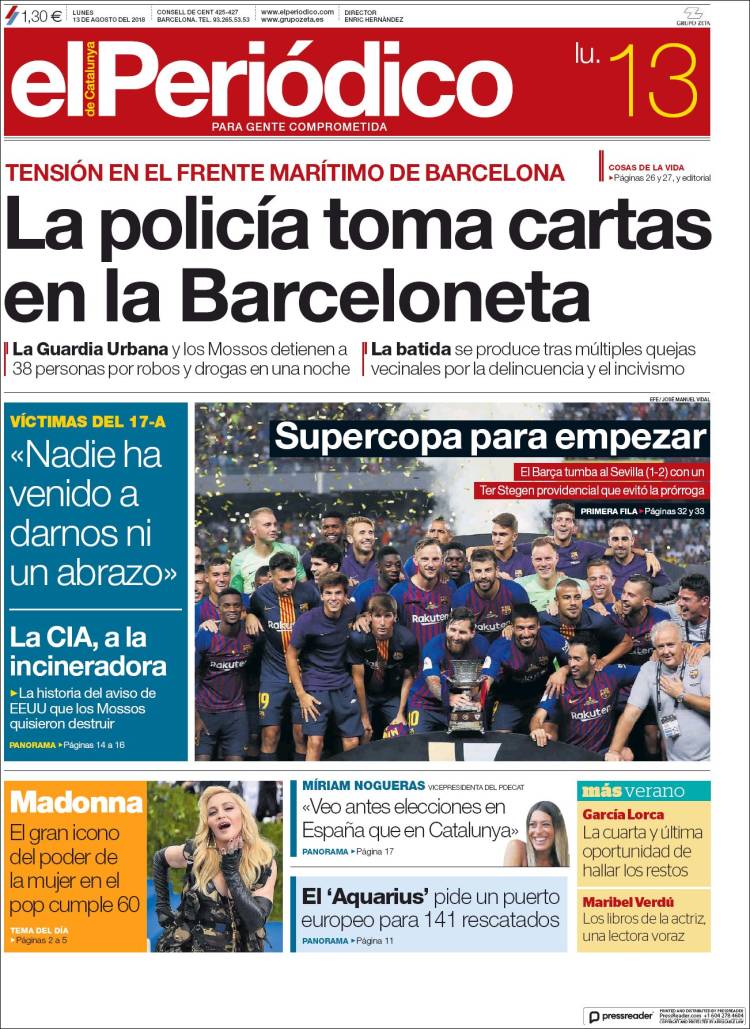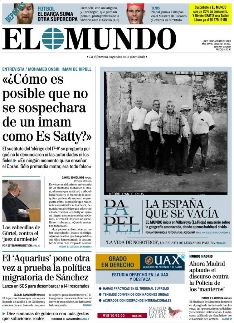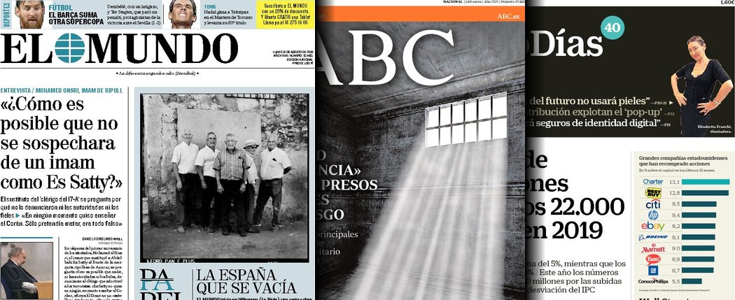 Portadas de los diarios El Mundo, El País, ABC, La Razón, La Vanguardia, El Periódico, Cinco Días, El Economista, Marca, As, Mundo Deportivo y Sport.