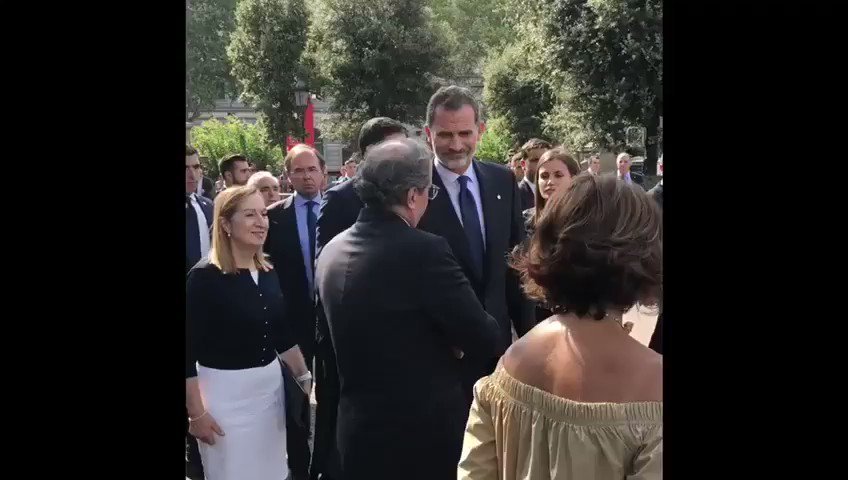 El momento del saludo del Rey a Torra y la mujer de Forn