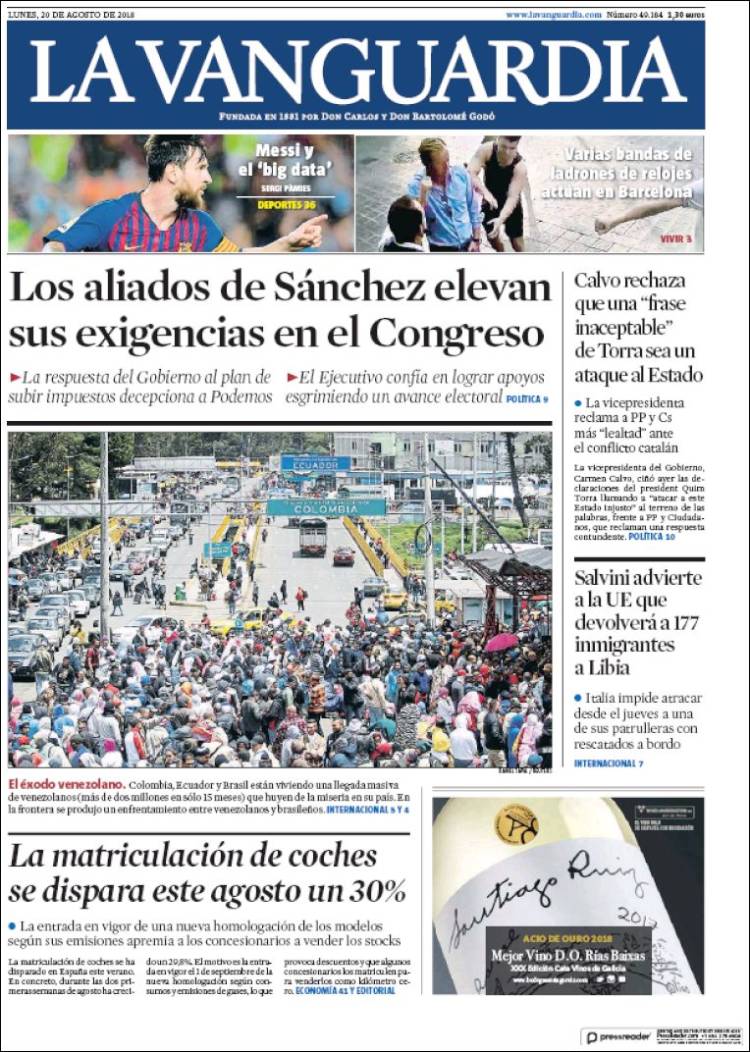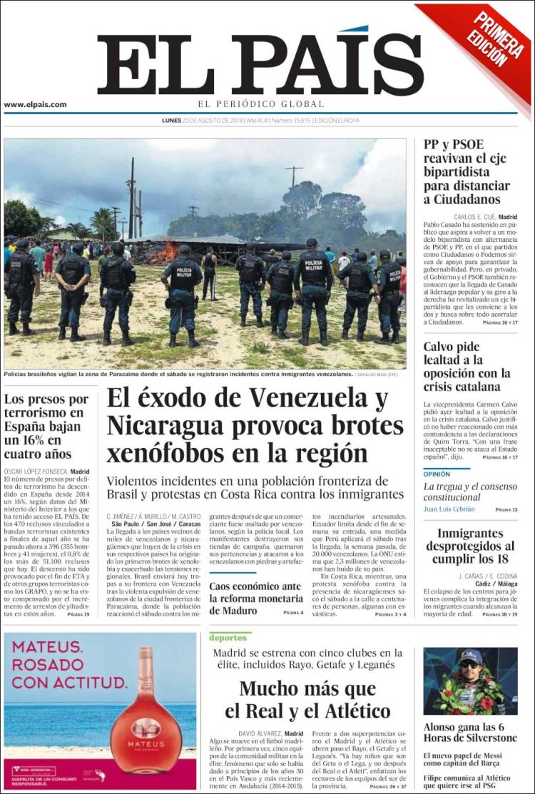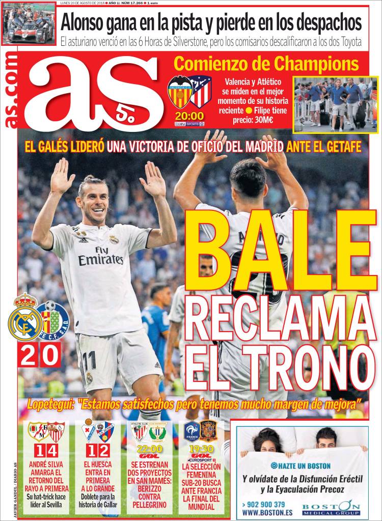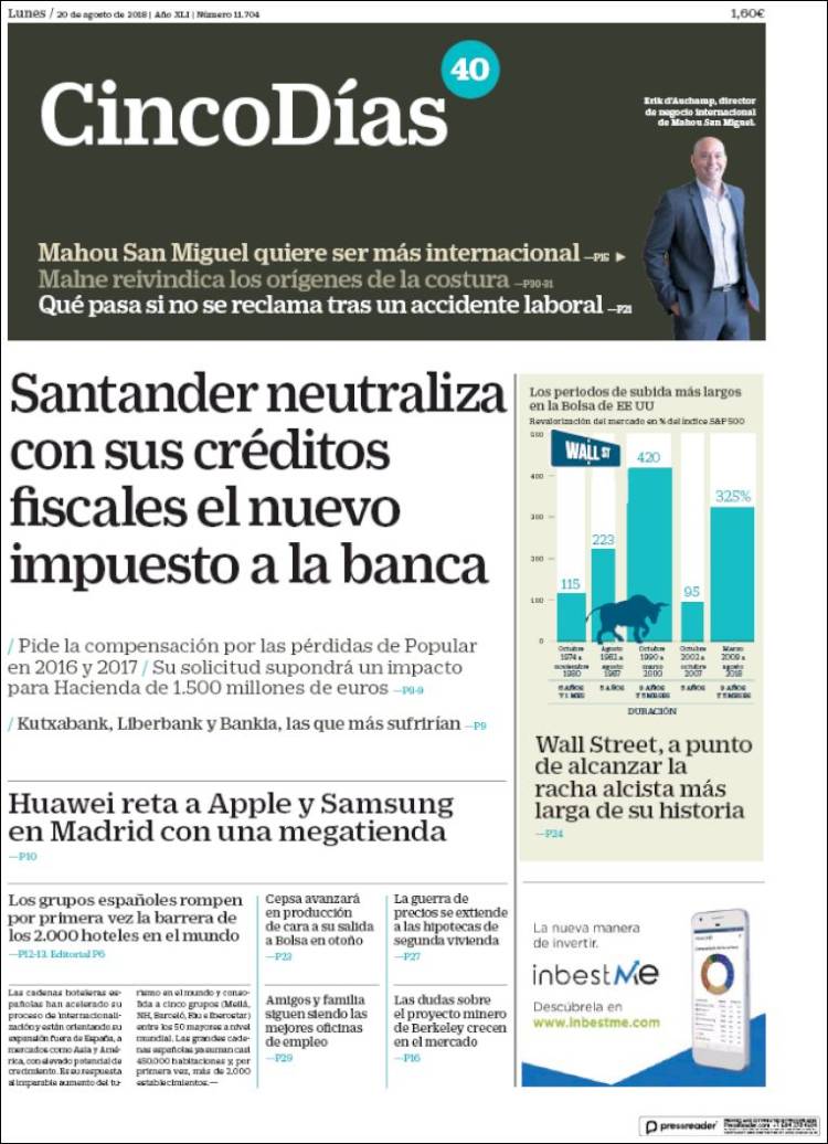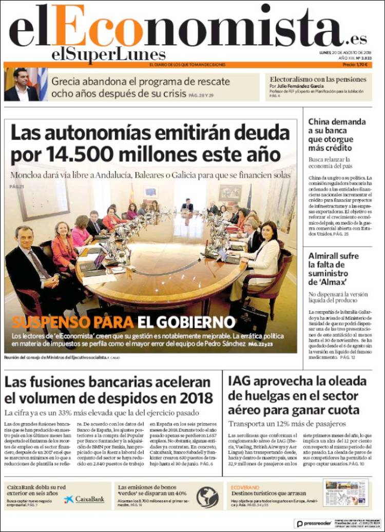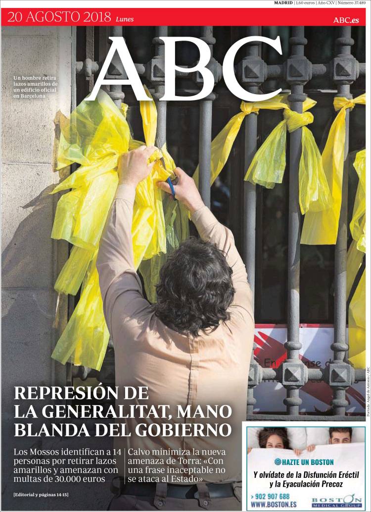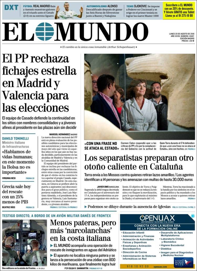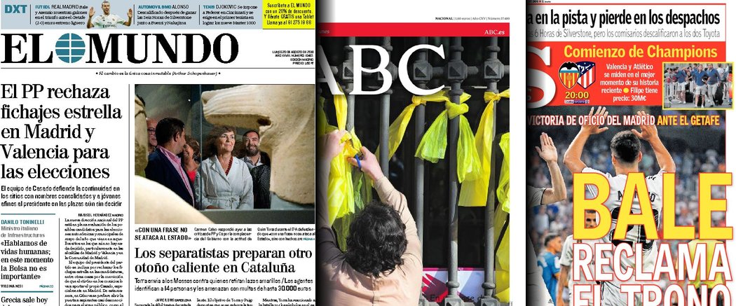Portadas de los diarios El Mundo, El País, ABC, La Razón, La Vanguardia, El Periódico, Cinco Días, El Economista, Marca, As, Mundo Deportivo y Sport.