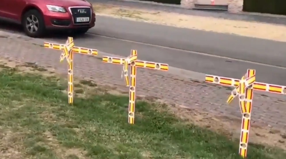 Un español residente en Bruselas ha plantado cruces frente a la casa de Puigdemont en Waterloo mientras sonaba el Himno Nacional de España.