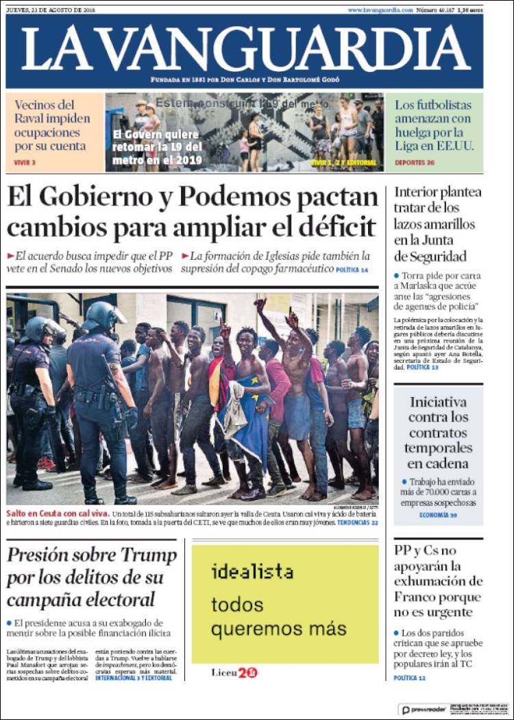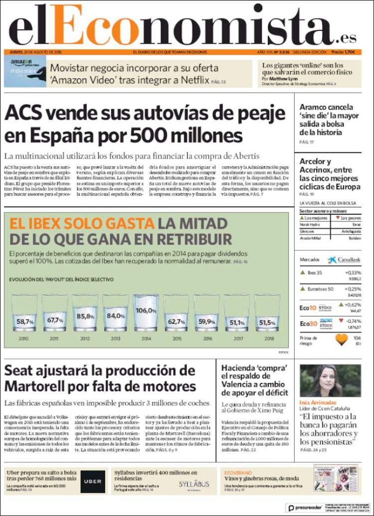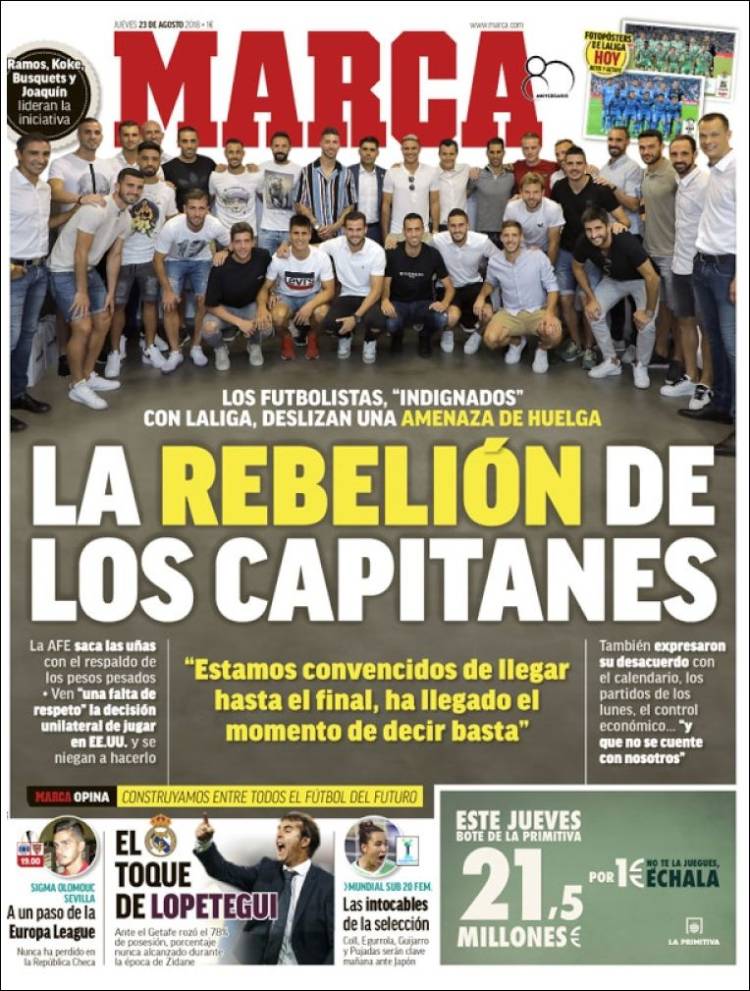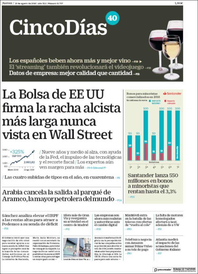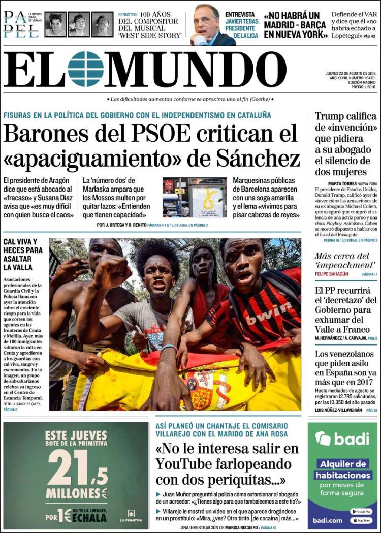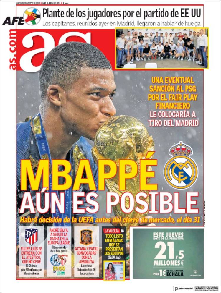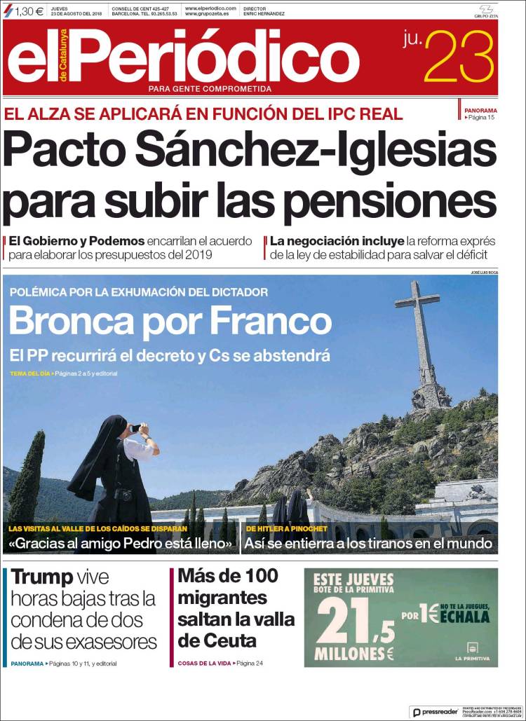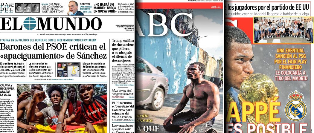Portadas de los diarios El Mundo, El País, ABC, La Razón, La Vanguardia, El Periódico, Cinco Días, El Economista, Marca, As, Mundo Deportivo y Sport.
