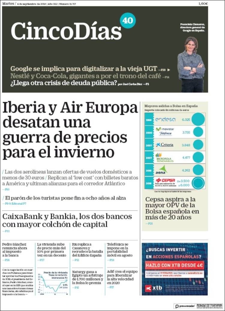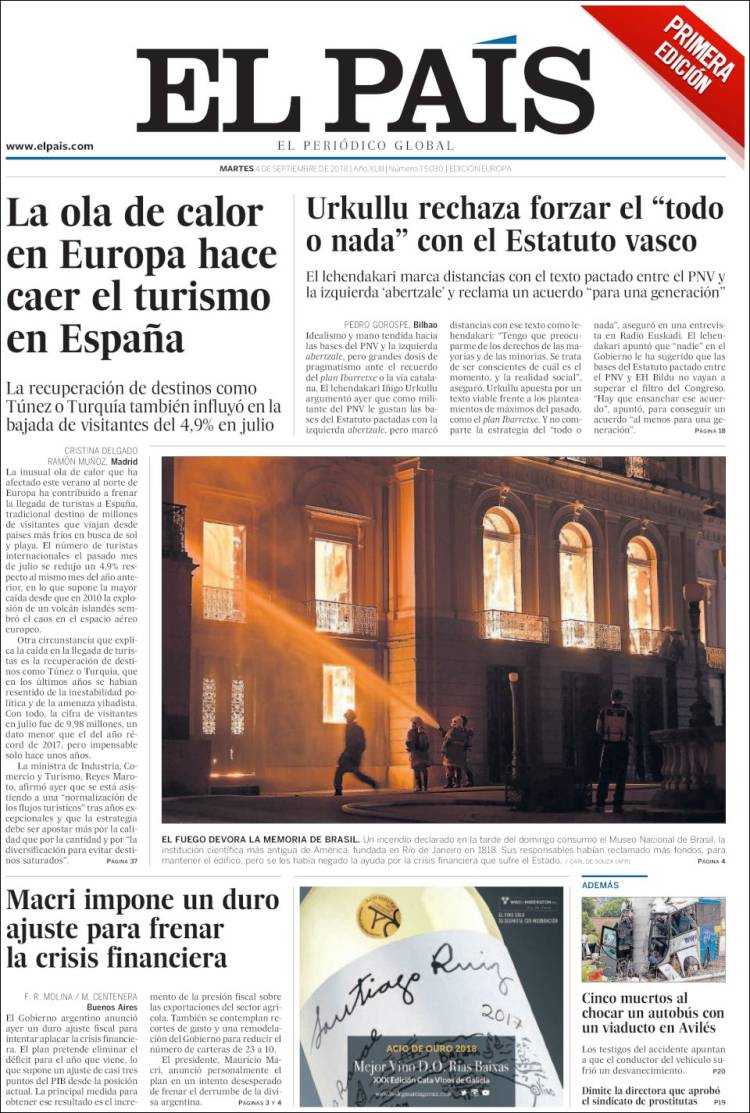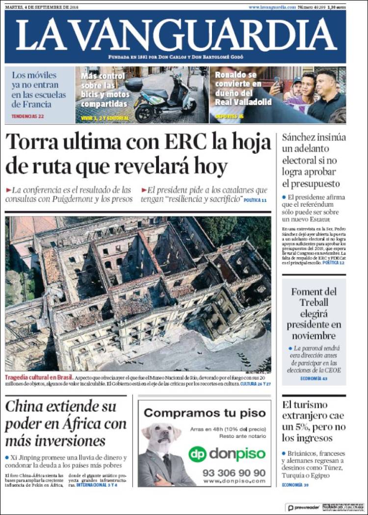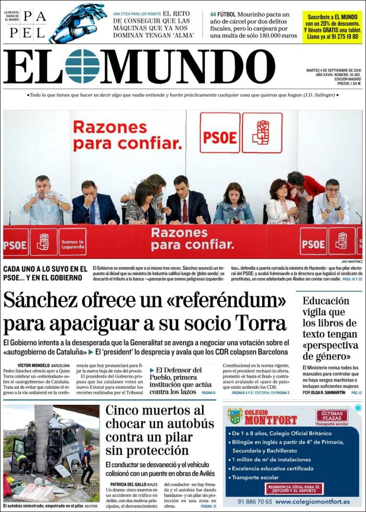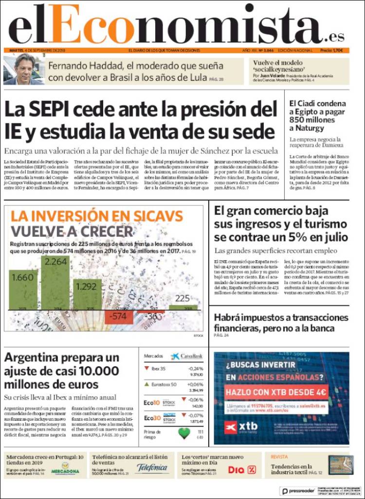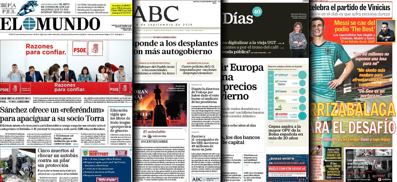 Portadas de los diarios El Mundo, El País, ABC, La Razón, La Vanguardia, El Periódico, Cinco Días, El Economista, Marca, As, Mundo Deportivo y Sport.