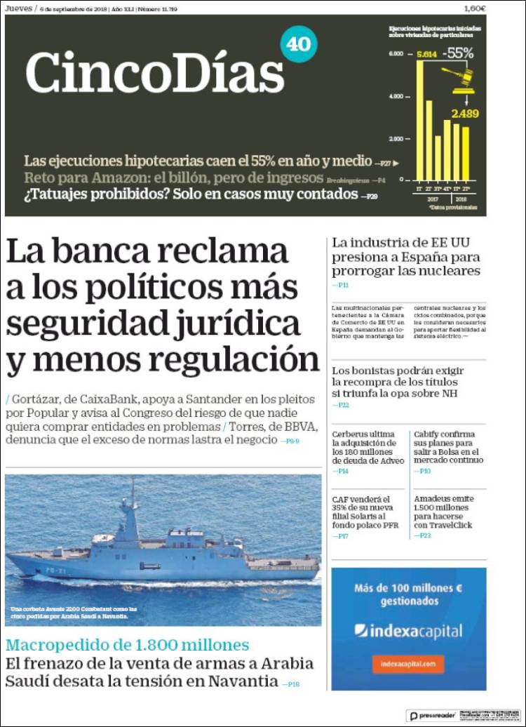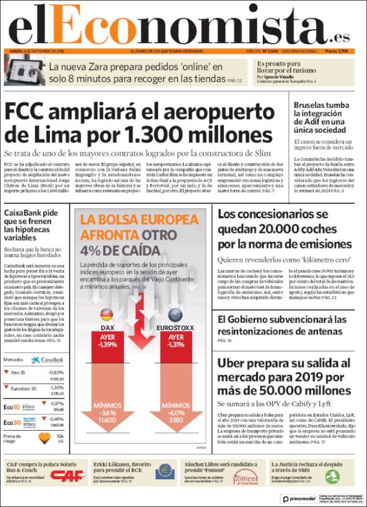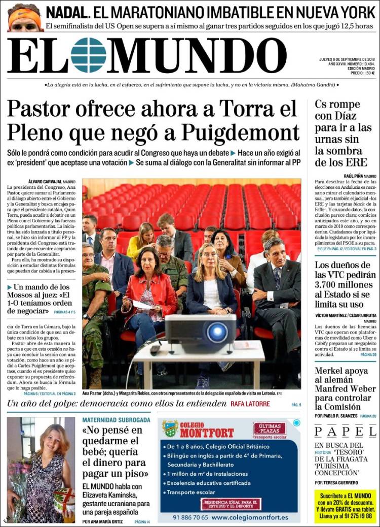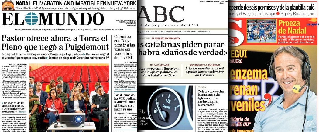 Portadas de los diarios El Mundo, El País, ABC, La Razón, La Vanguardia, El Periódico, Cinco Días, El Economista, Marca, As, Mundo Deportivo y Sport.