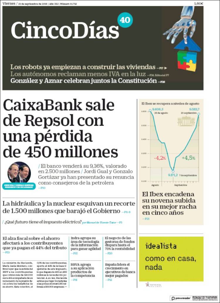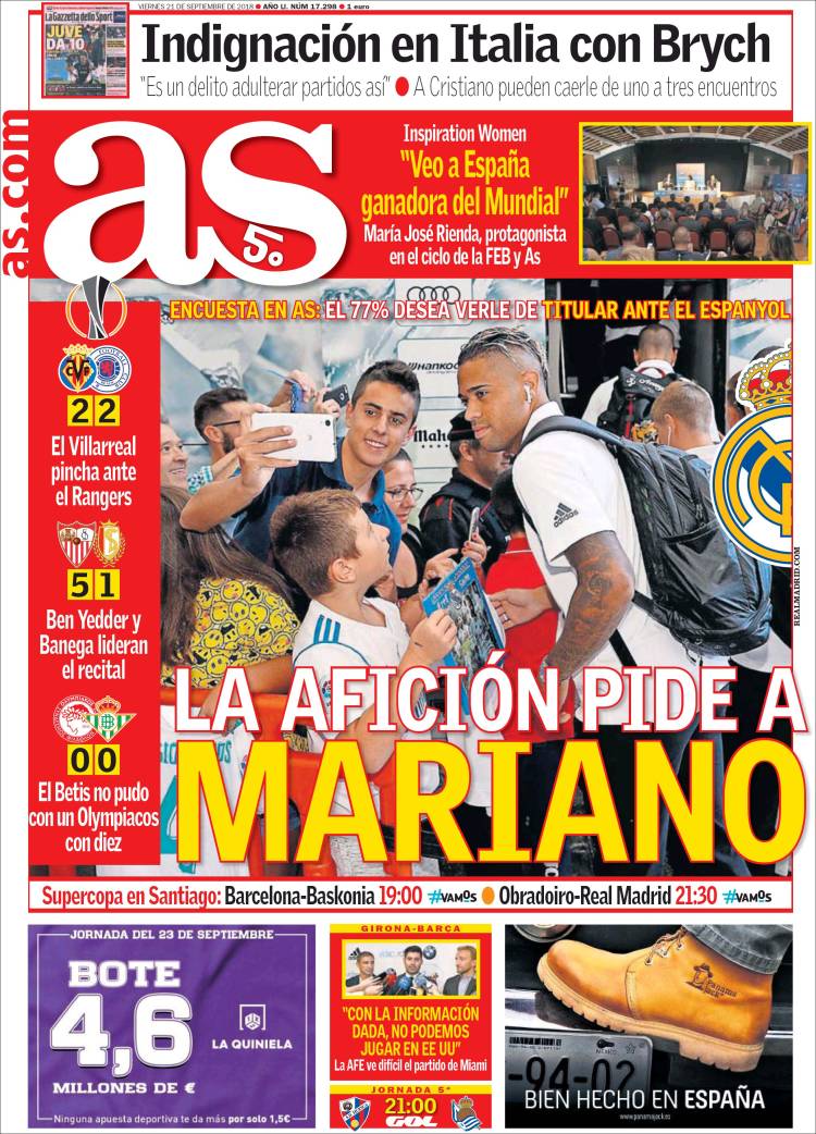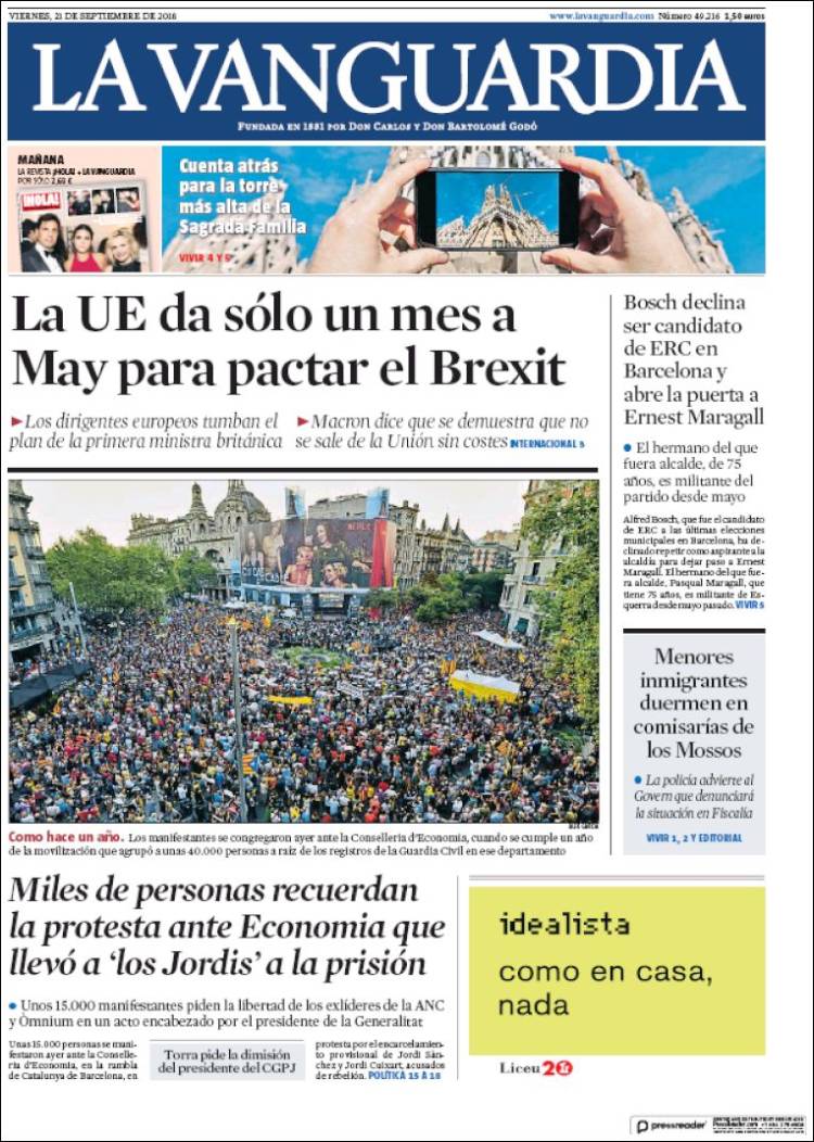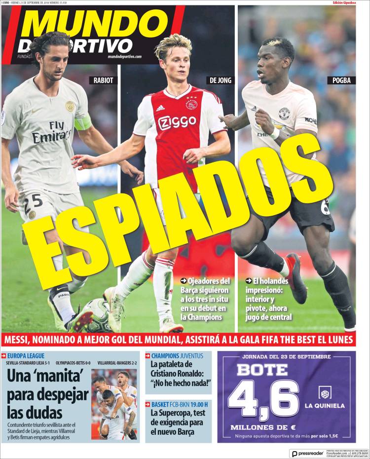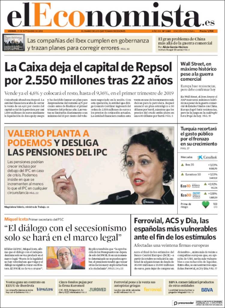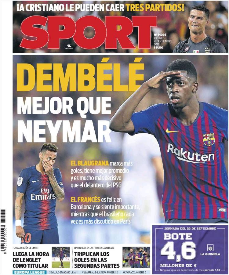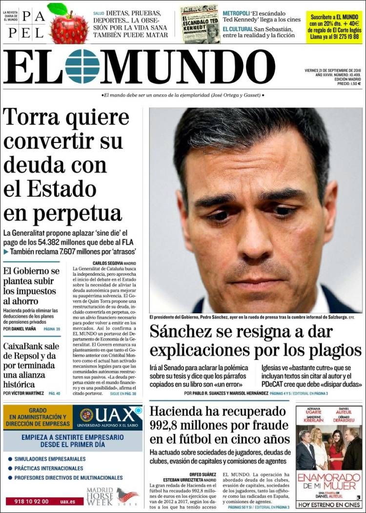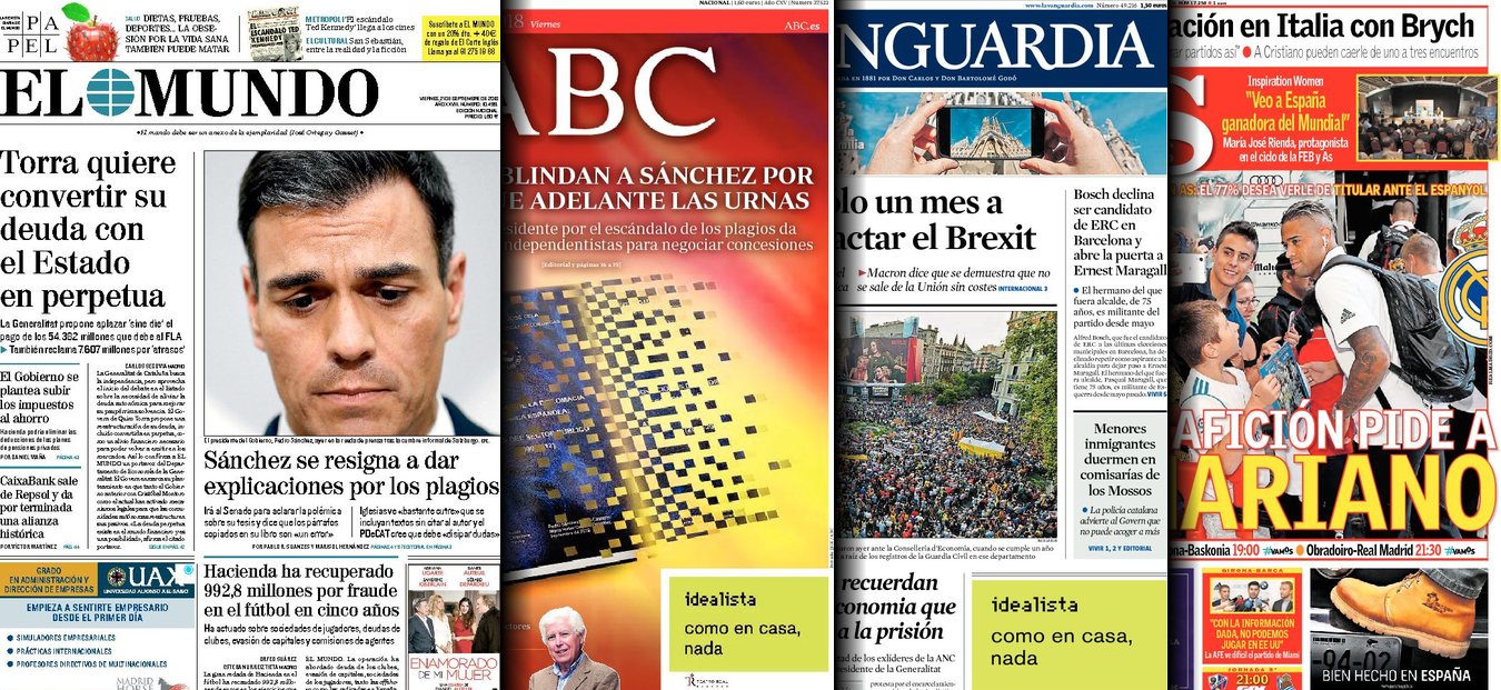 Portadas de los diarios El Mundo, El País, ABC, La Razón, La Vanguardia, El Periódico, Cinco Días, El Economista, Marca, As, Mundo Deportivo y Sport.