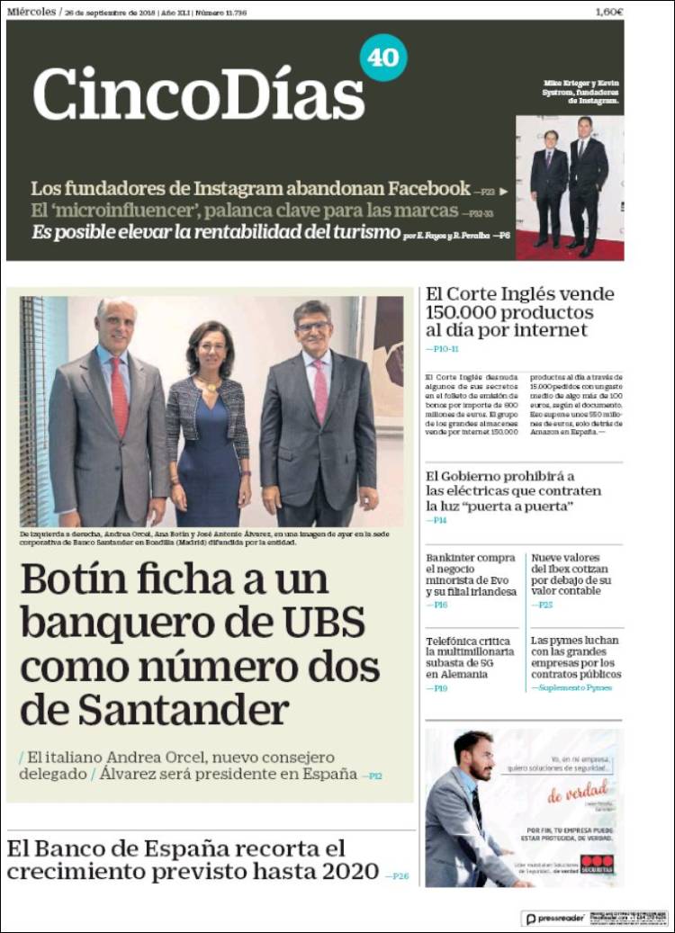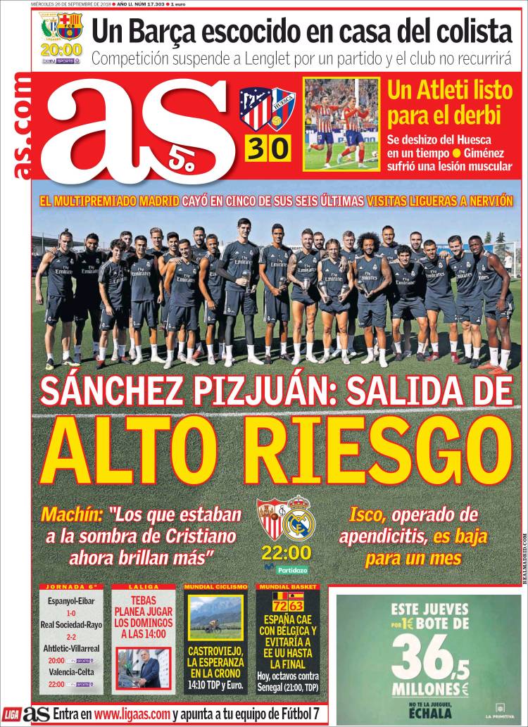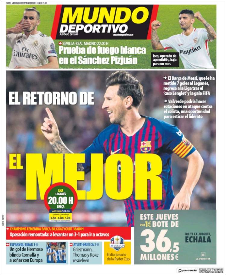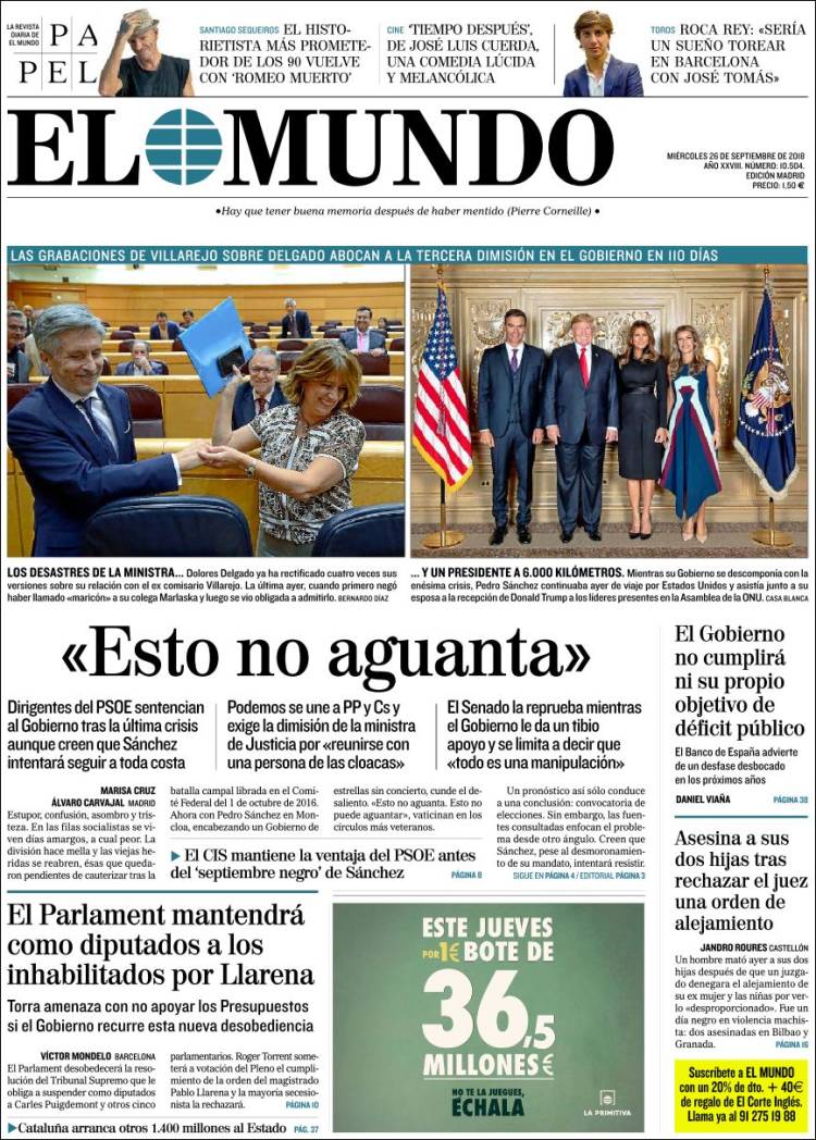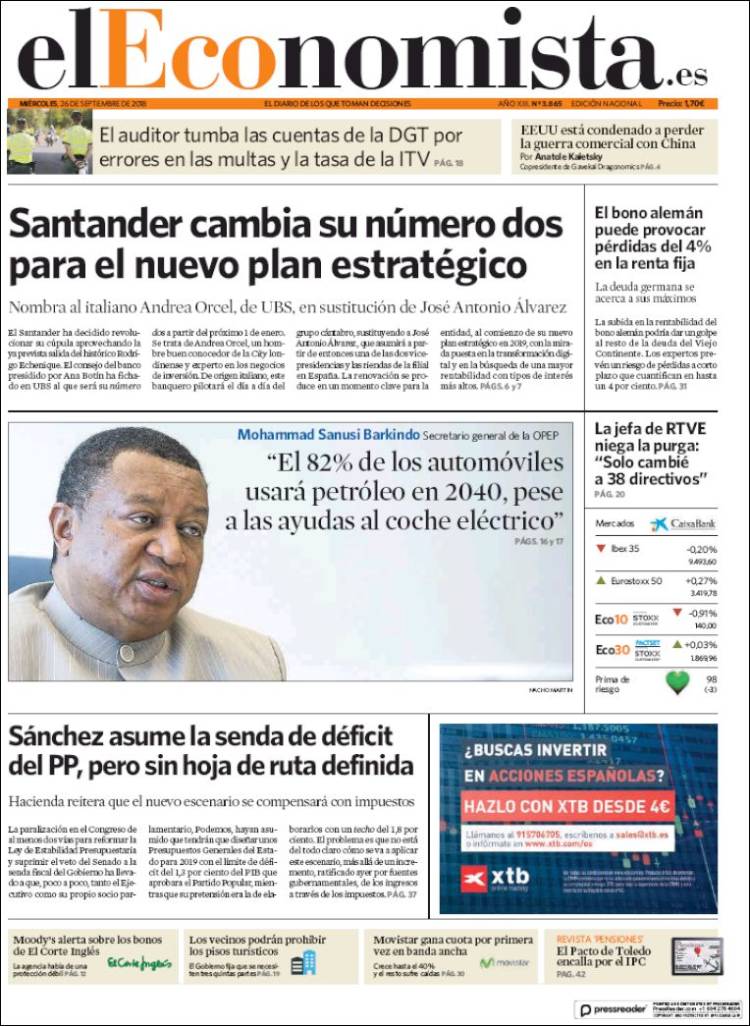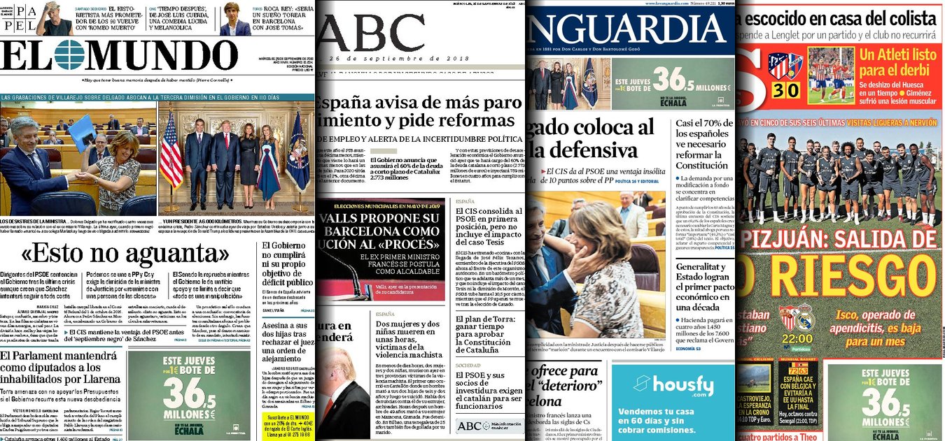 Portadas de los diarios El Mundo, El País, ABC, La Razón, La Vanguardia, El Periódico, Cinco Días, El Economista, Marca, As, Mundo Deportivo y Sport.