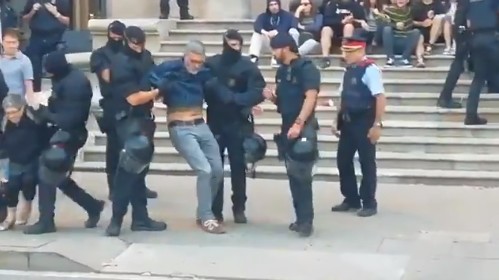 Los Mossos han retirado una a una a las más de cien personas que se habían congregado en las escalinatas del Tribunal Superior de Justicia de Cataluña, entre ellos el portavoz de la CUP, Carles Riera.