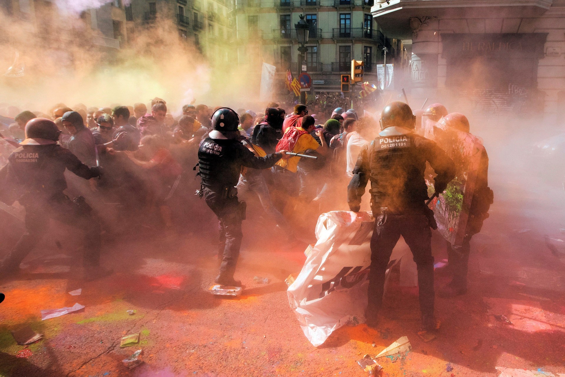 Los mossos tuvieron que cargar contra separatistas que convocados por la Assemblea Nacional Catalana, la CUP, su organización juvenil Arran y los Comités de Defensa de la República intentaron reventar la protesta de Jusapol.