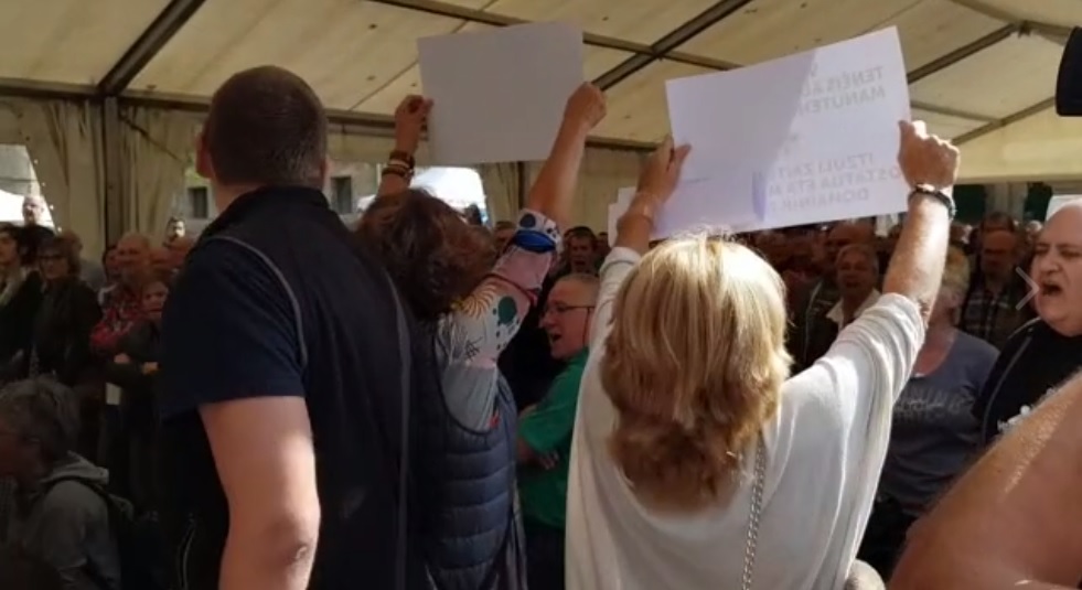 Consuelo Ordóñez, Paz Prieto y Concepción Fernández reclaman que vuelvan a España los etarras huidos para saldar sus deudas con la justicia. Insultan a tres víctimas y Ordóñez ha recibido empujones.