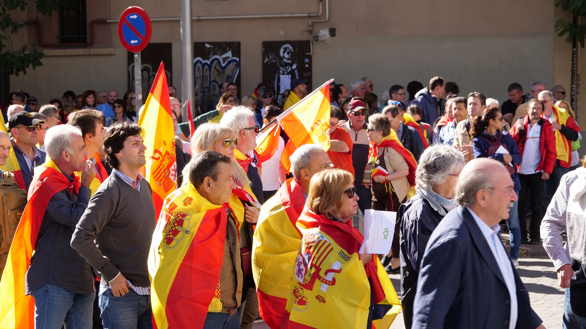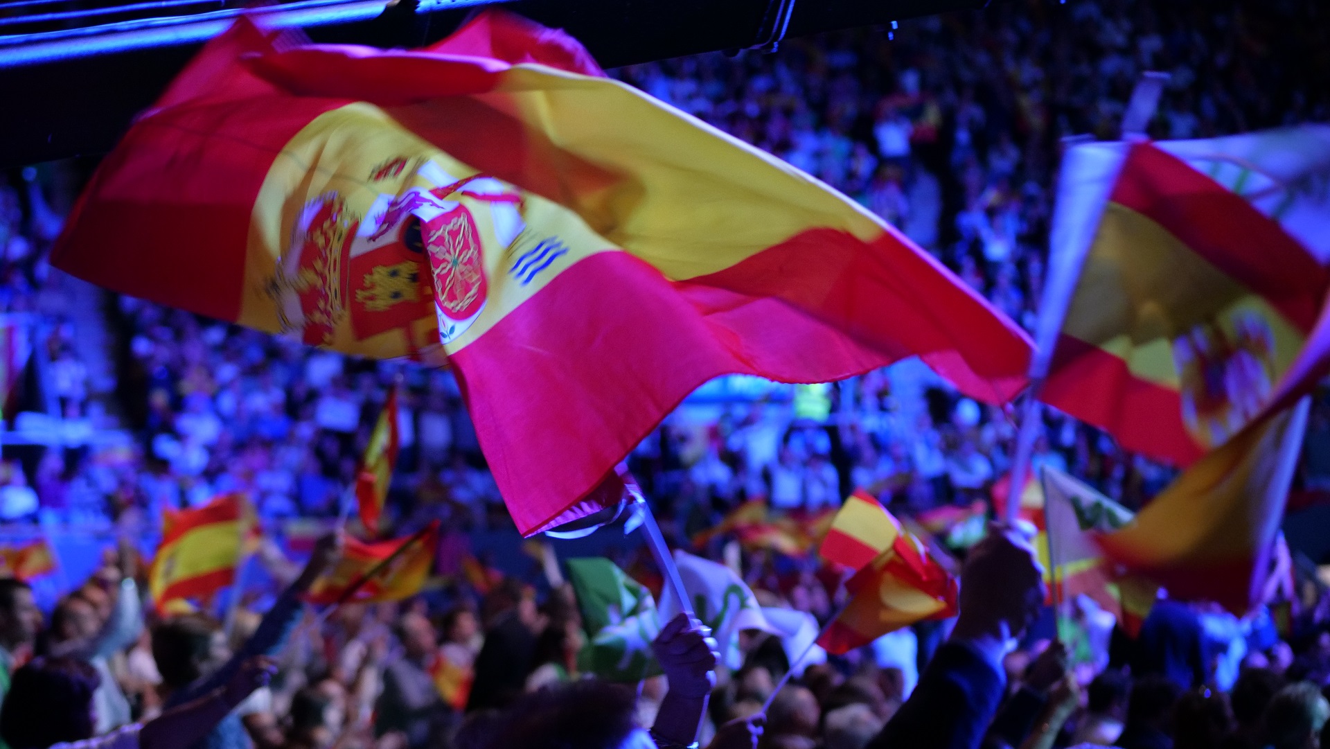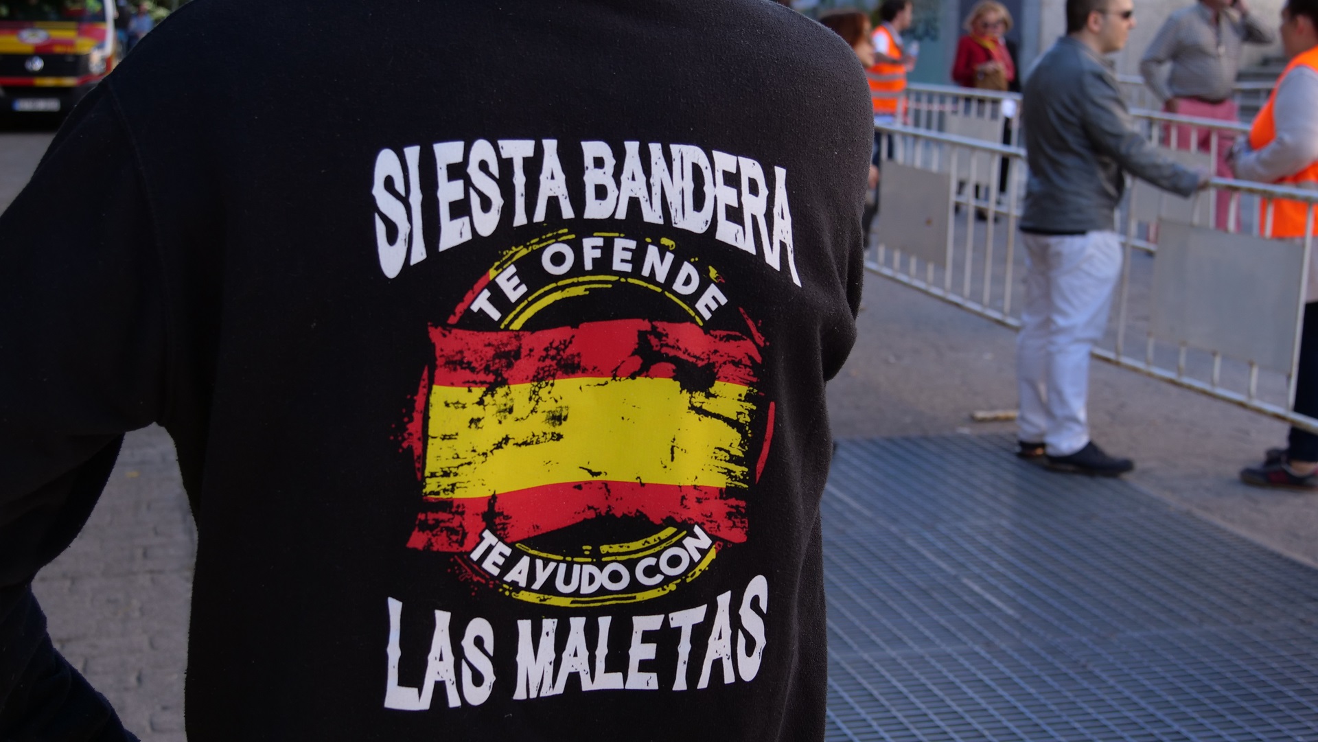 Bandera de España y Cataluña presentes en el multitudinario acto de Vox.