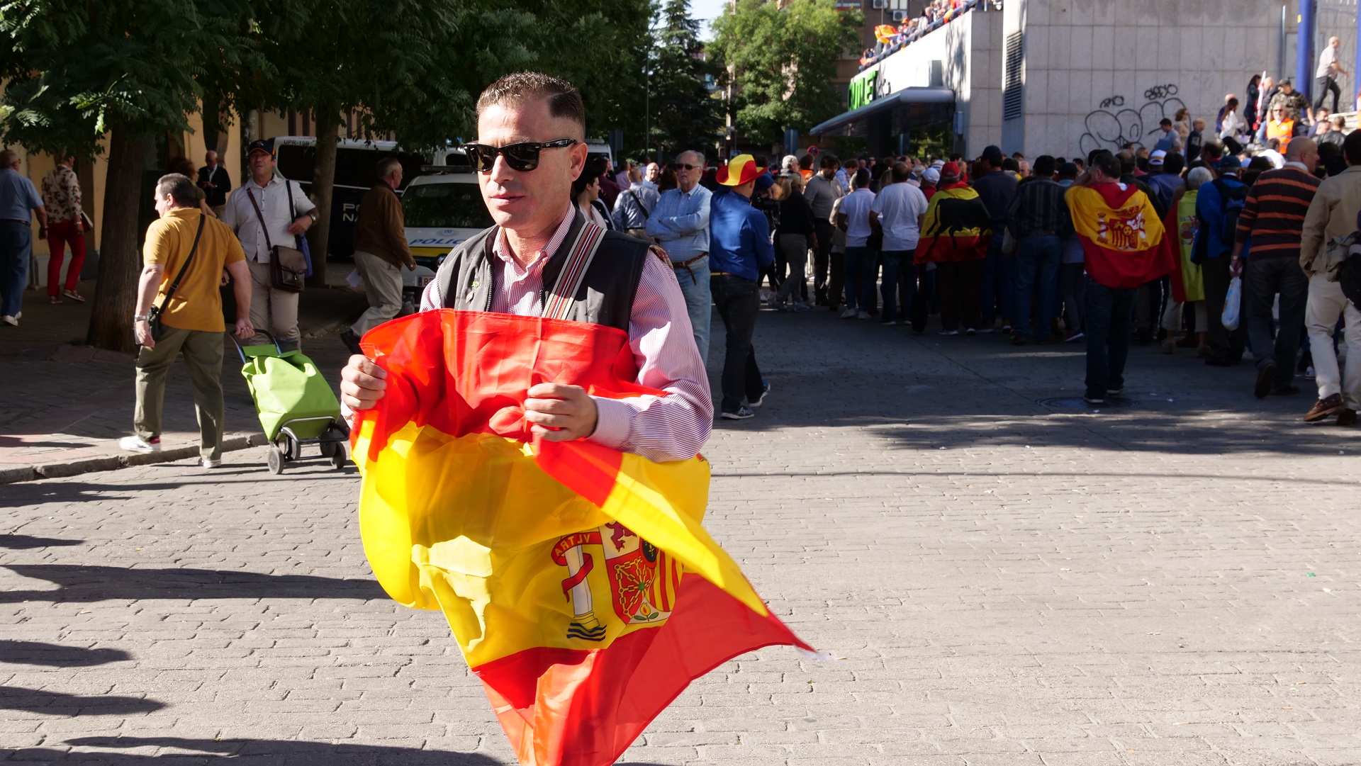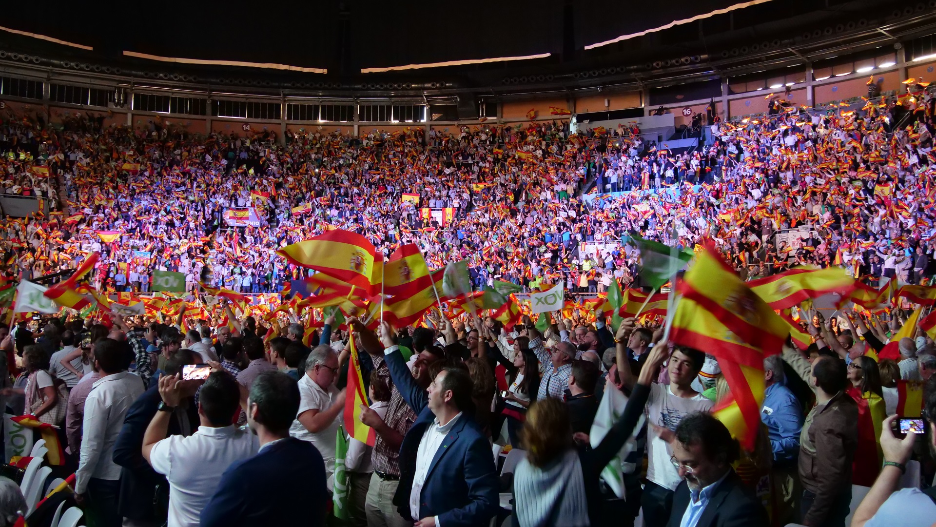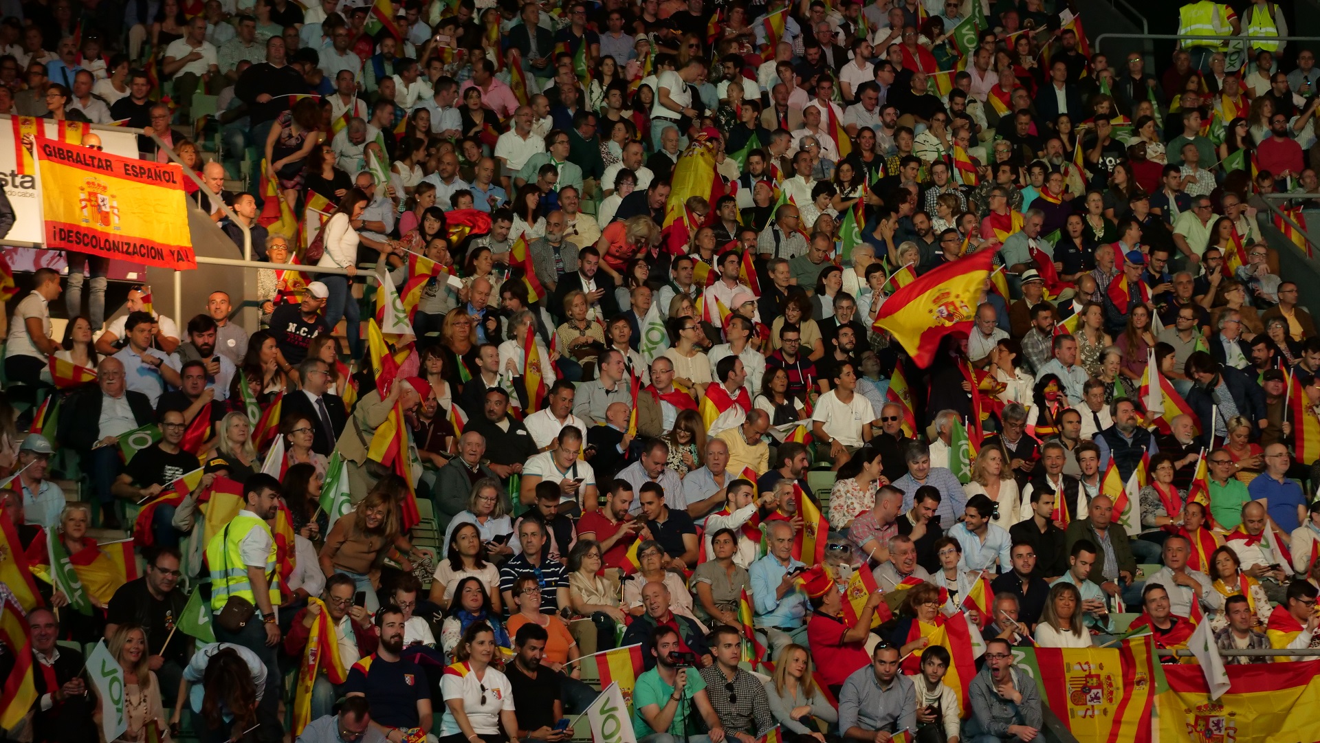 Bandera de España y Cataluña presentes en el multitudinario acto de Vox.
