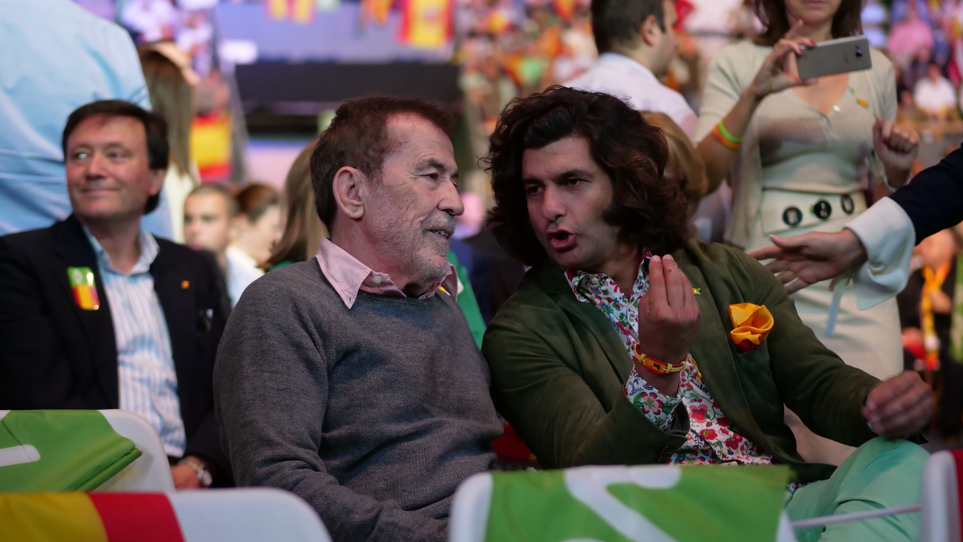 El escritor Fernando Sánchez Dragó y el torero Morante de la Puebla entre los asistentes al acto de Vox.