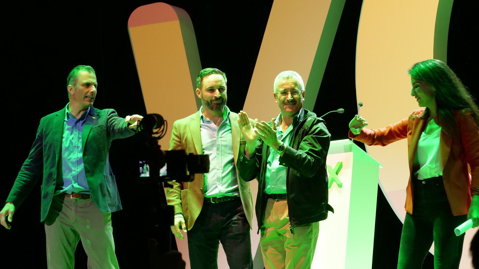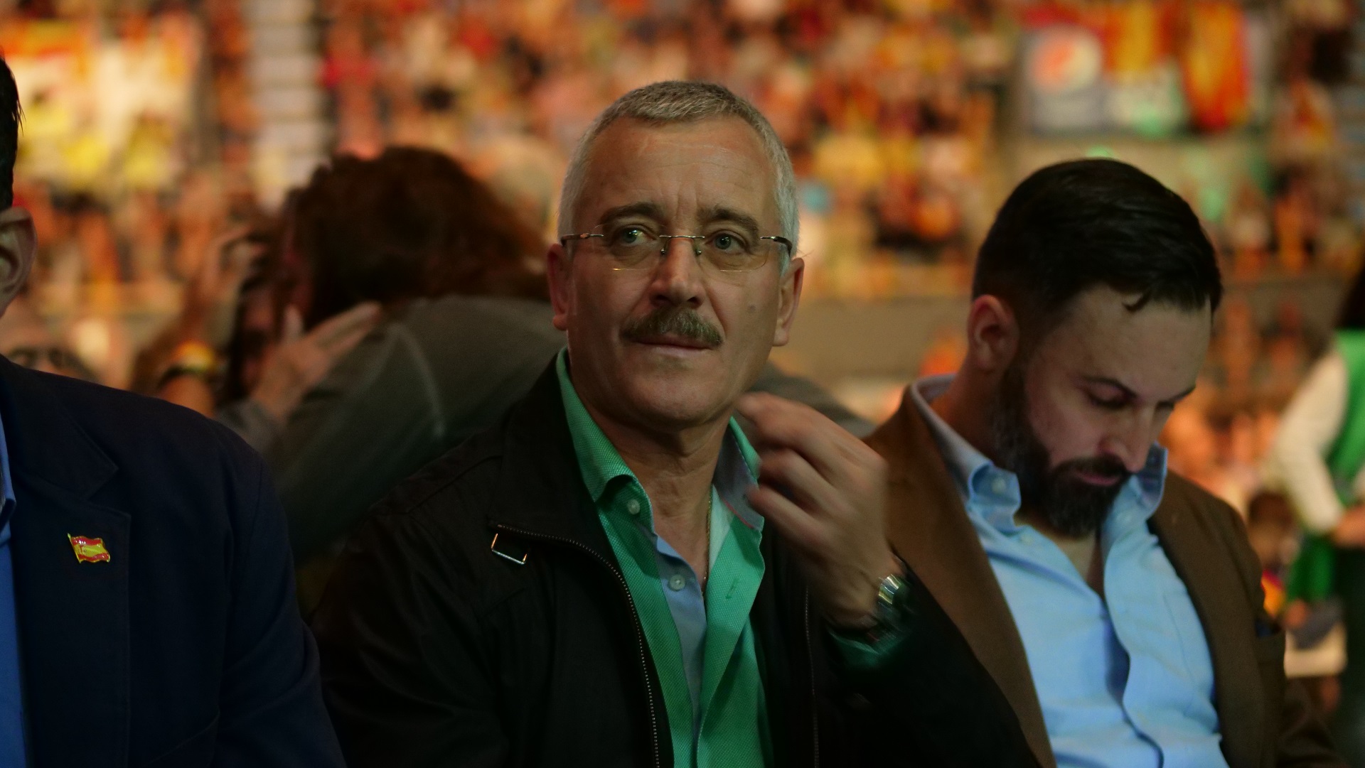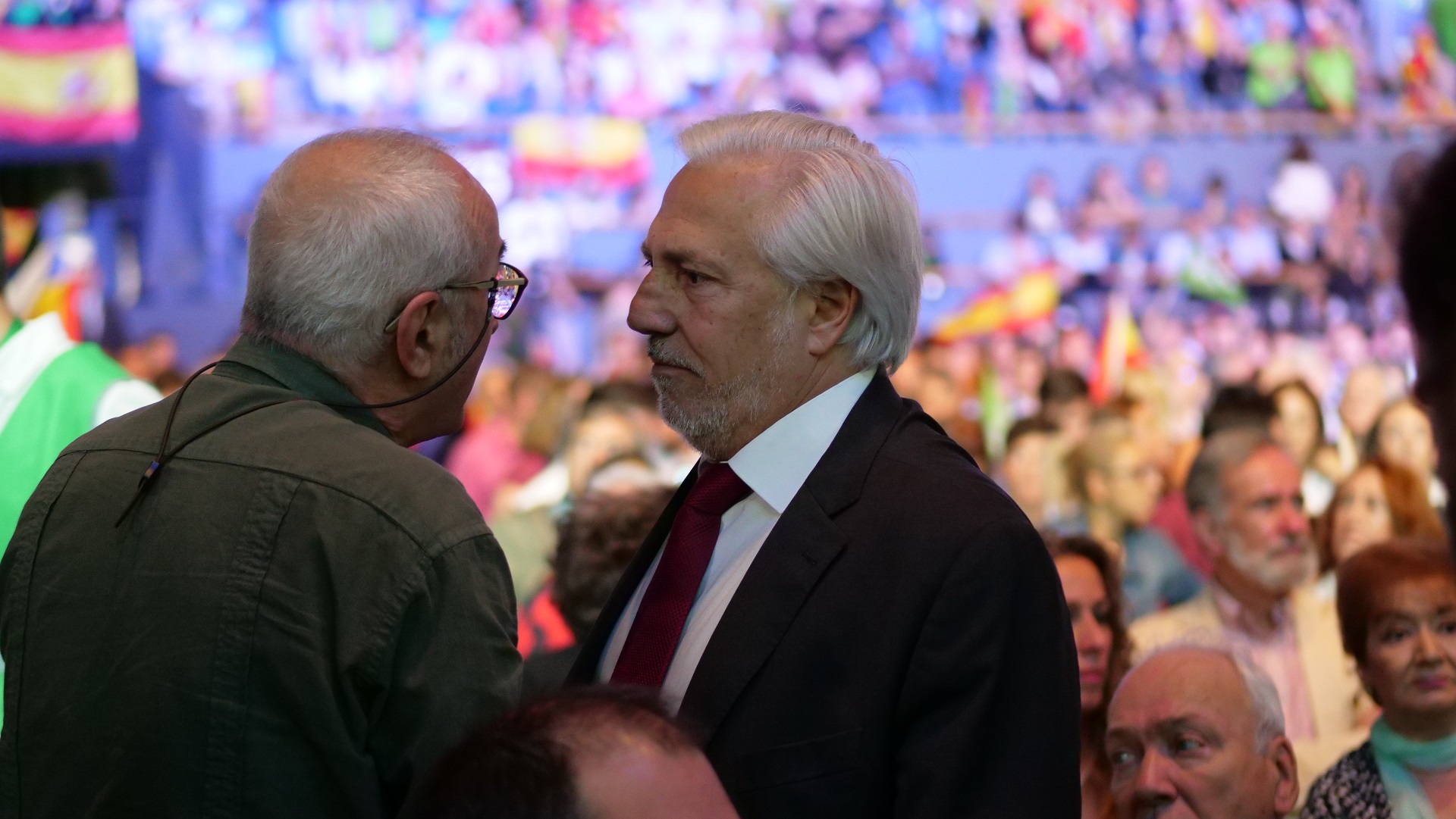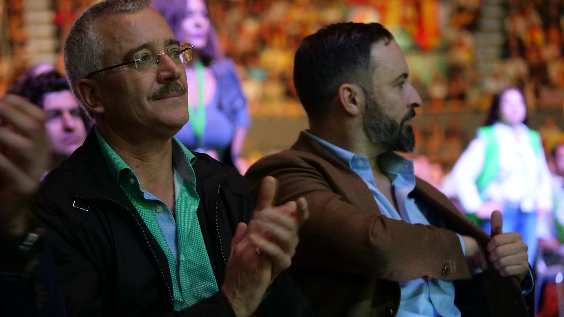 José Antonio Ortega Lara y Santiago Abascal en el acto de Vox.