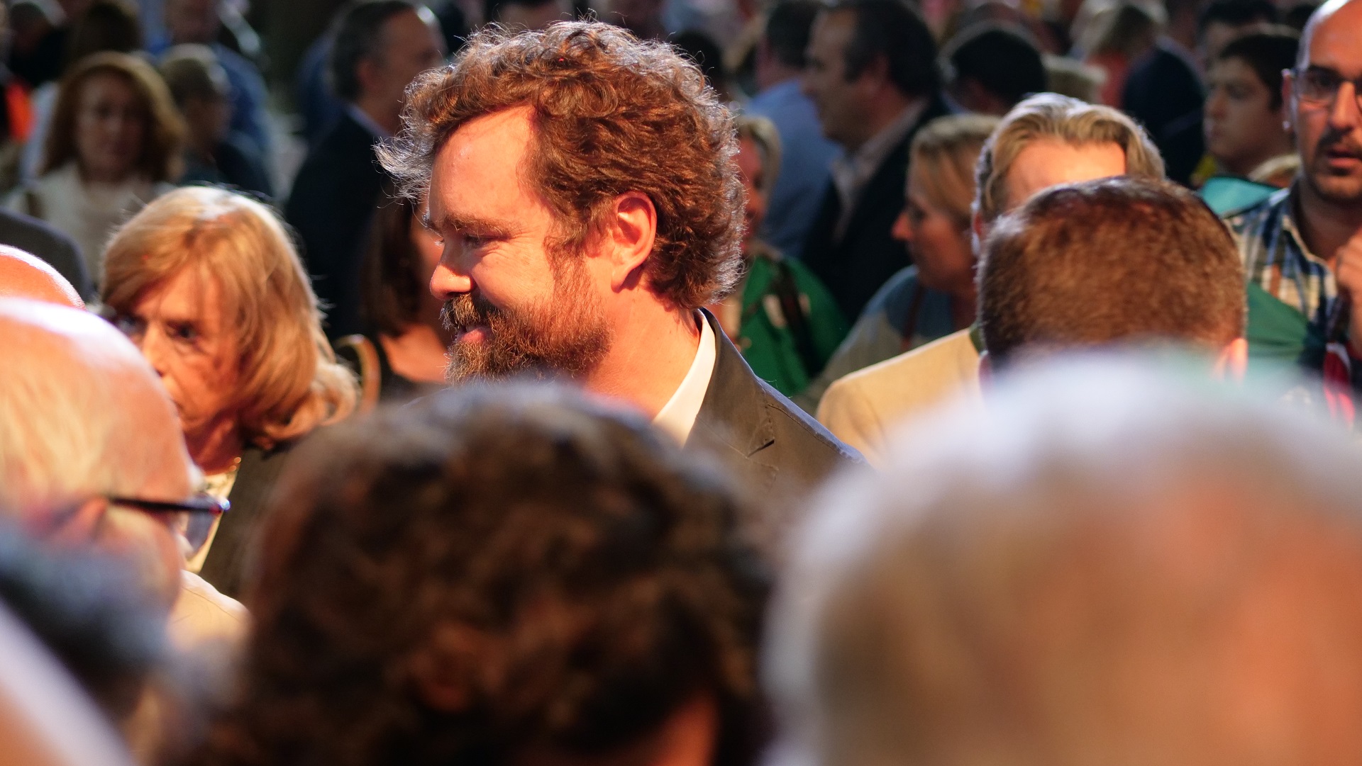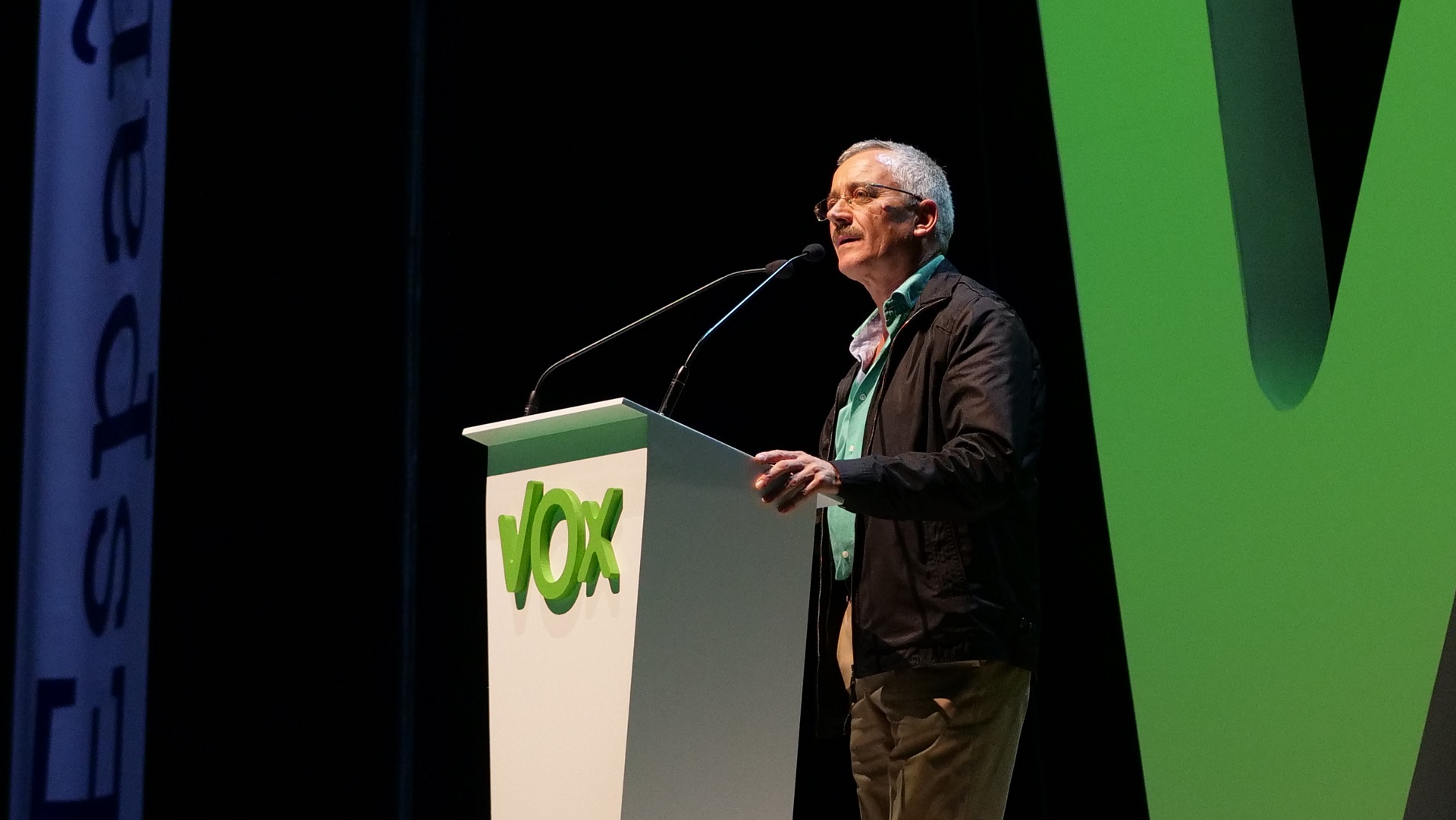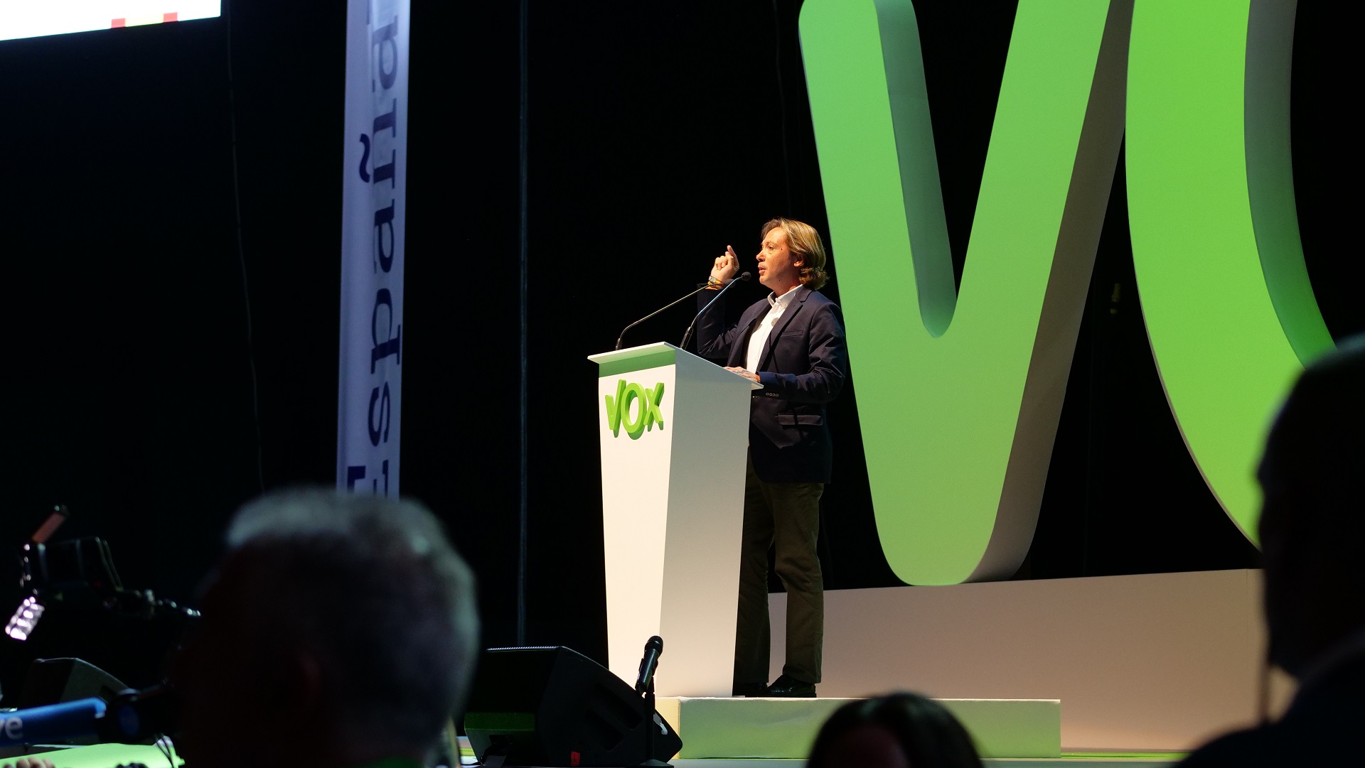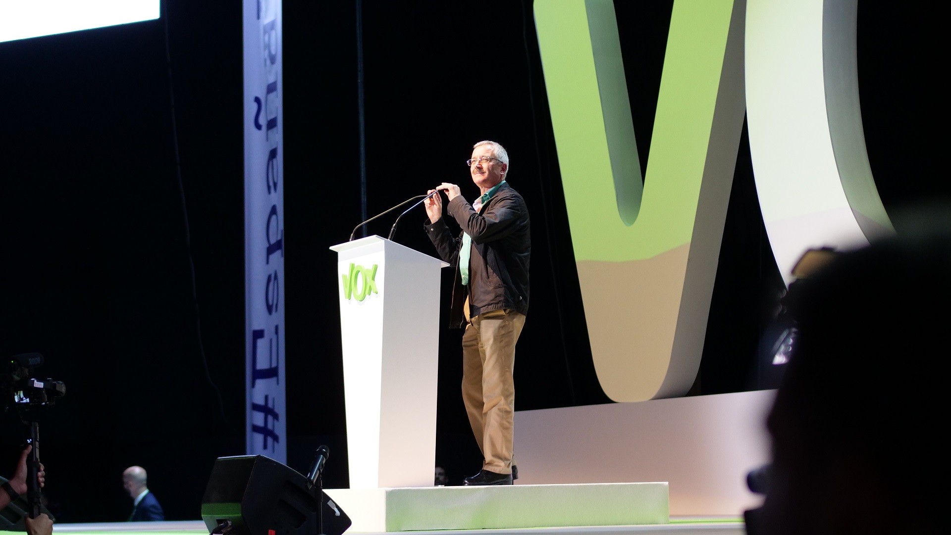 El presentador del programa Sin Complejos de esRadio, Luis del Pino, acude al acto de Vox.