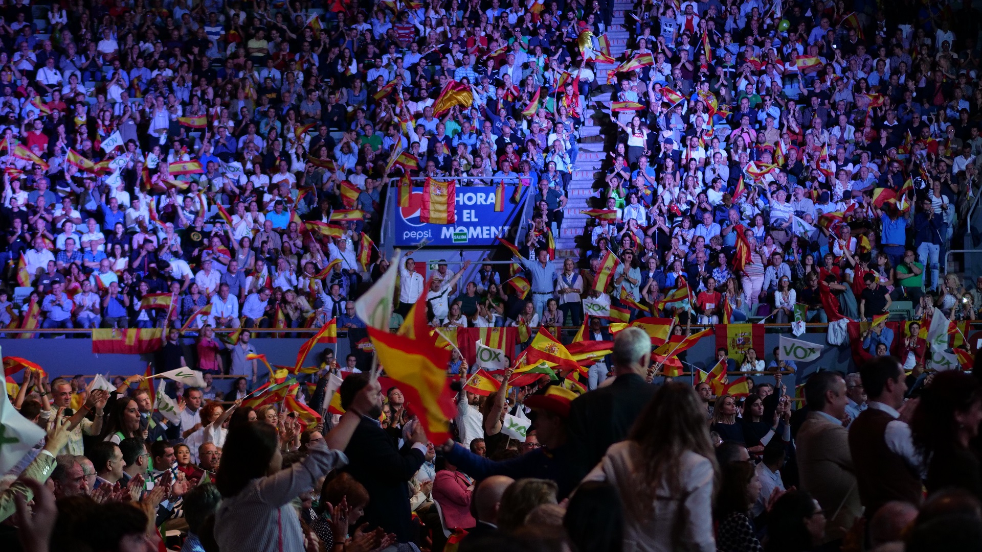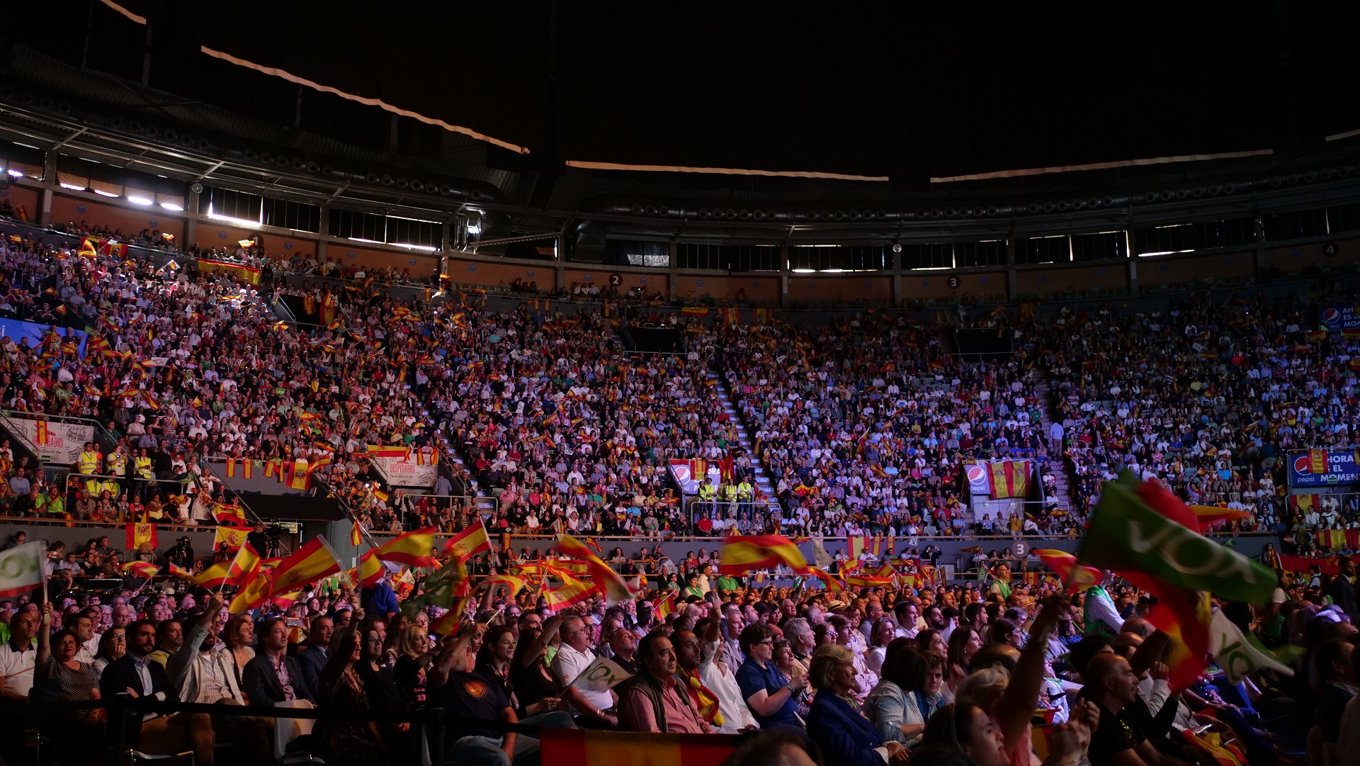 Vistalegre se llena de banderas de España durante el acto de Vox.