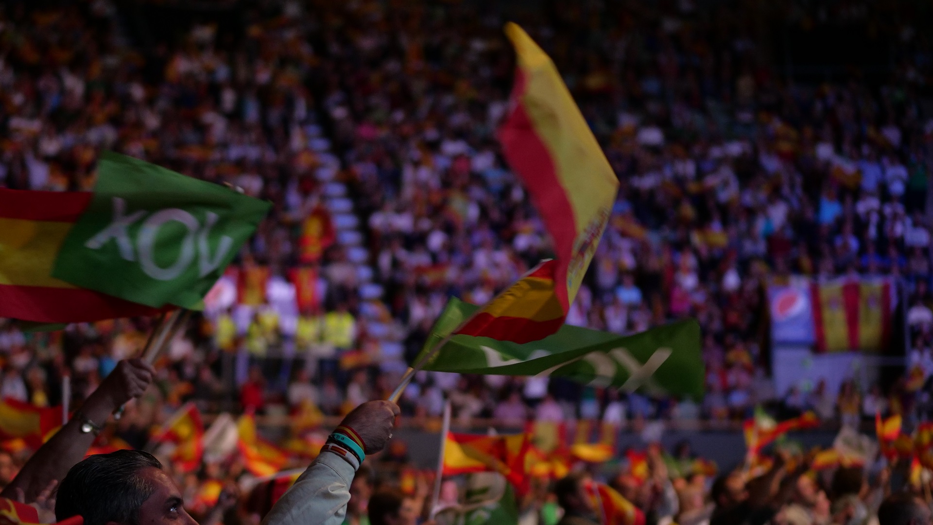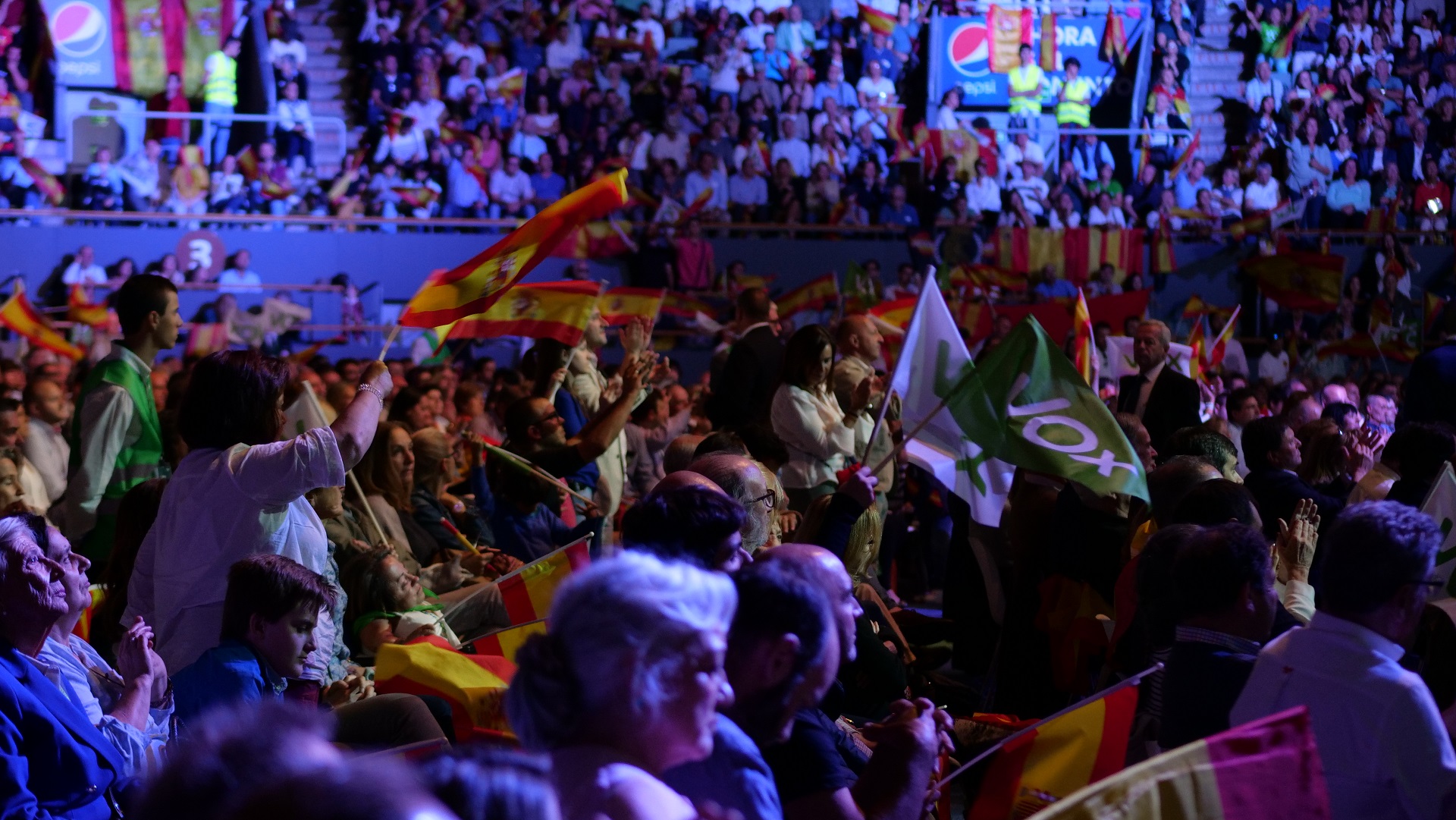 El palacio de Vistalegre se llena de banderas de España durante el acto de Vox.