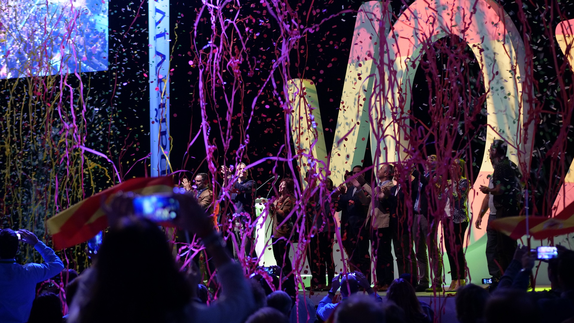 Vox llena el Palacio de Vistalegre de Madrid con 10.000 personas de la "España viva", una España que ha "resucitado" porque han sido "demasiados los ultrajes", afirma su presidente Santiago Abascal.