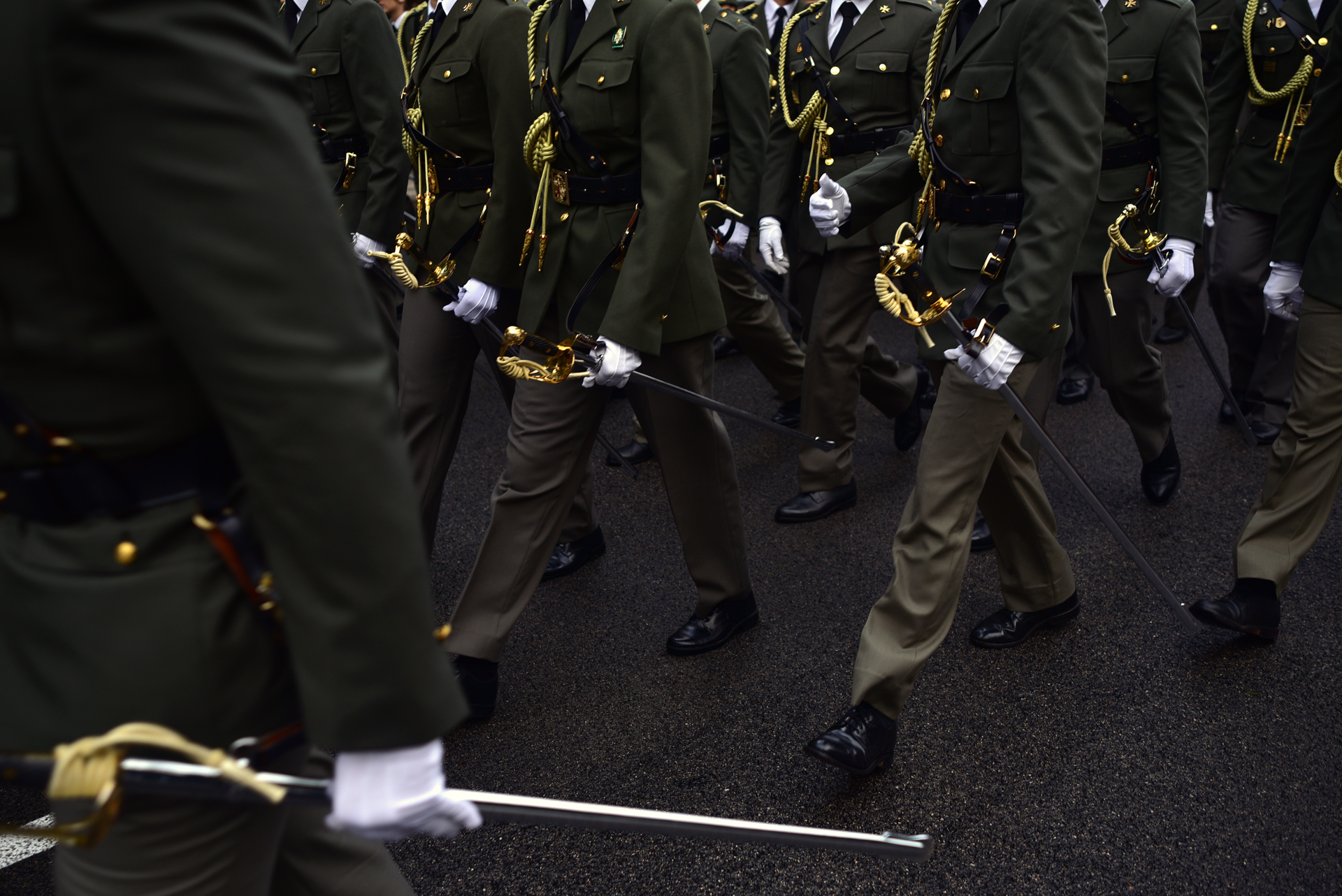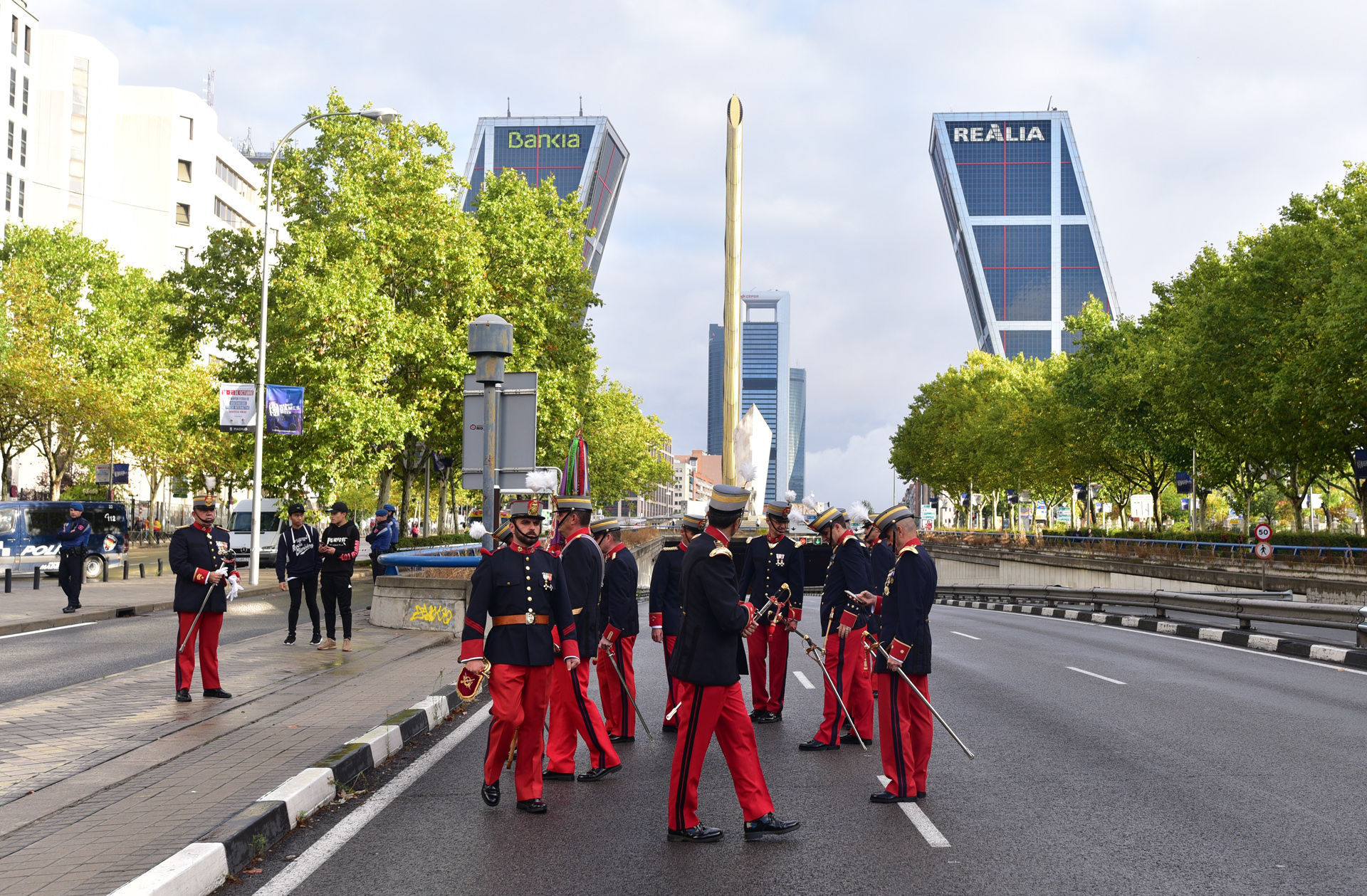 Los batallones de diferentes cuerpos del Ejército y la Armada estaban colocados en calles colindantes al Paseo de la Castellana, varias horas antes de las 11, hora de comienzo de los actos del desfile.
