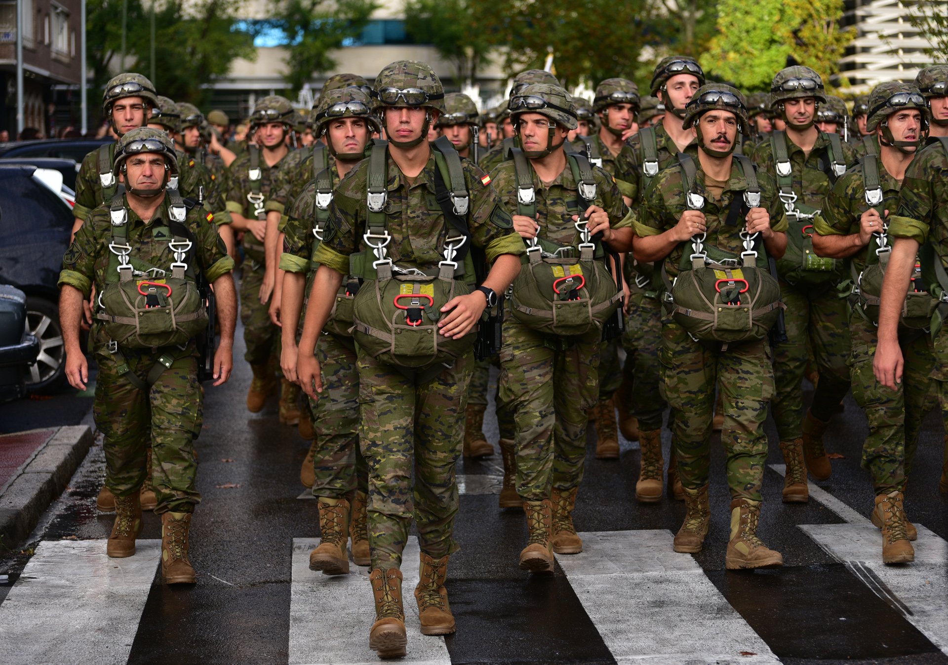 Los paracaidistas de la BRIPAC, portando su equipo al completo, uno de los cuerpos del Ejército de Tierra.