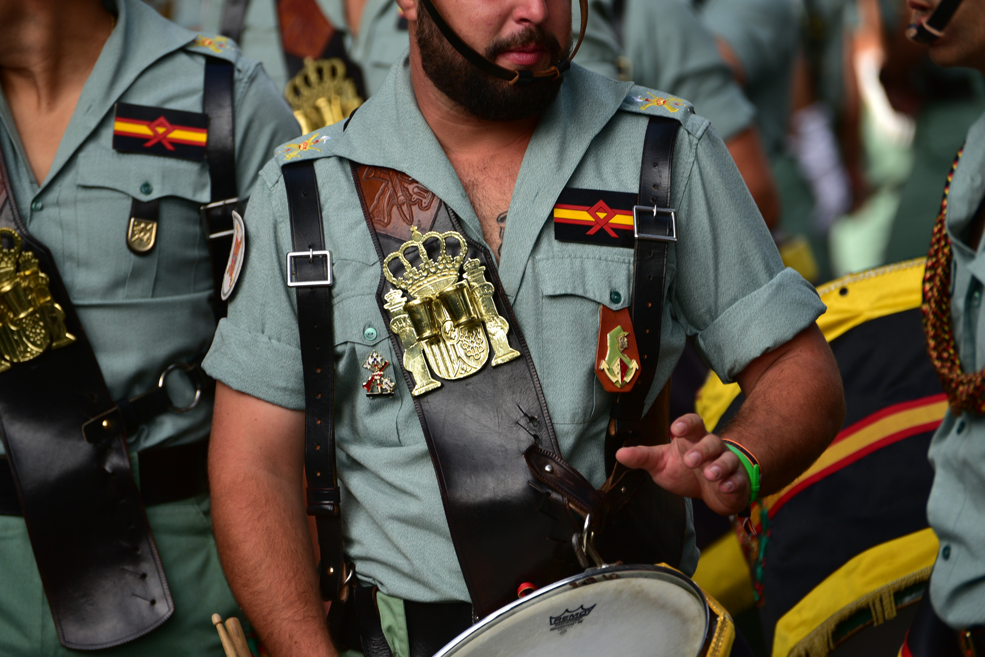 Uno de los músicos de la Legión. Obsérvese el gran escudo constitucional de la cinta que sujeta su tambor.